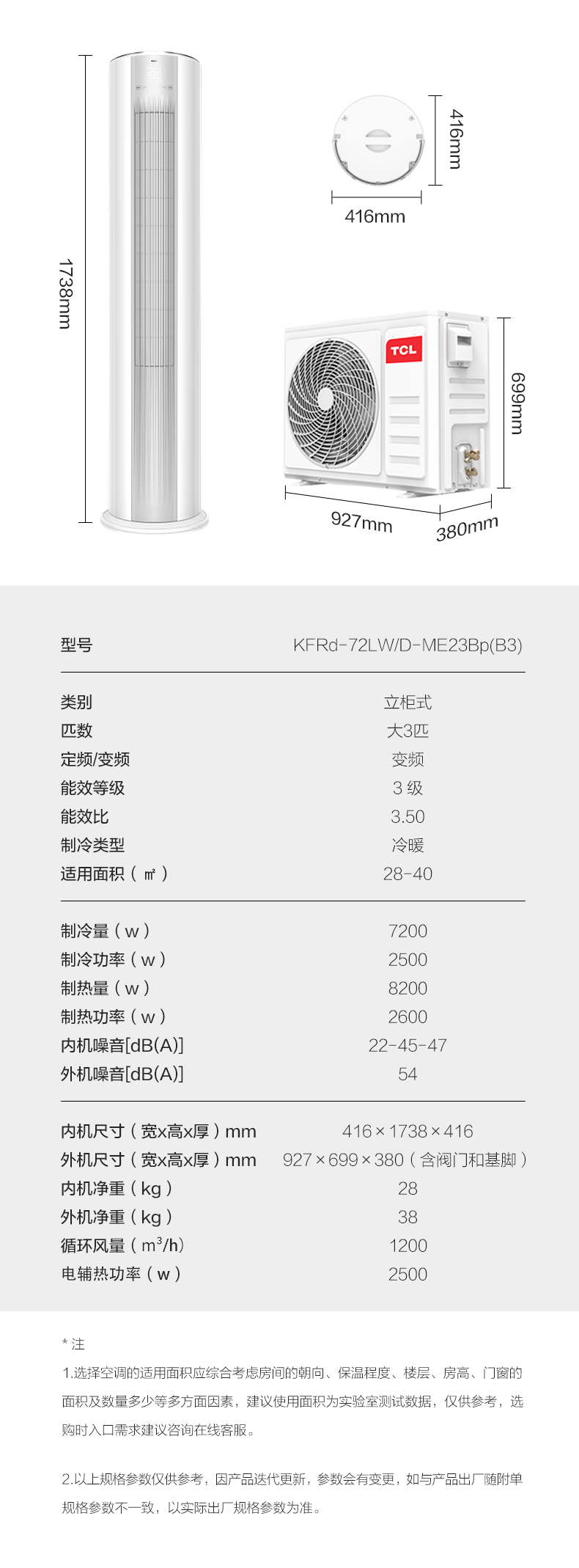 【TCL空调】TCL KFRd-72LW/D-ME23Bp(B3) 大3匹 变频冷暖 智能 空调立式 智炫风立柜式空调柜机
