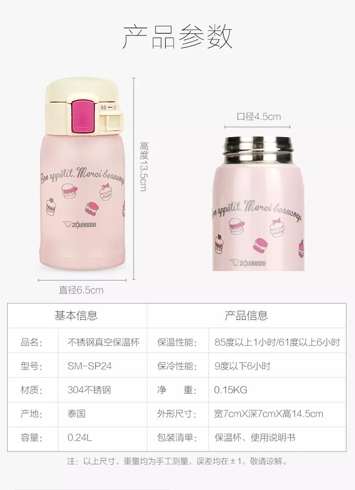 【小巧便携】泰国 象印 新款不锈钢保温杯 240ml