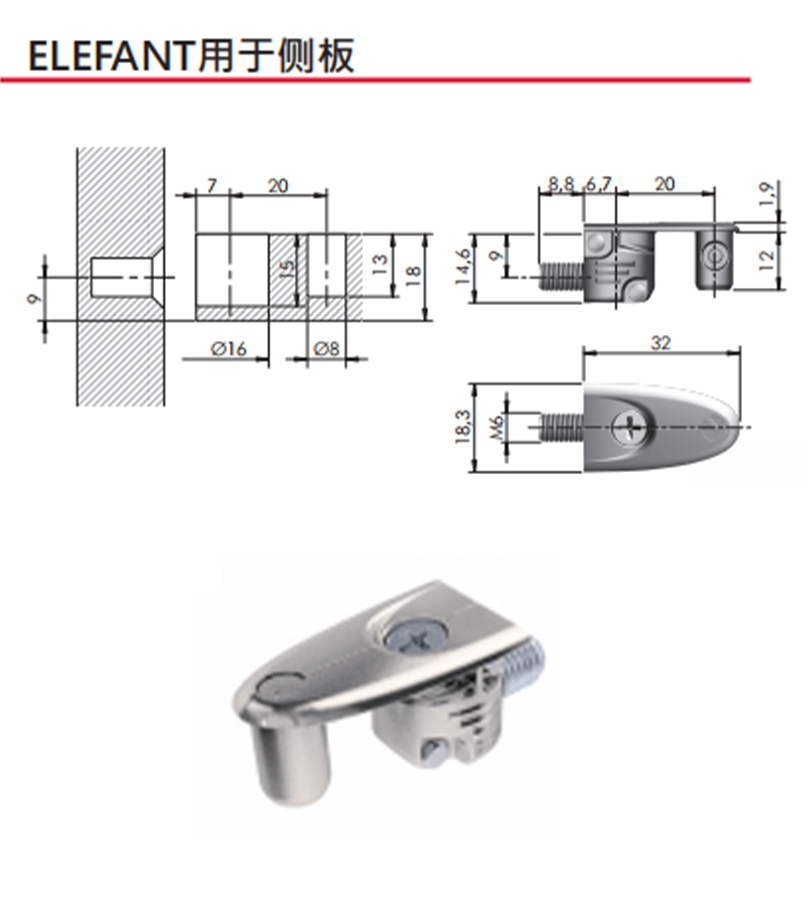 INTEGRATO Z 锌合金调整脚 适用于底包侧柜体(单个承重力175kg)