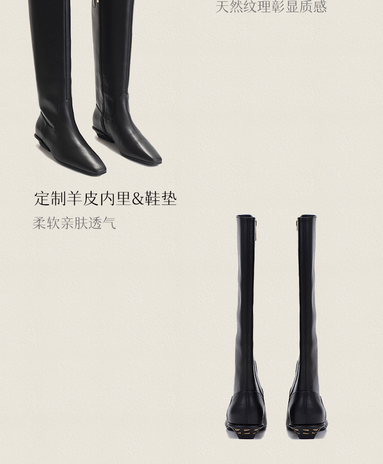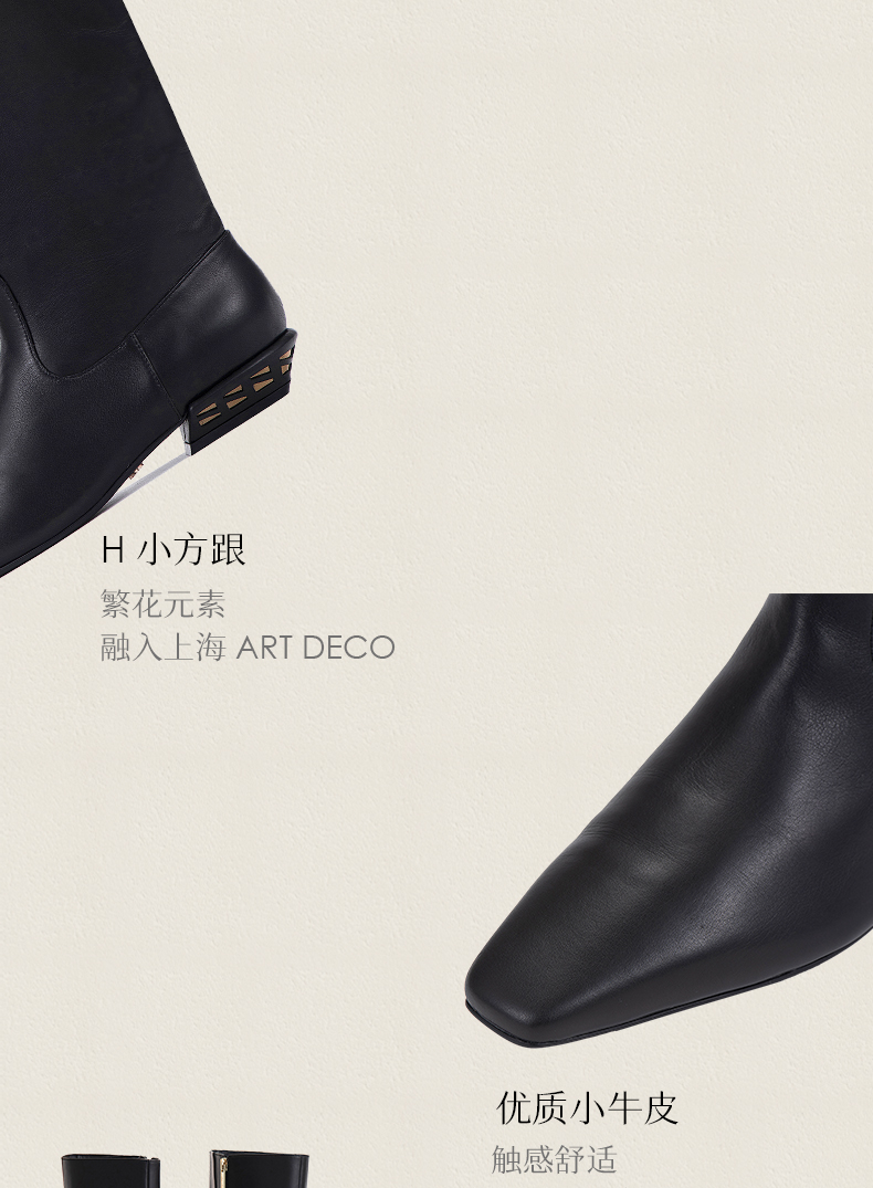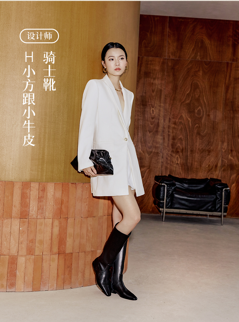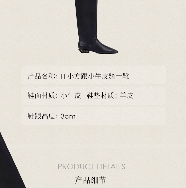 heelz设计师手工鞋履 |H 小方跟小牛皮骑士靴 3 公分