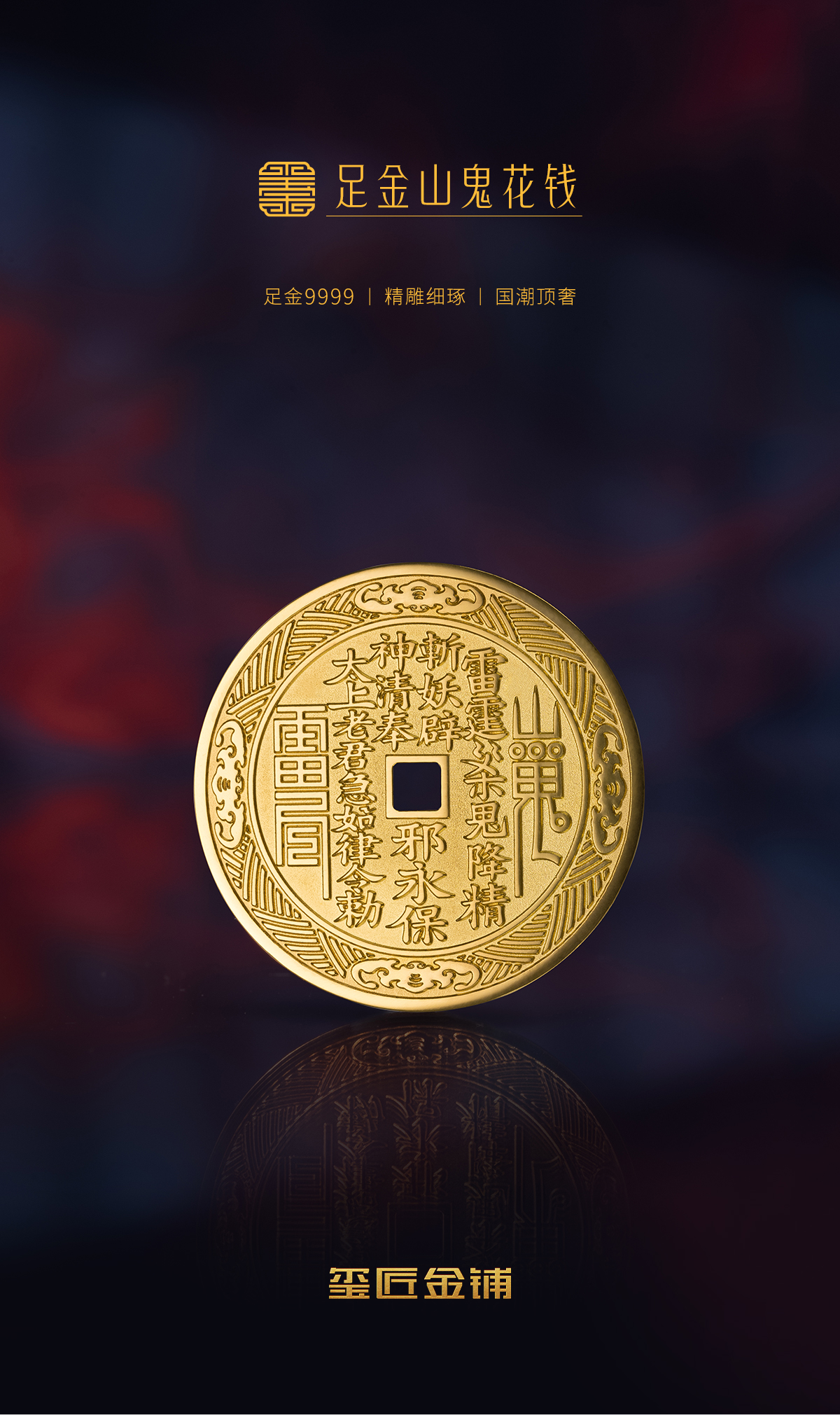 玺匠金铺《足金山鬼花钱》足金9999黄金吊坠 吉祥饰品挂件