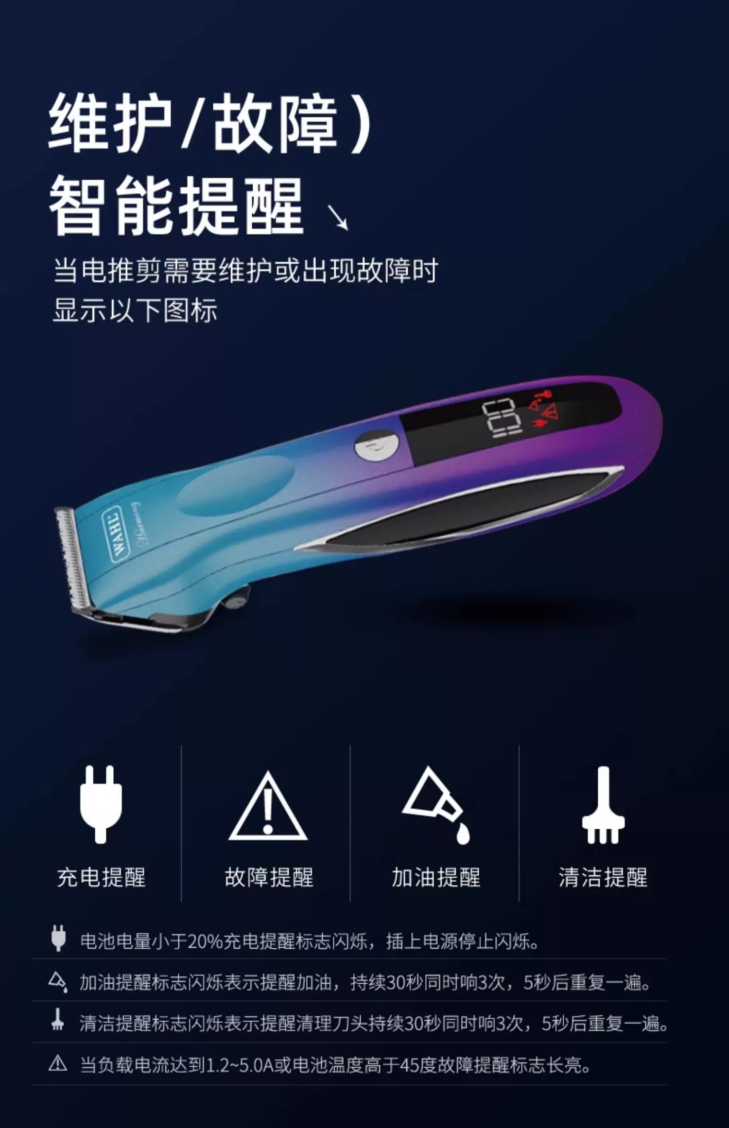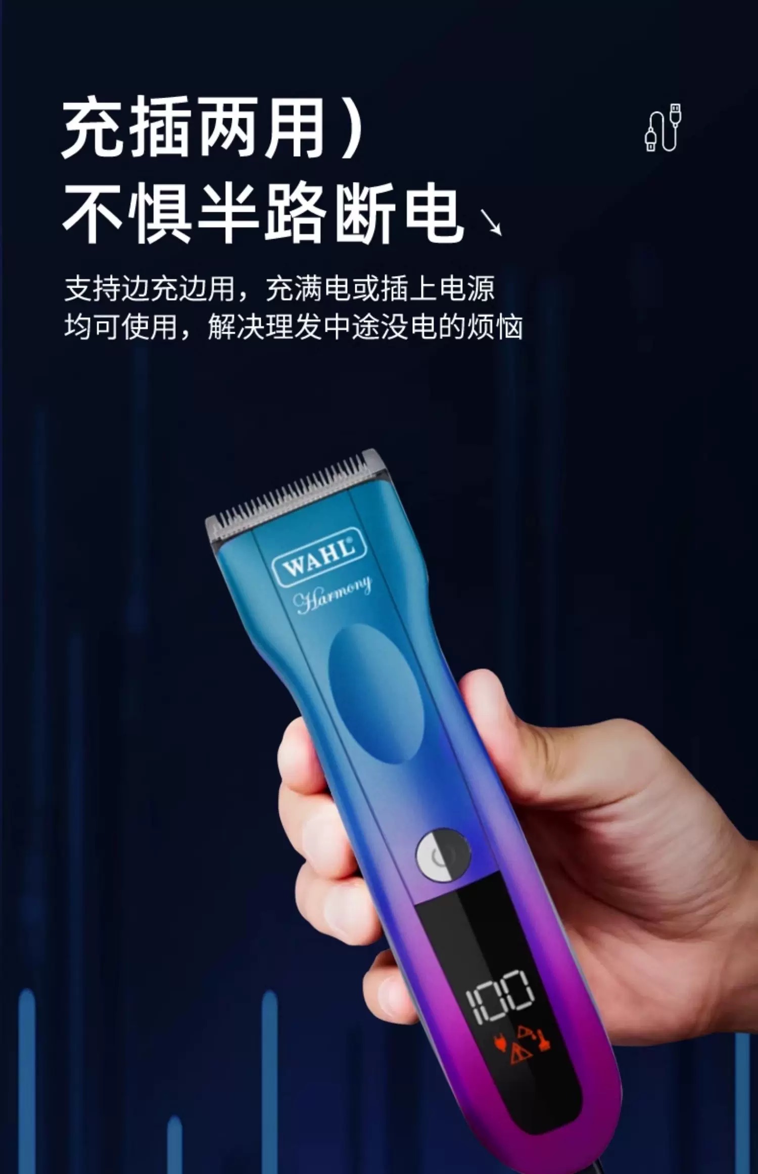 华尔电推剪油头推渐变电推子理发器理发店发廊美发专用充电式2235