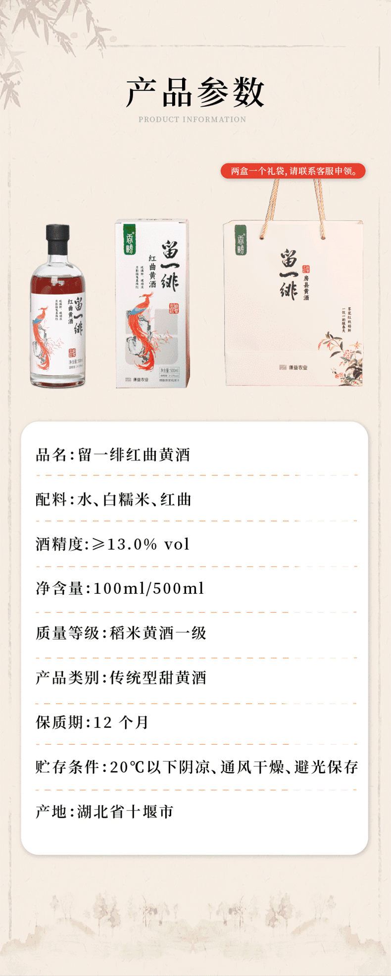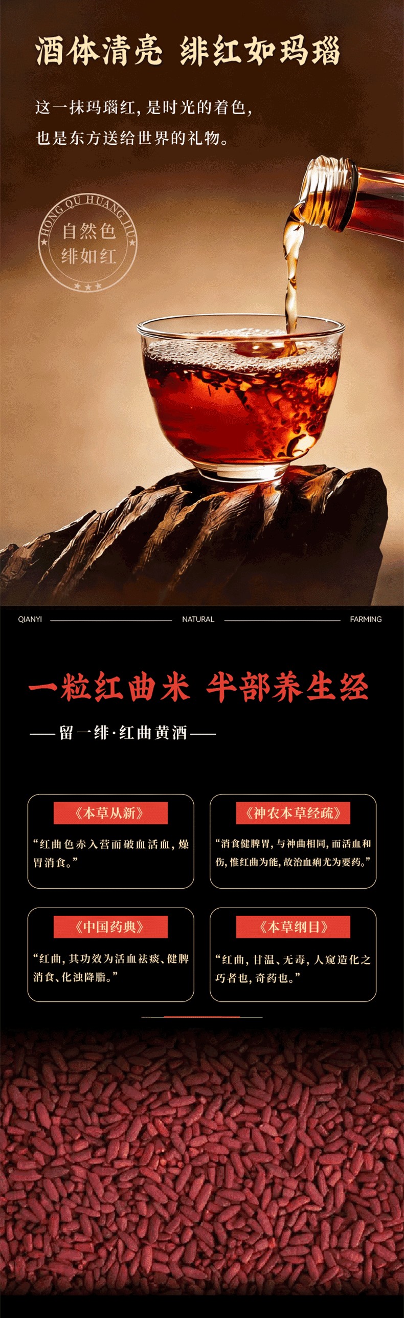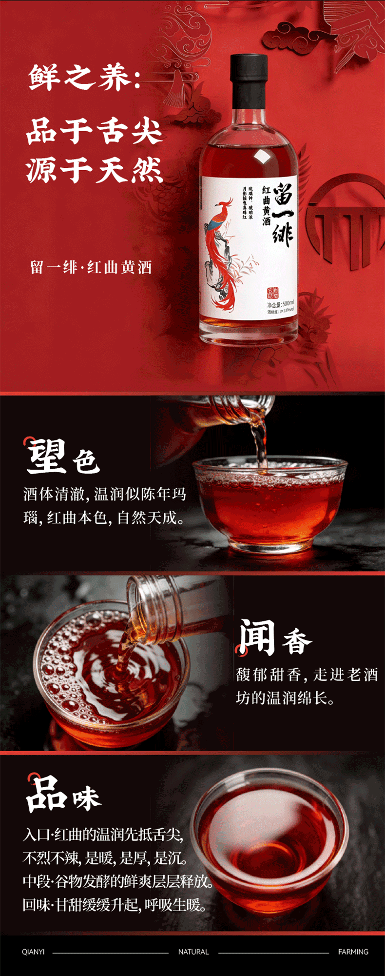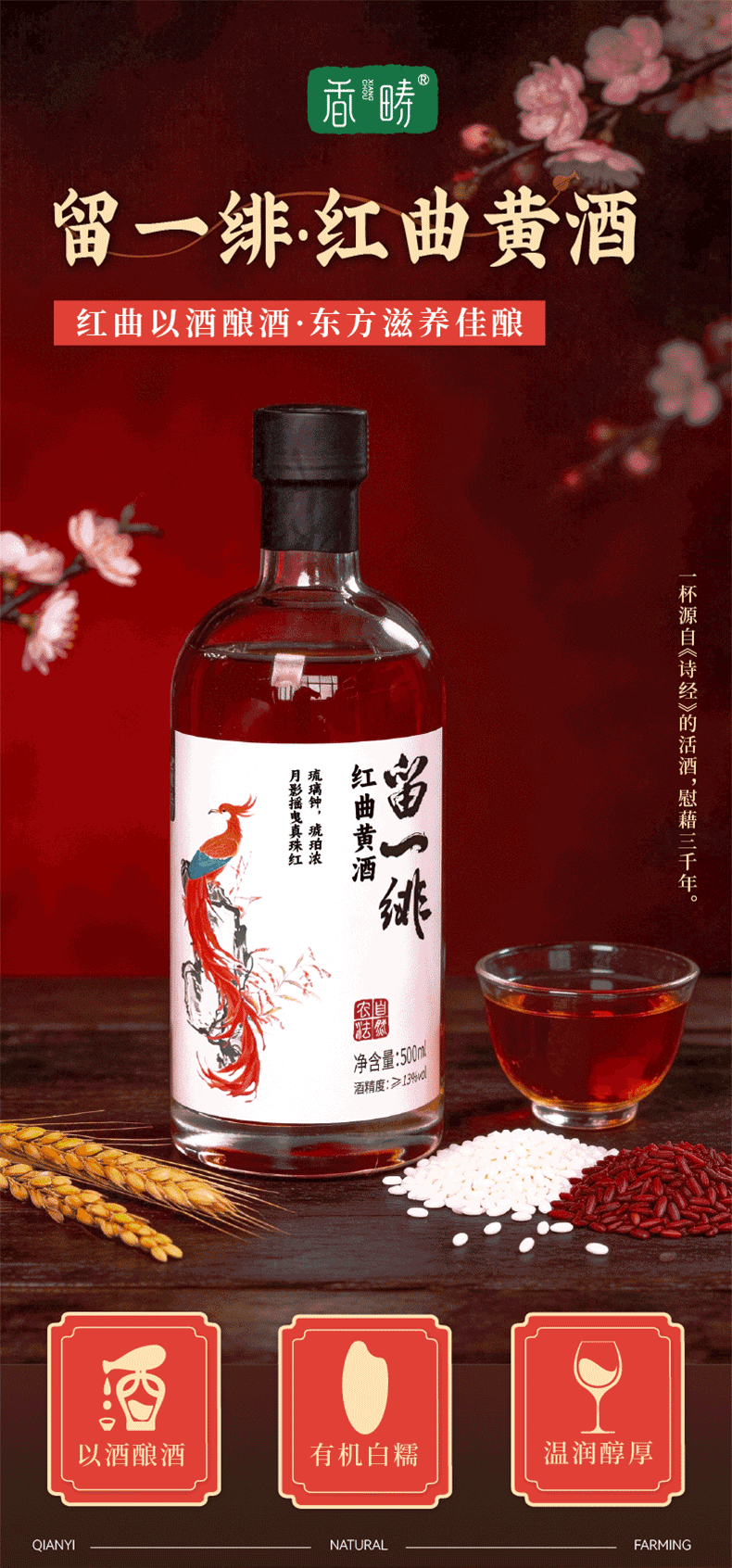 谦益红曲黄酒100/500ml 生态纯酿 双重发酵 甘甜醇厚适口 黑芝麻丸好搭档 产后月子特殊期