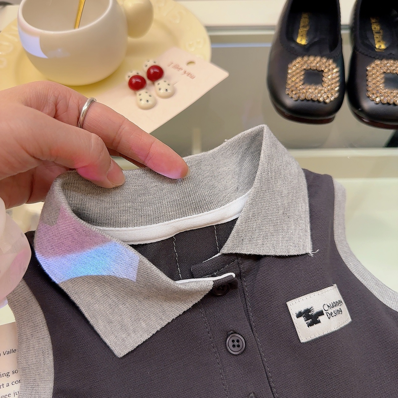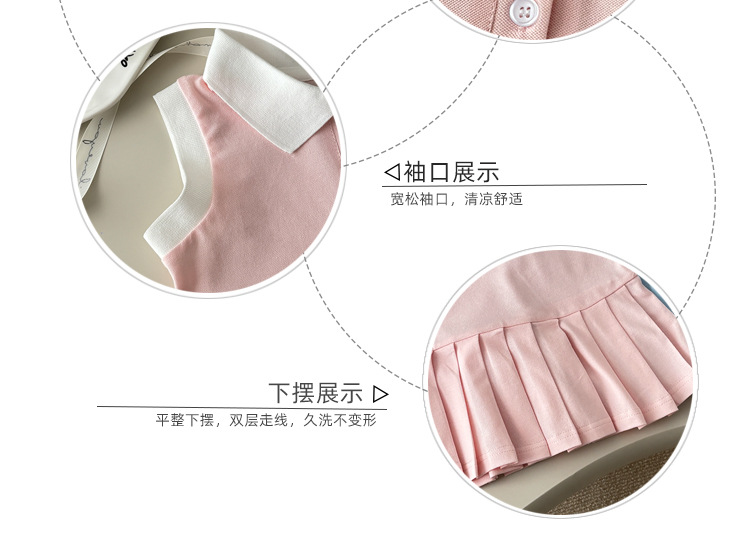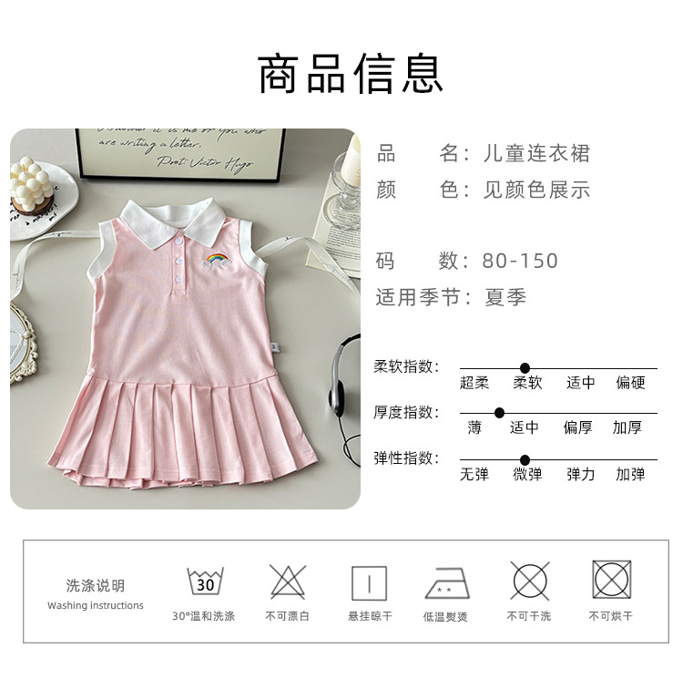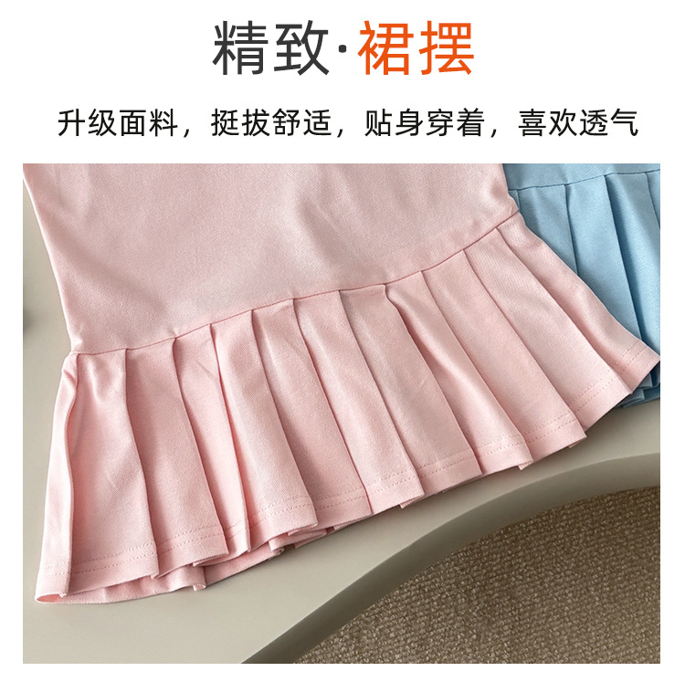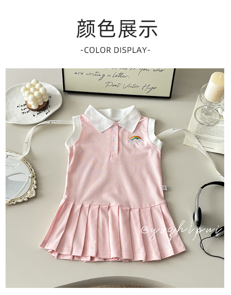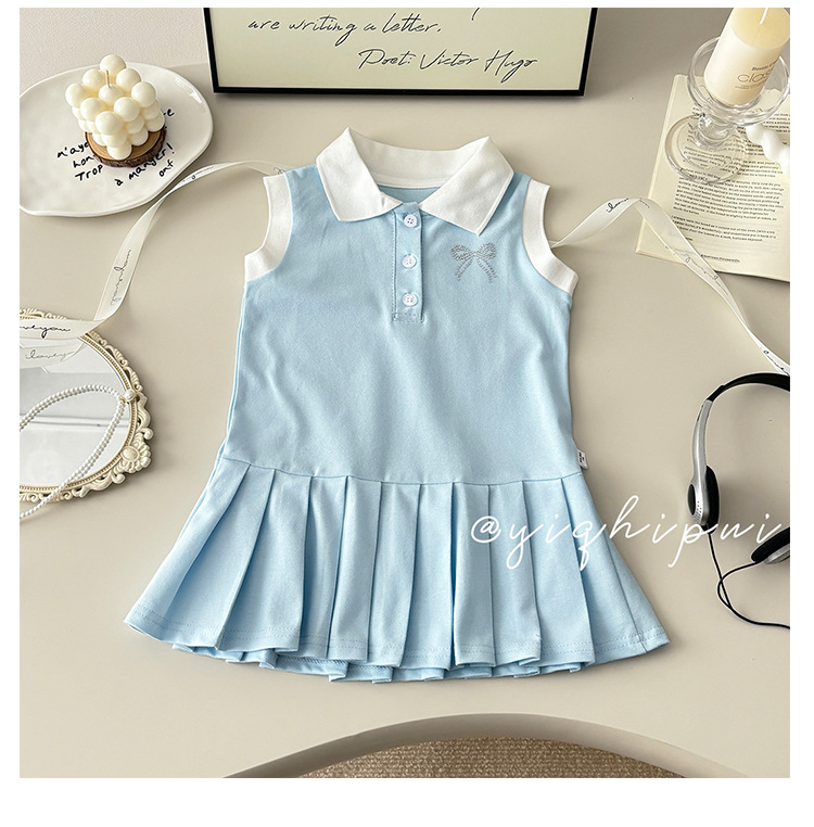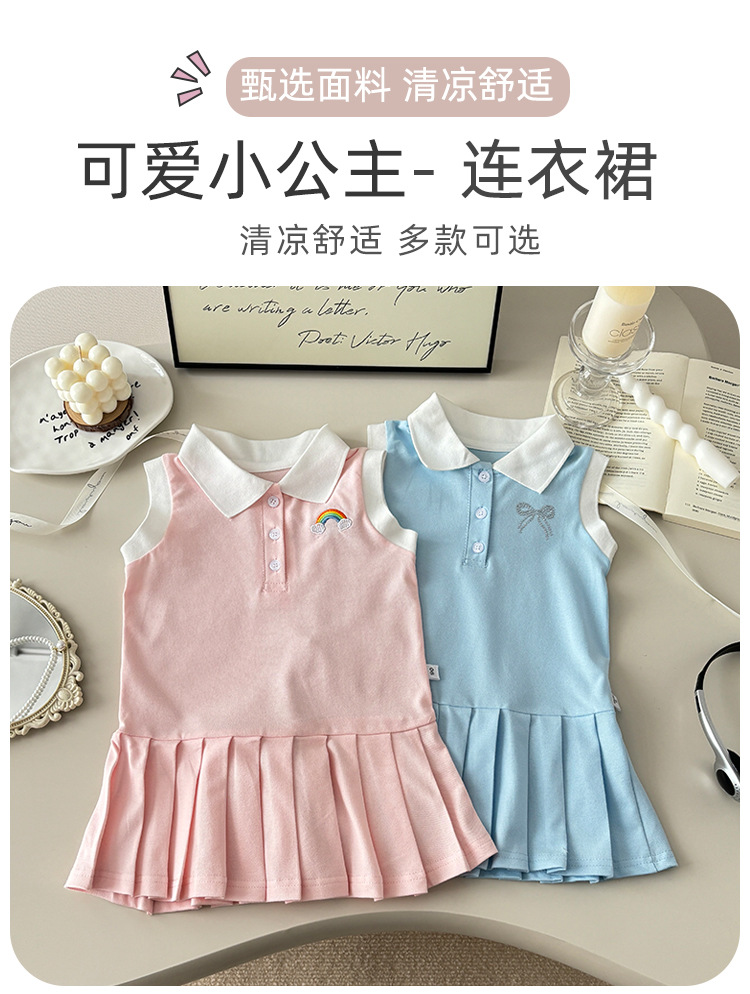 巴鲁熊学院风连衣裙女童休闲POLO领百褶裙公主连衣裙背心裙