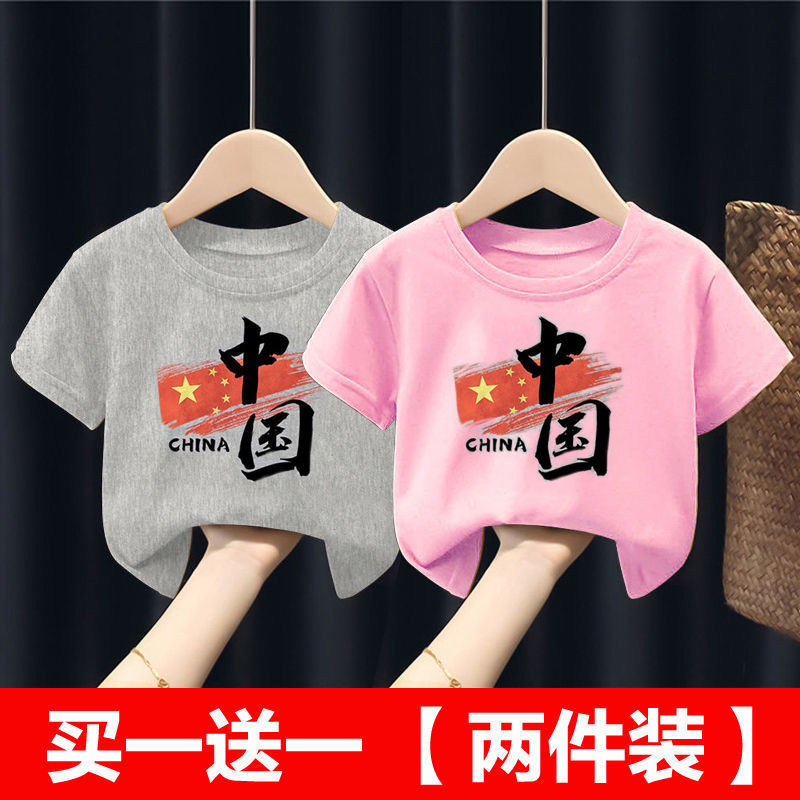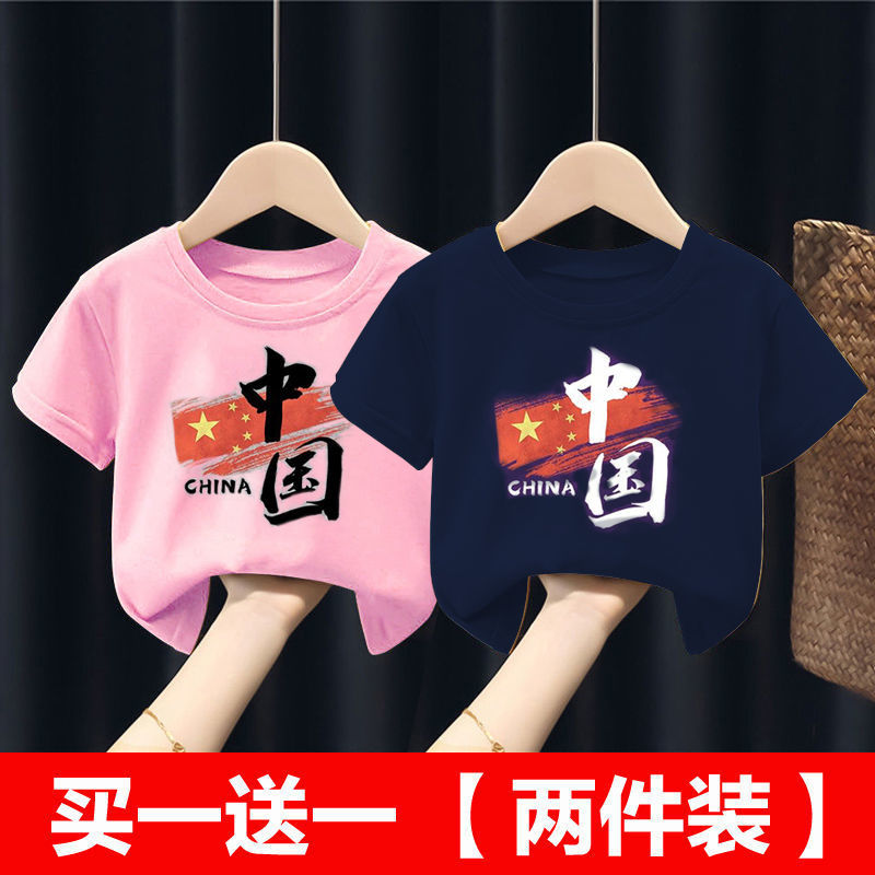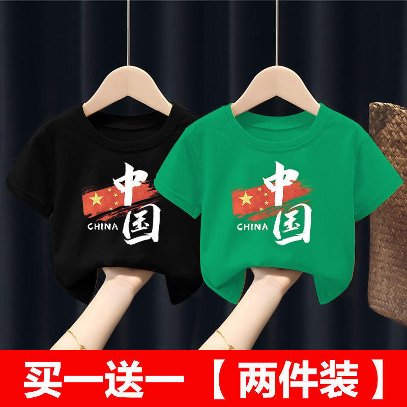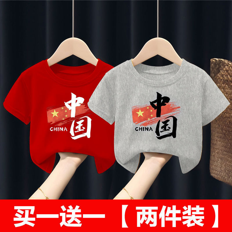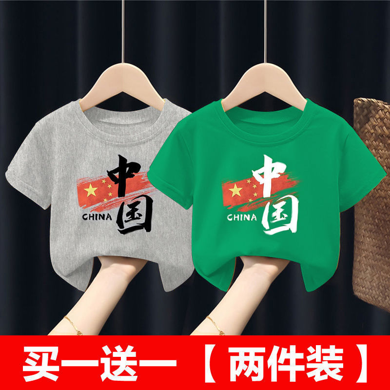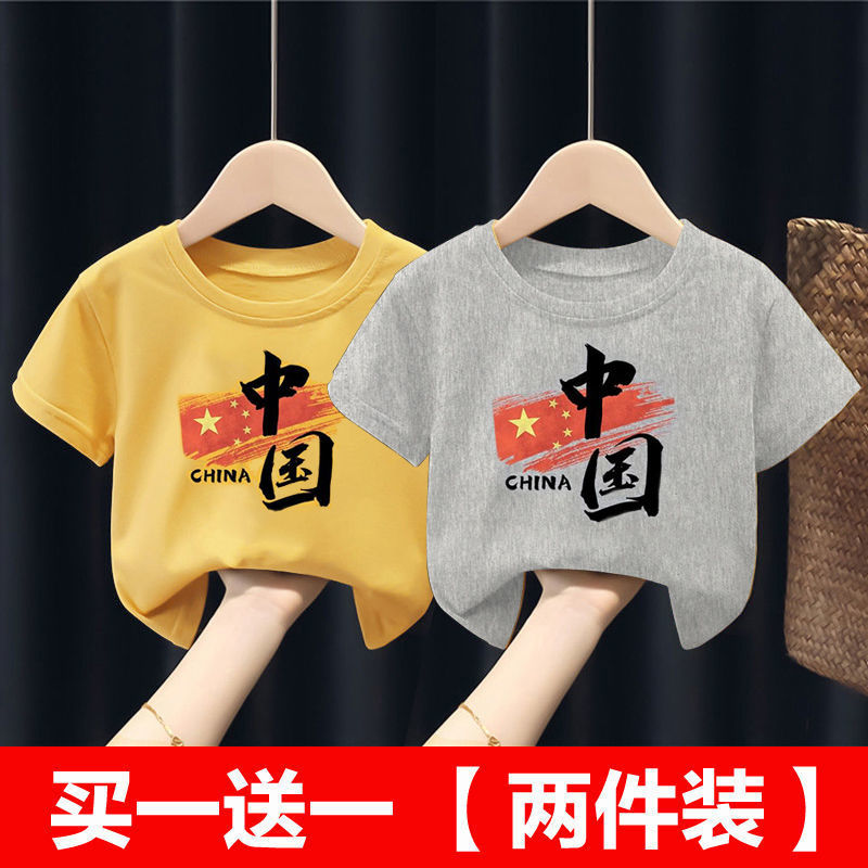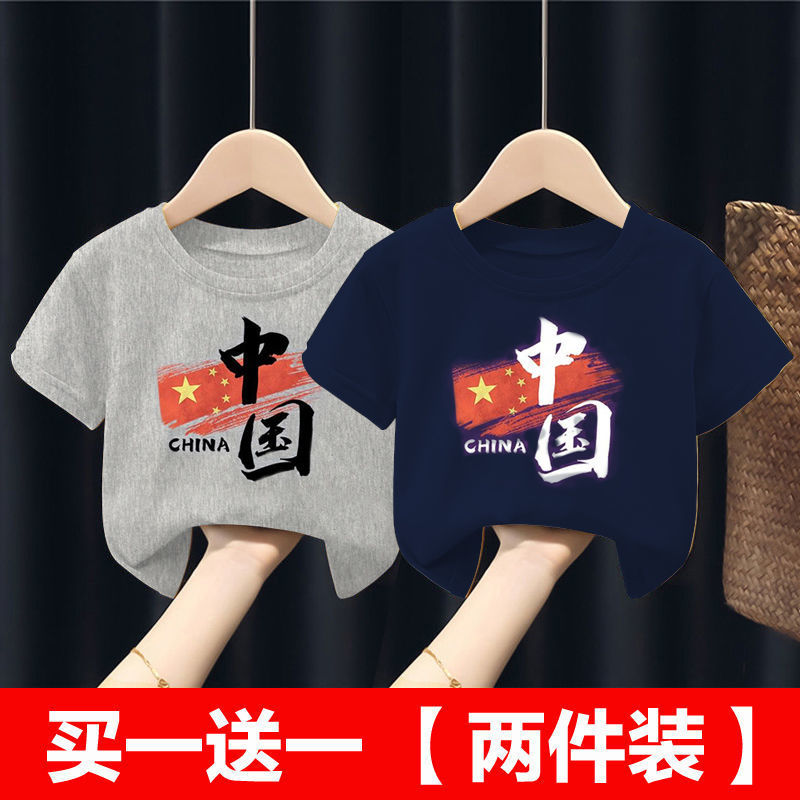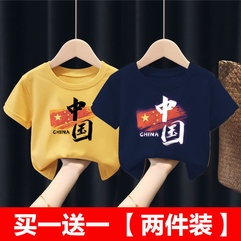 【买一送一】棉新款中国风男童女童短袖T恤夏童装儿童演出服上衣爱国潮