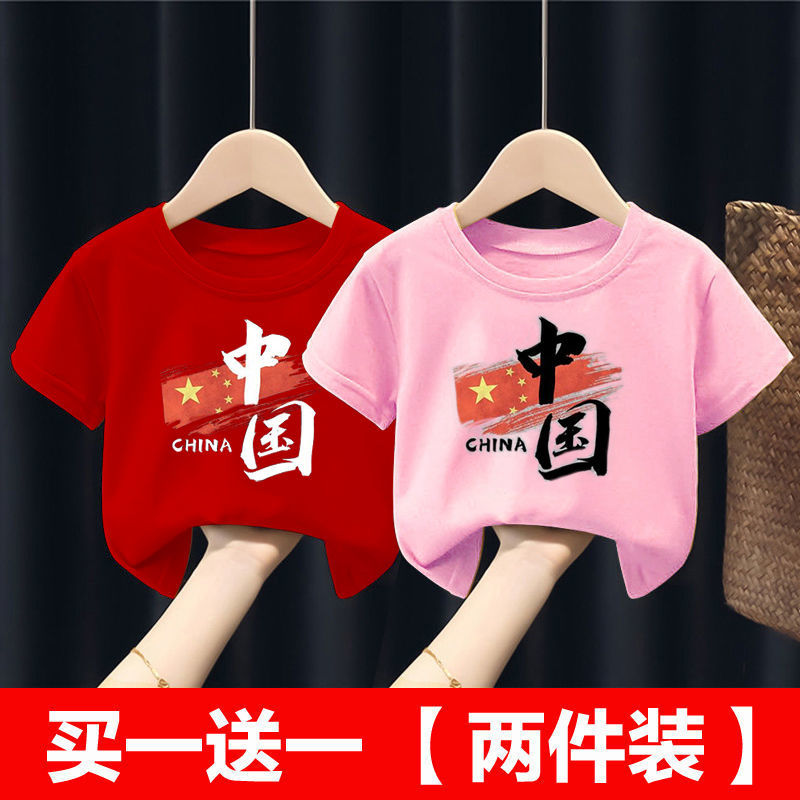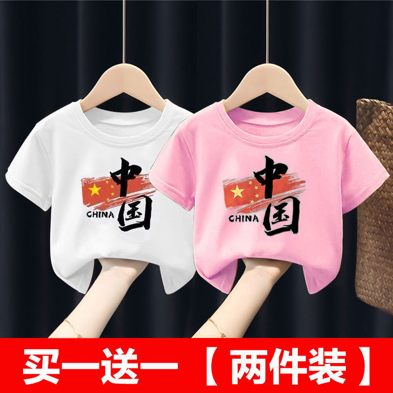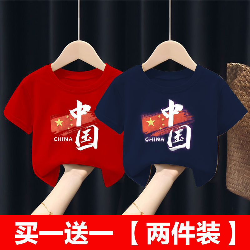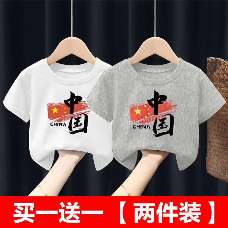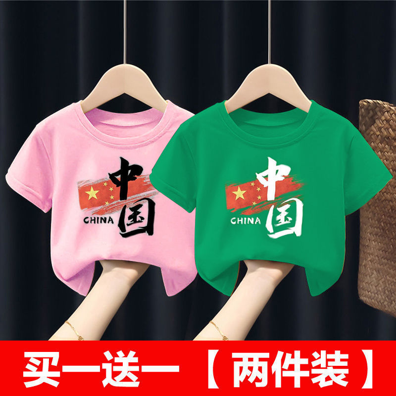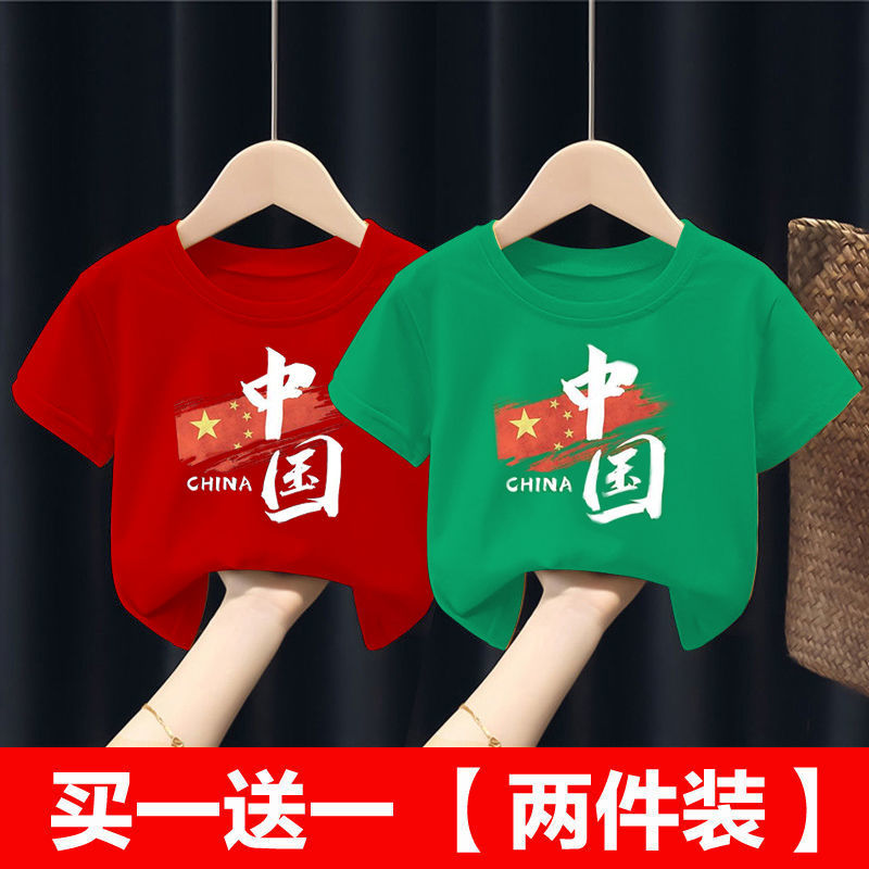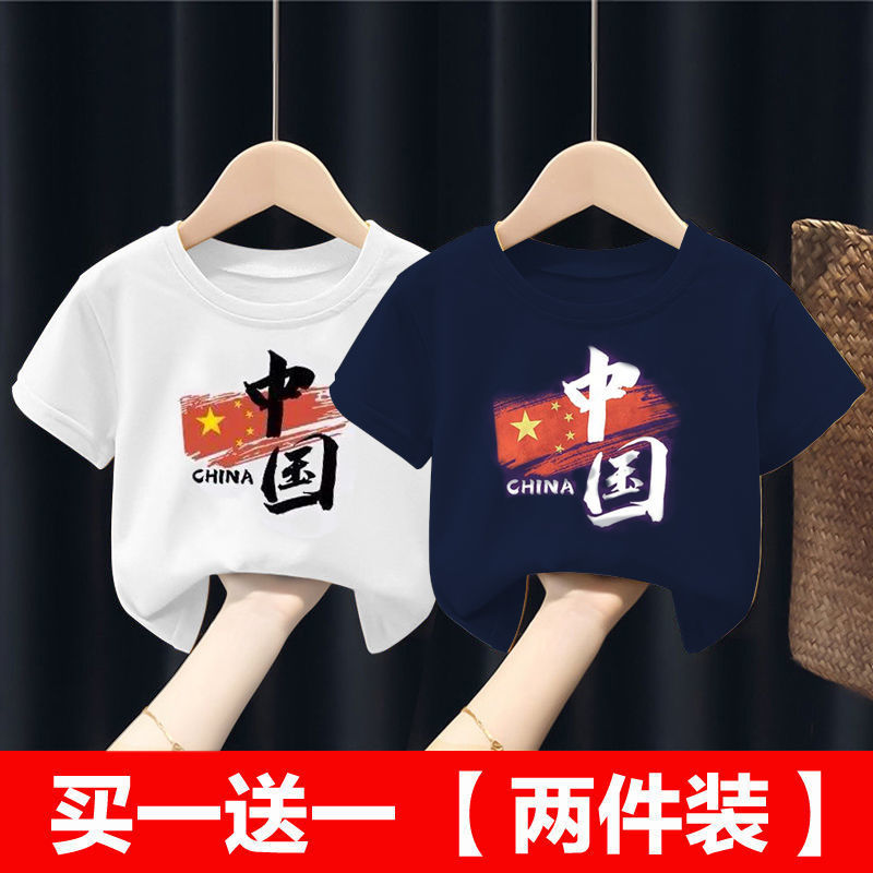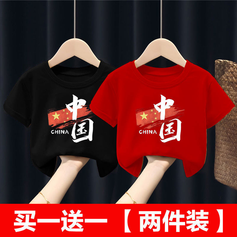 【买一送一】棉新款中国风男童女童短袖T恤夏童装儿童演出服上衣爱国潮
