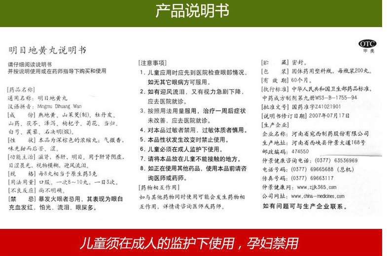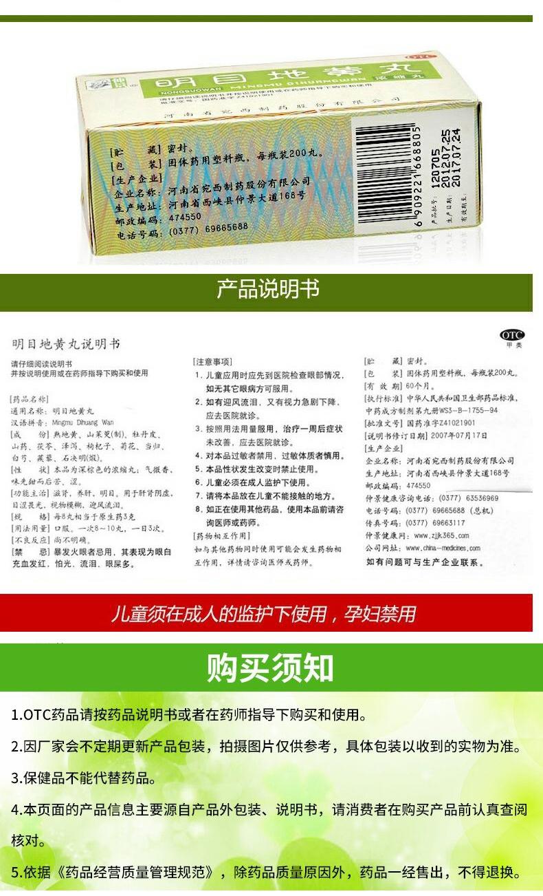 仲景 明目地黄丸(浓缩丸)200丸滋肾养肝肾阴虚明目涩畏光模糊