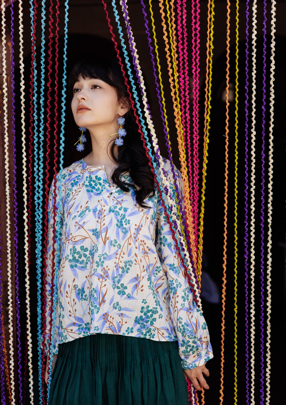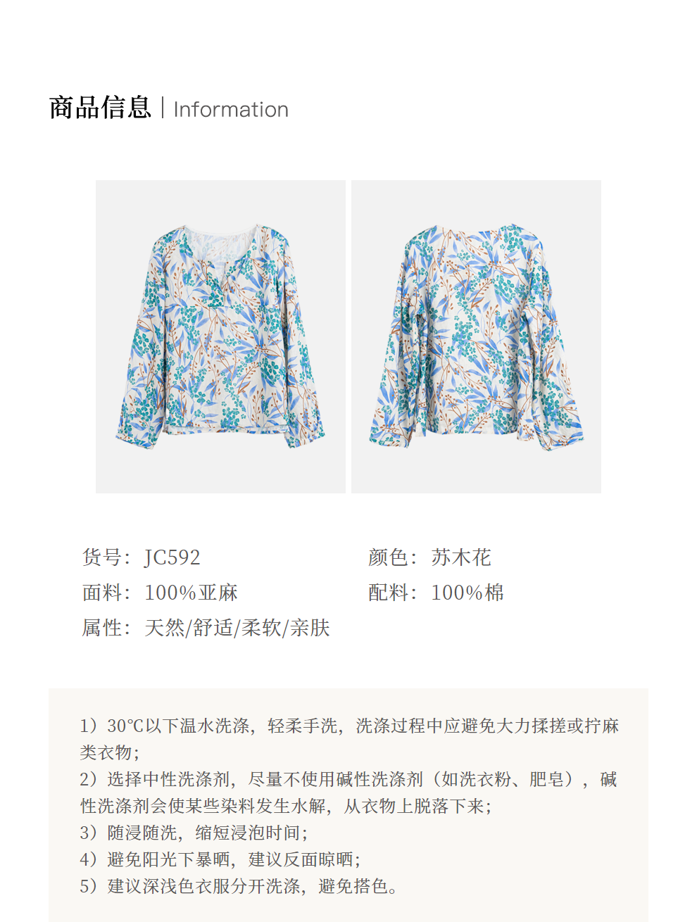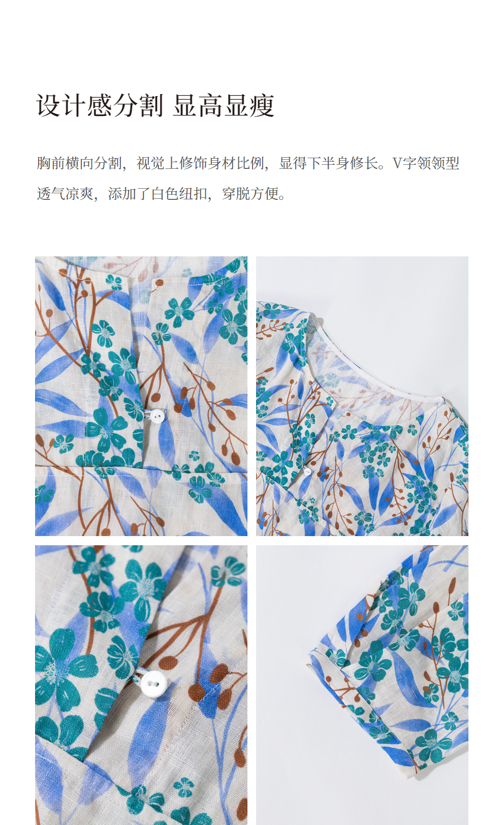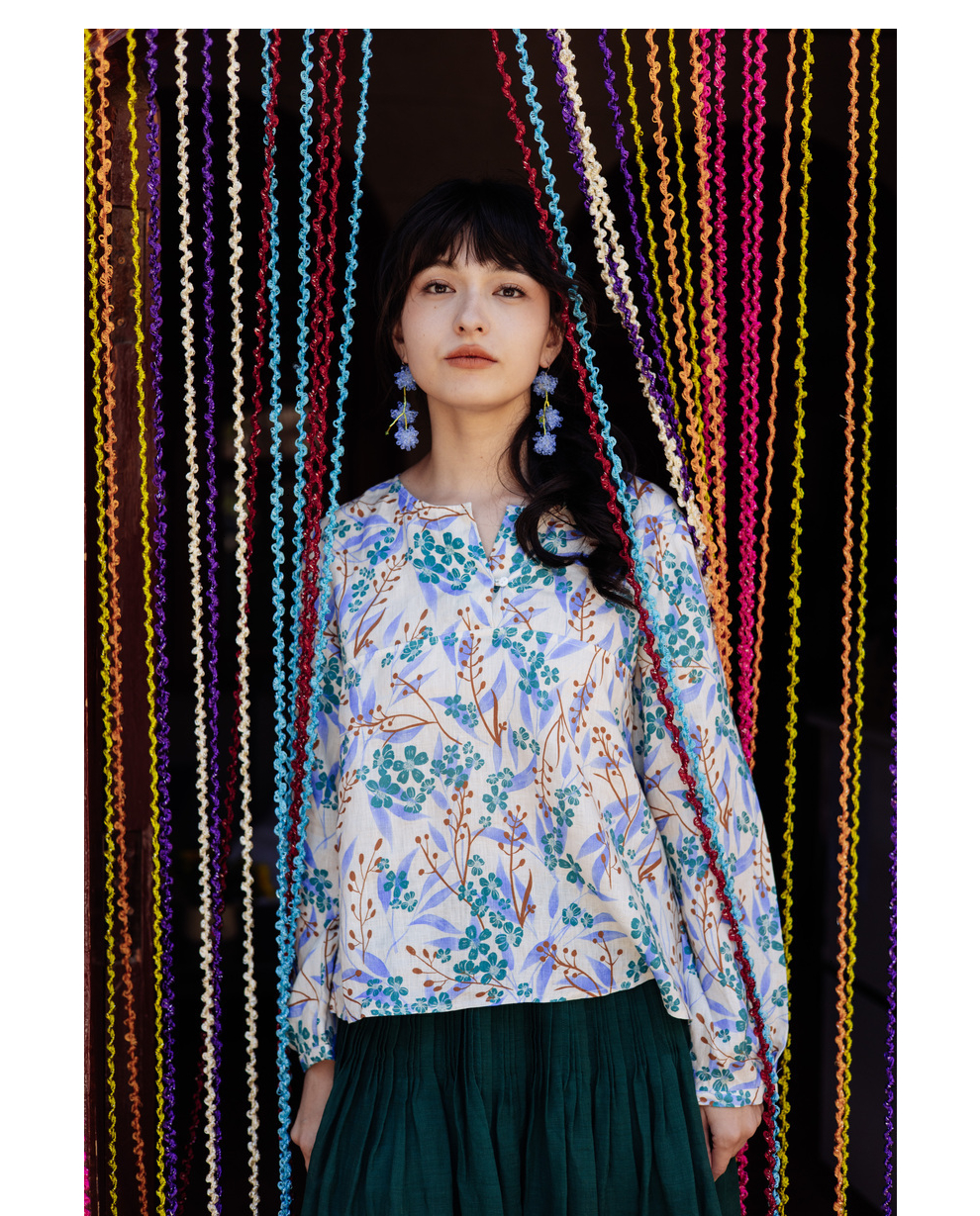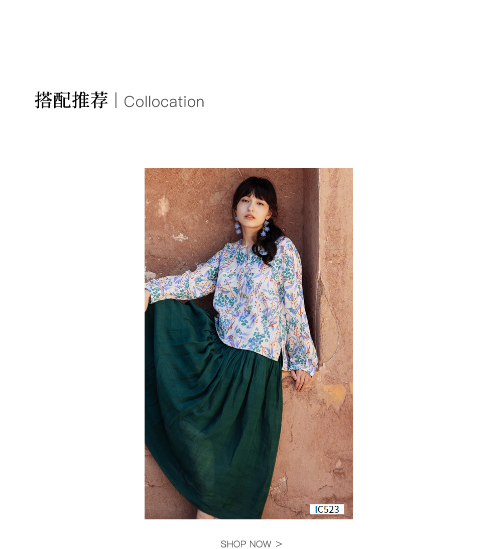 * 绽放592朵/【苏木系列】秋新款亚麻苏木印花小衫V领文艺长袖衬衫