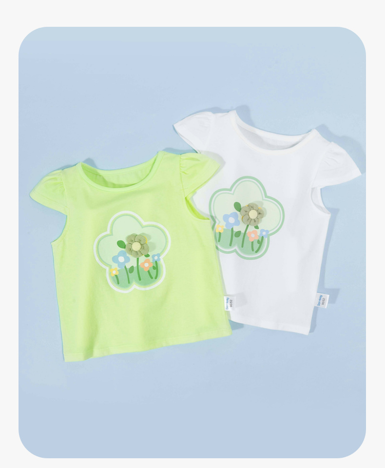 贝贝怡24夏款女童印花短袖T恤甜美舒适透气上衣ZB2DS010