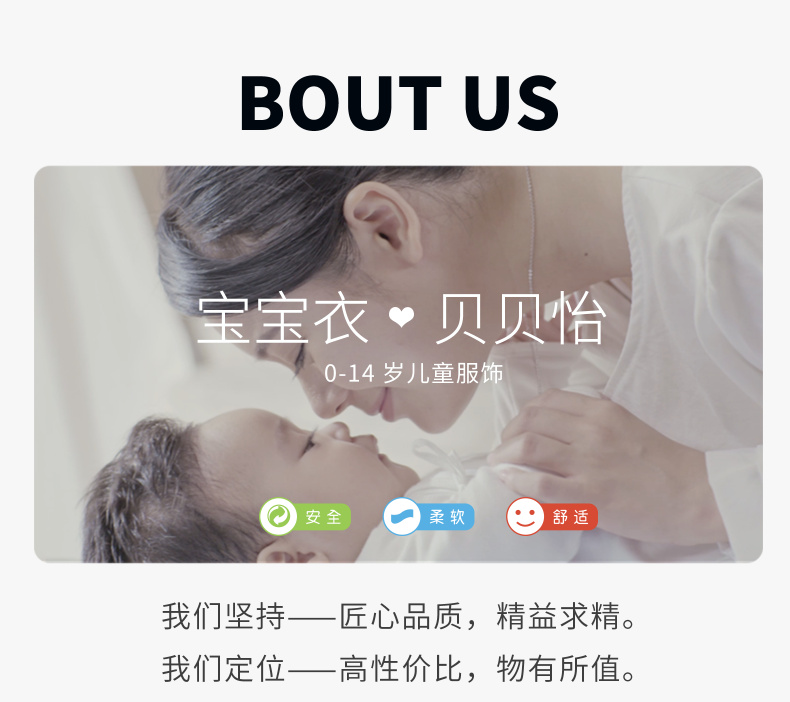 - 贝贝怡专注0-6岁婴幼儿服饰,坚持安全、柔软、舒适的产品理念,为千万中国家庭提供超高品质、安全可靠的婴幼儿服饰产品,妈妈放心,宝宝开心!