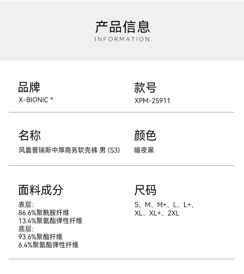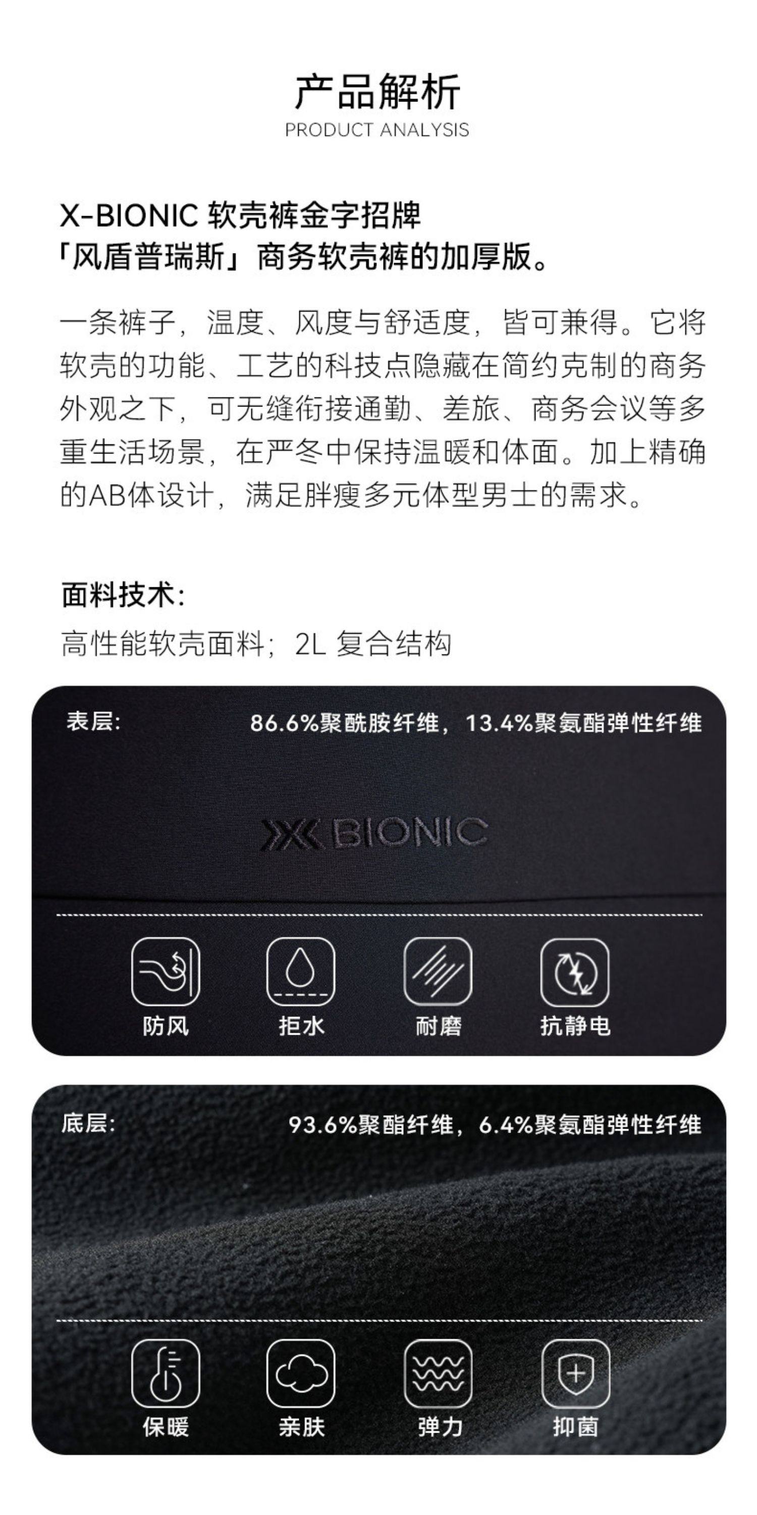 X-BIONIC风盾普瑞斯中厚商务软壳裤男士 保暖防风耐磨抗静电裤子25911