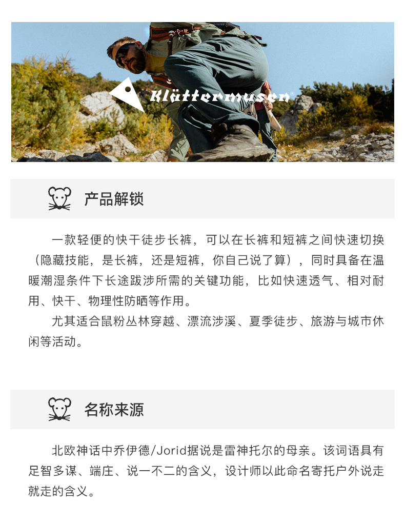 klattermusen攀山鼠 户外快干长裤男款可拆卸(乔伊德)10370