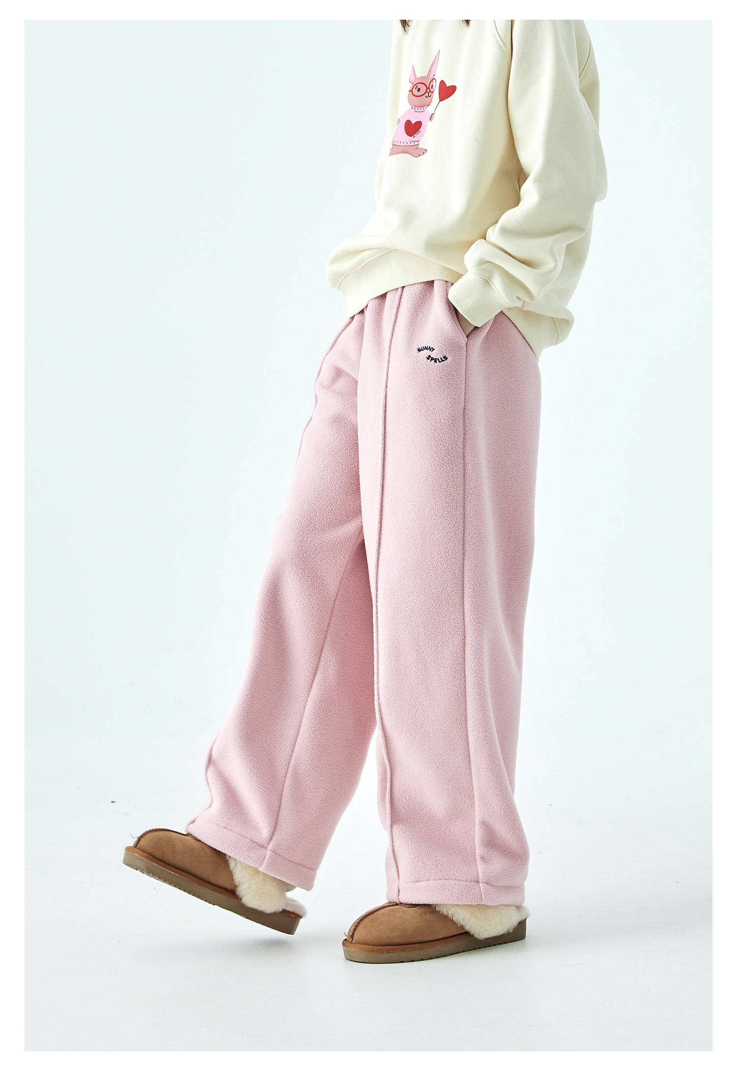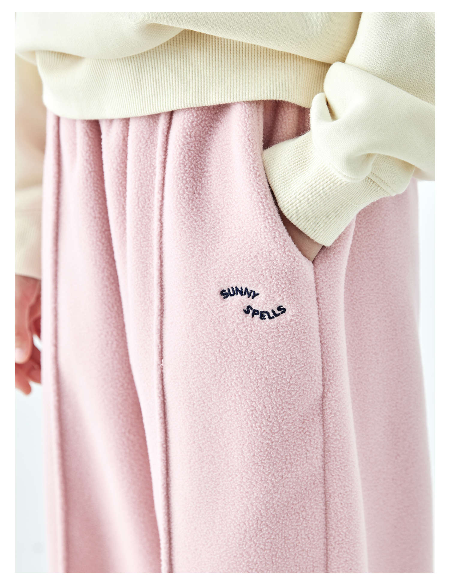 棵初2025年秋冬新款亲子中大女童宽松摇粒绒卫裤抗静电休闲直筒裤