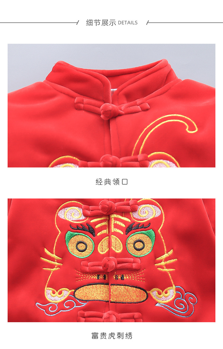 【虎年刺绣宝宝套装 甄选优质面料】2021冬季新品男童拜年服唐装中国风宝宝过年红色喜庆加绒加厚套装