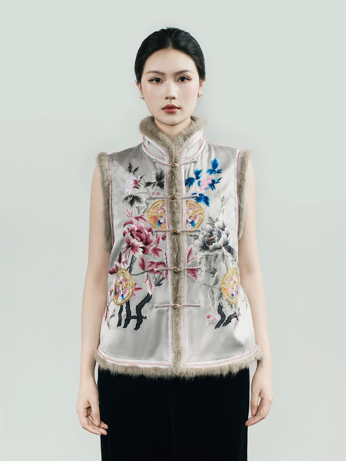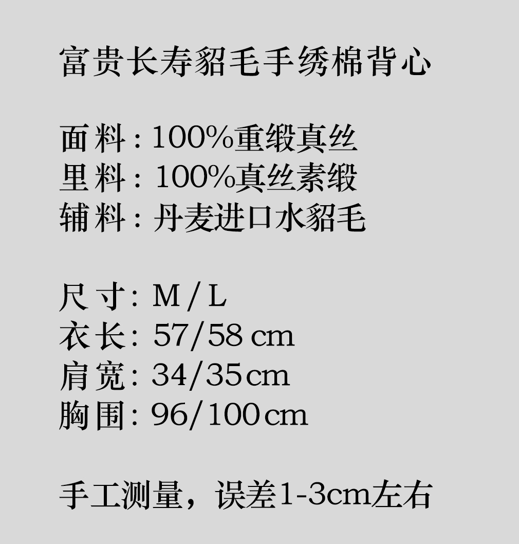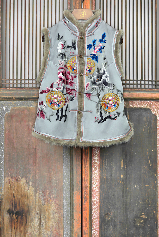 盛唐牡丹大师系列 | 富贵长寿貂毛手绣棉背心 (盛唐牡丹与非遗传承人王小潇联名系列)