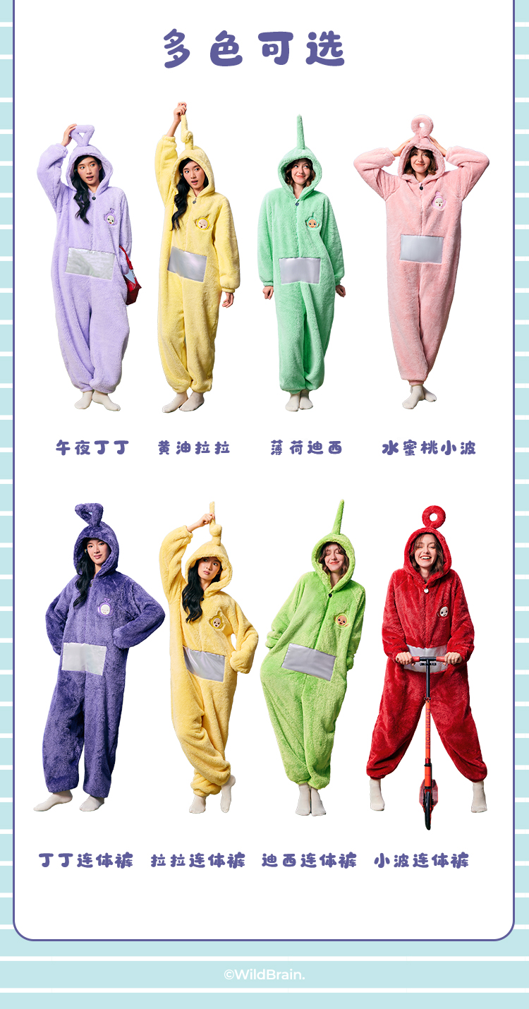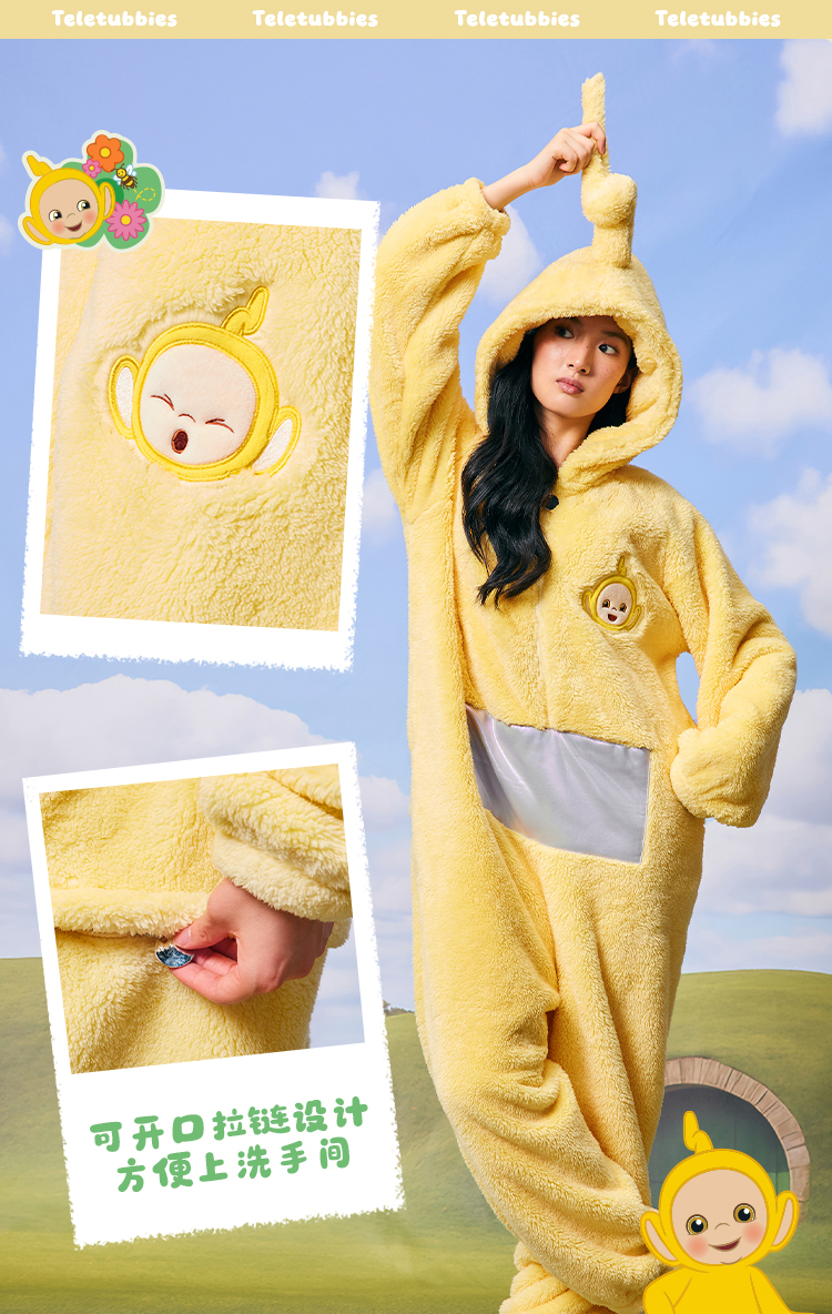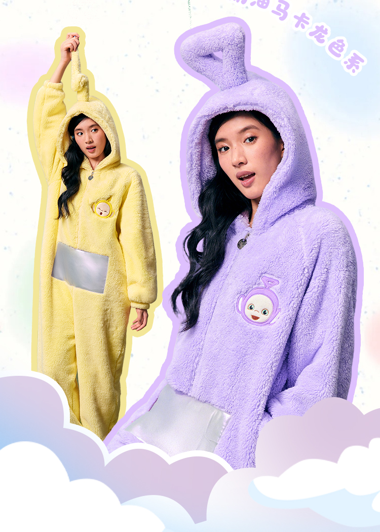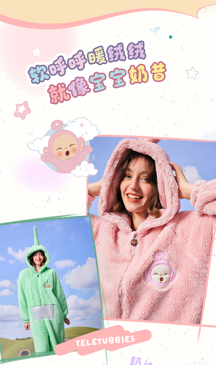奶糖派加绒睡衣女冬季保暖家居服天线宝宝联名新款毛绒连体睡衣