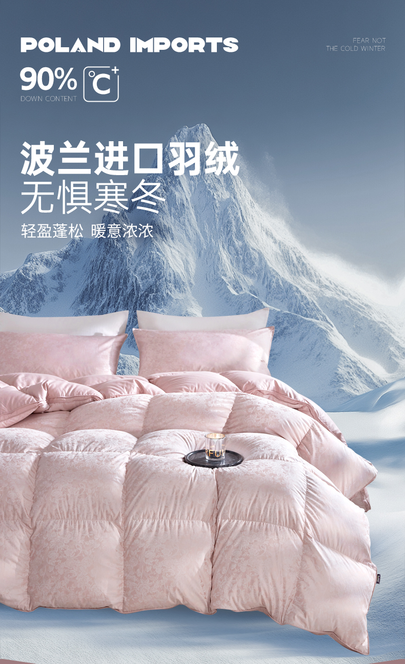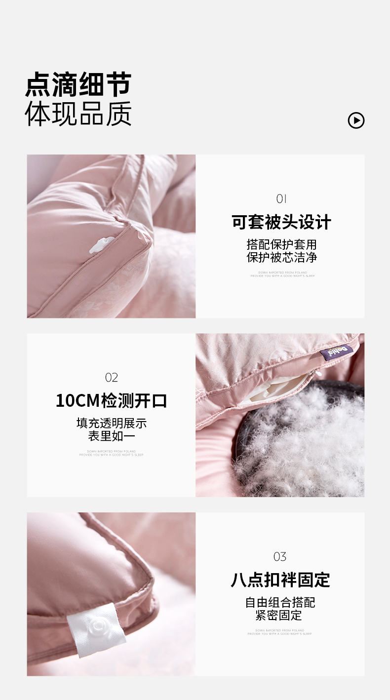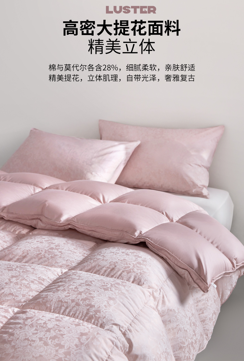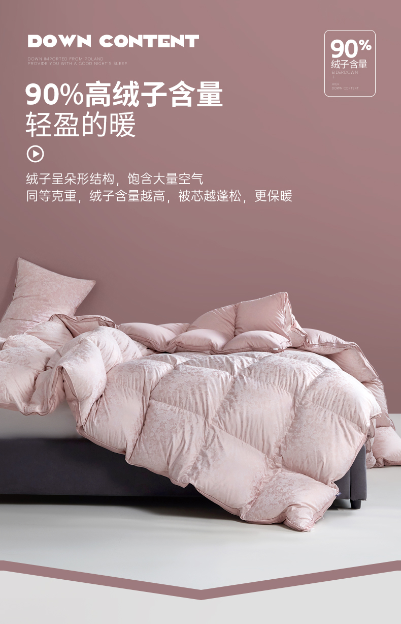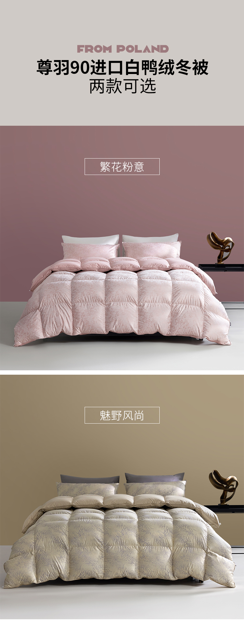多喜爱 波兰进口奢绒90白鸭绒冬被-繁花粉意/魅野风尚hl【90%绒子含量】【1000+洁净度】【防钻绒面料】3D航空仓设计 轻盈蓬松 PU手提包