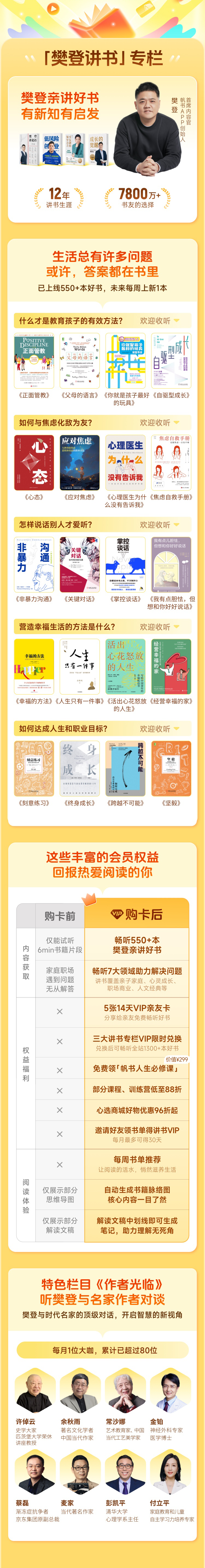 【讲书会员】樊登讲书1年VIP+12堂优秀父母养成大课在线课程【私域专属】