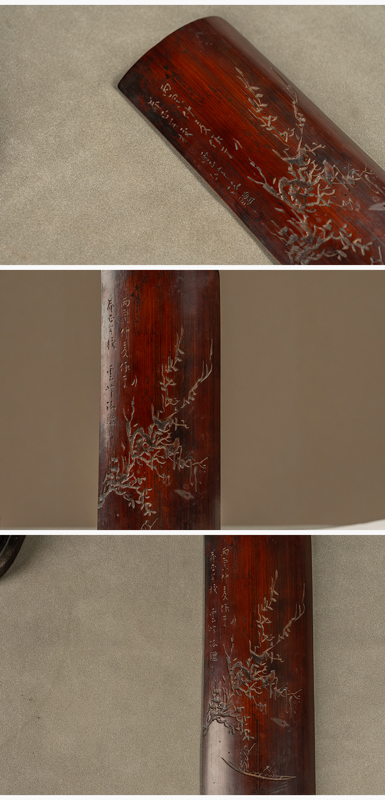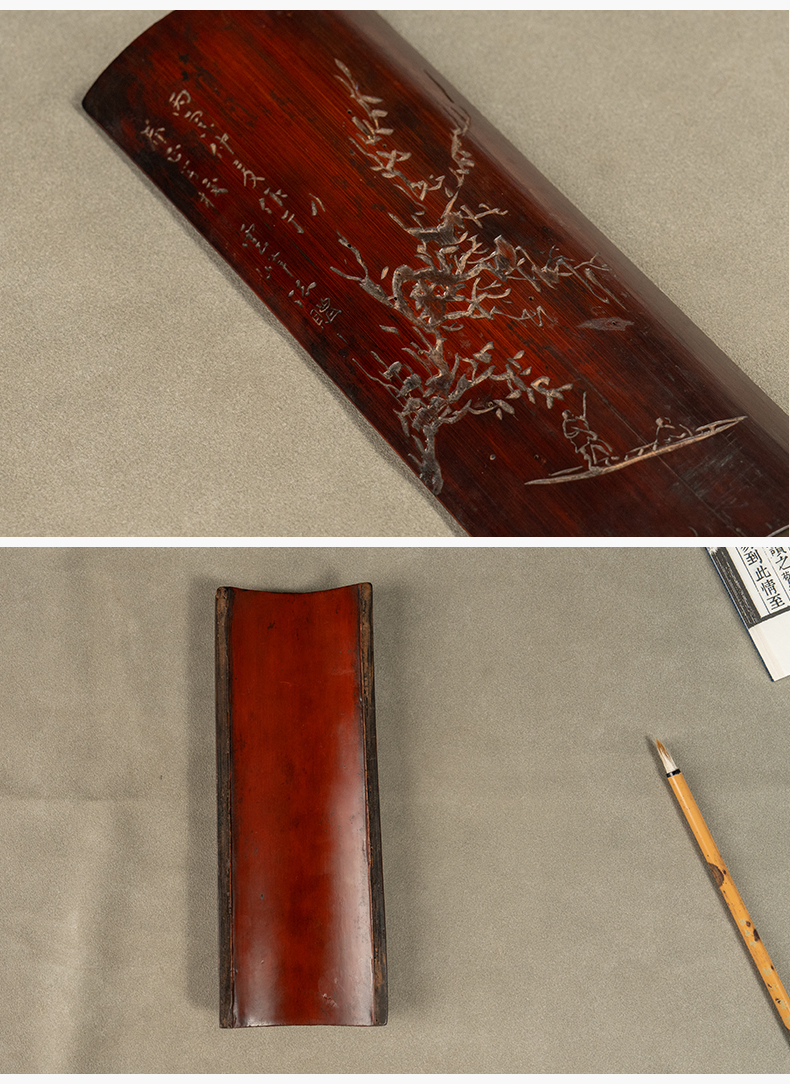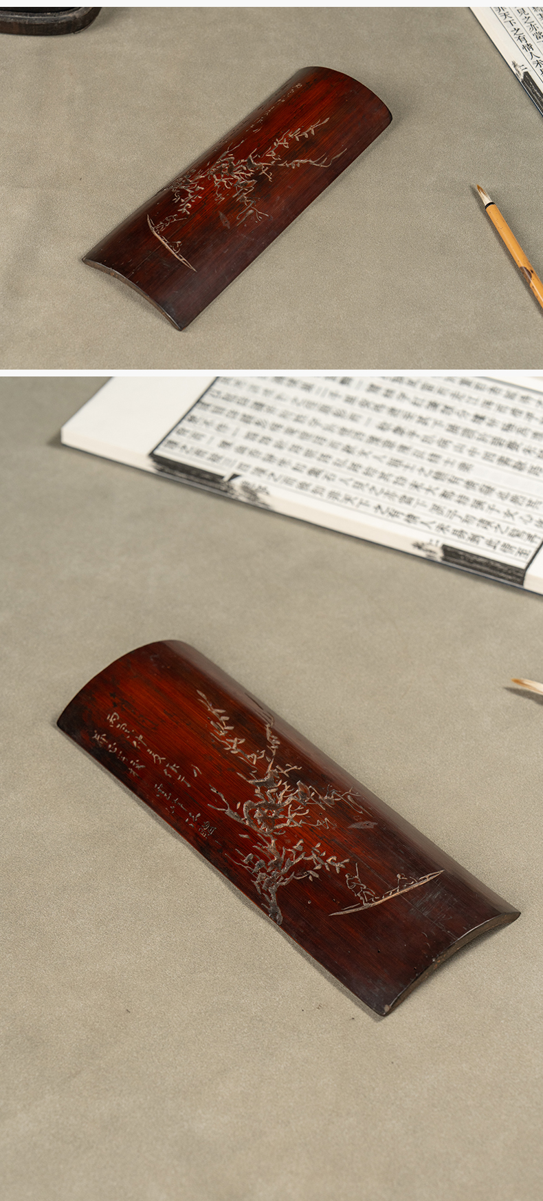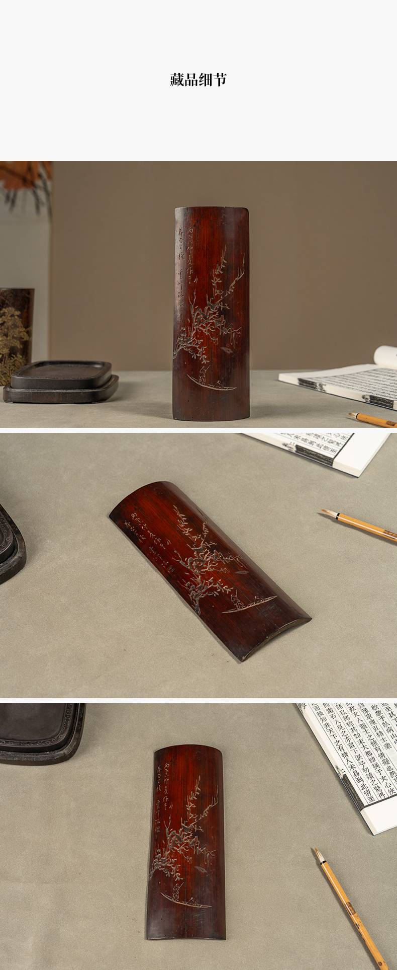 清 黄花梨百宝嵌花鸟诗文笔筒