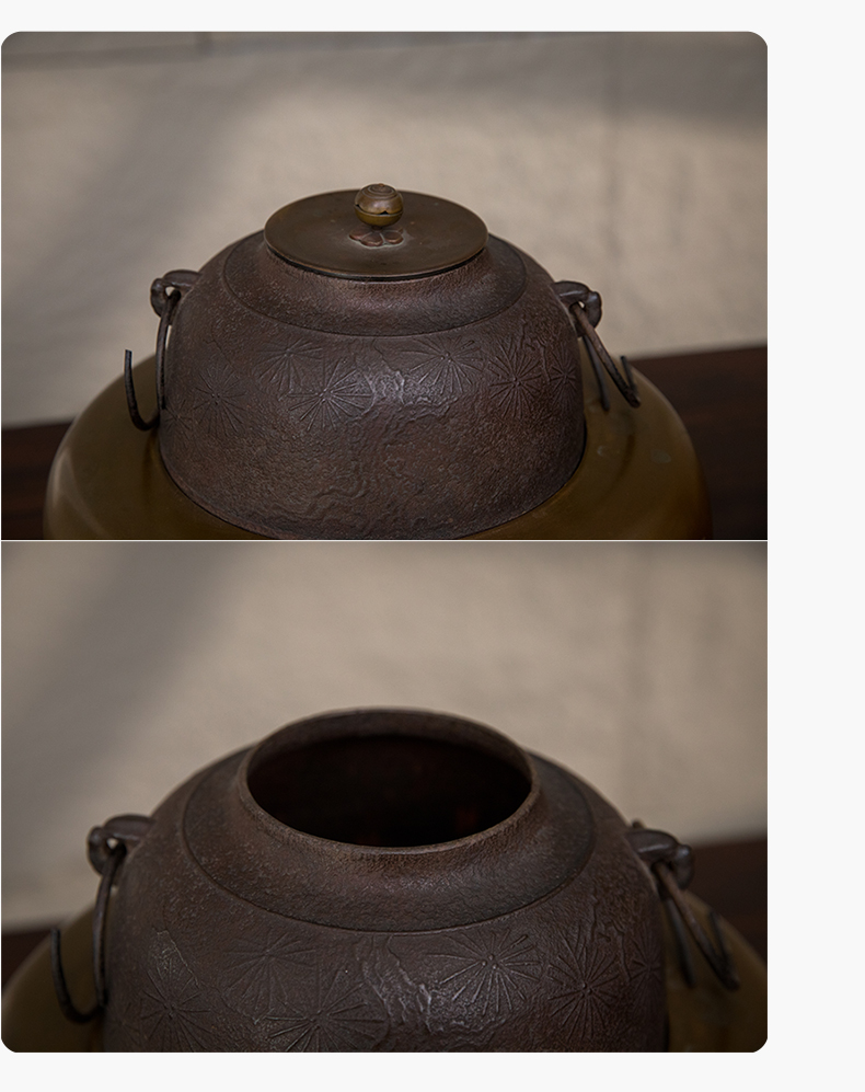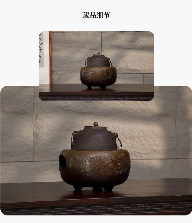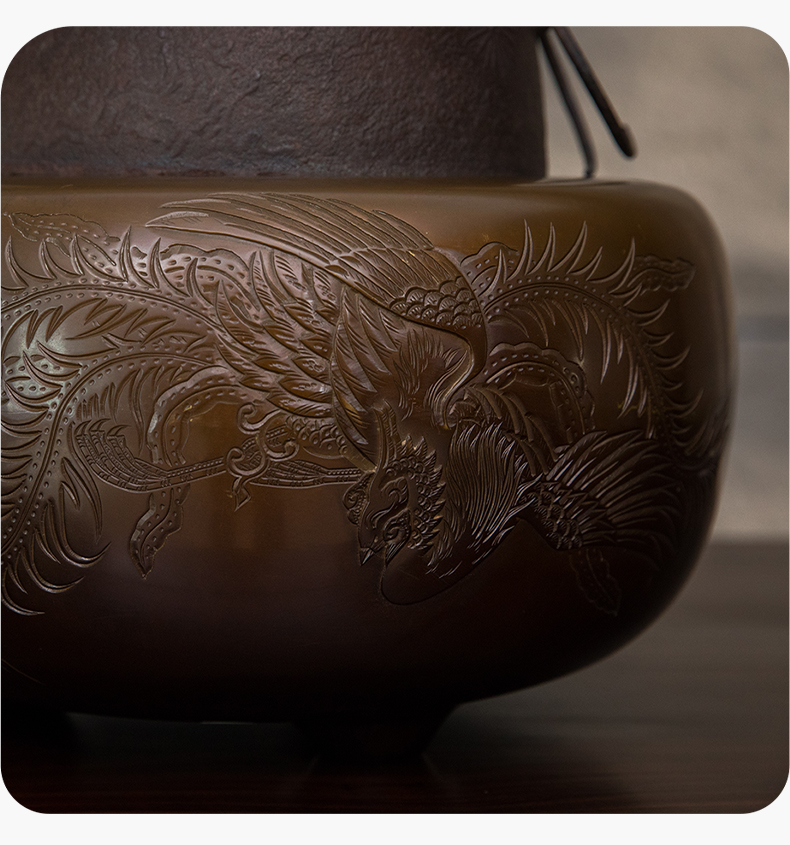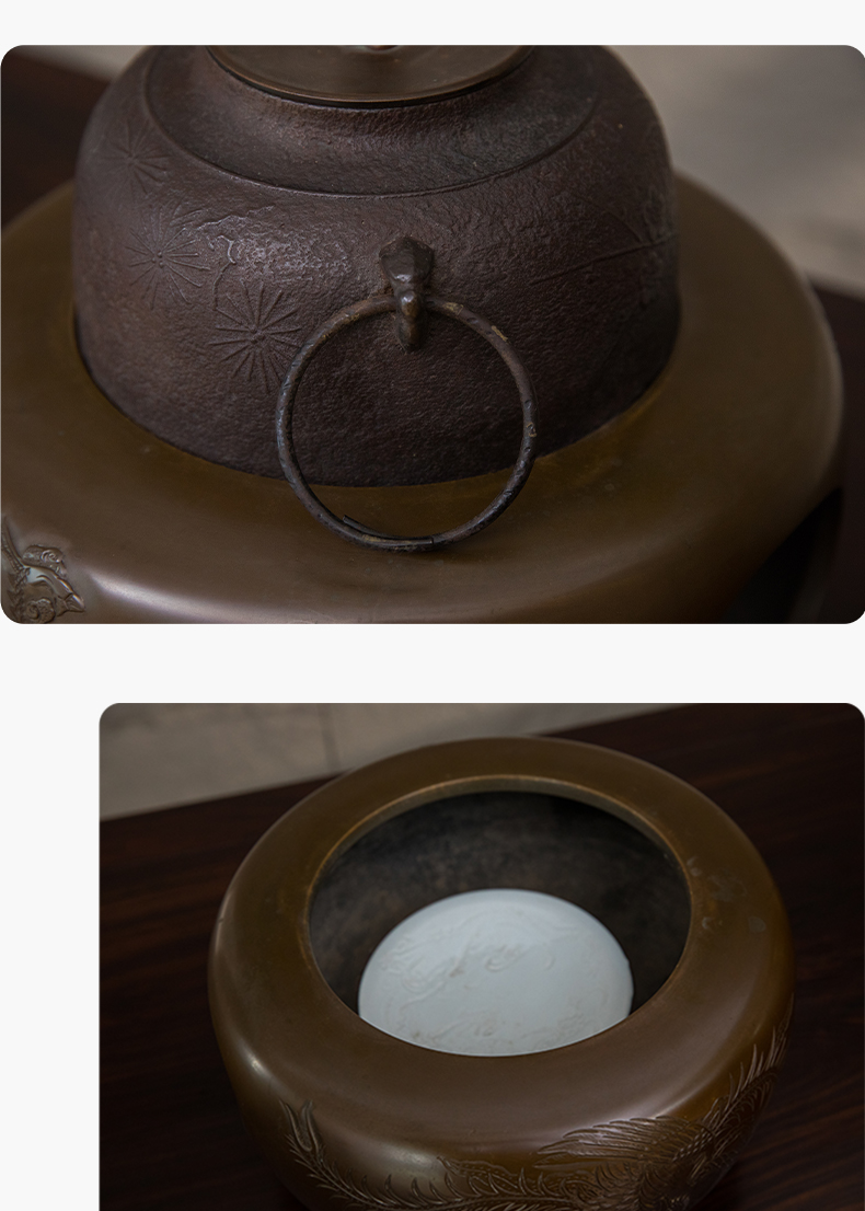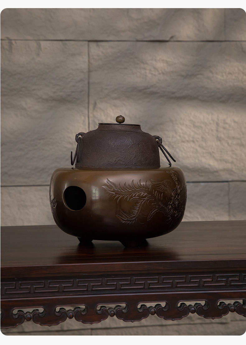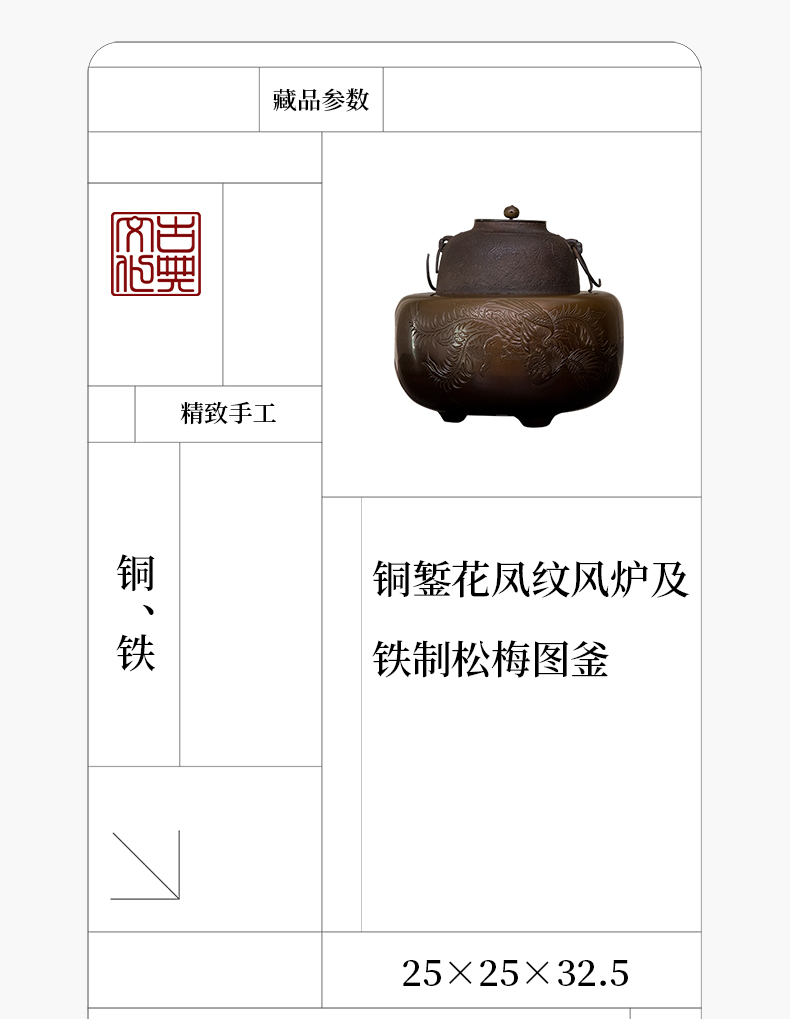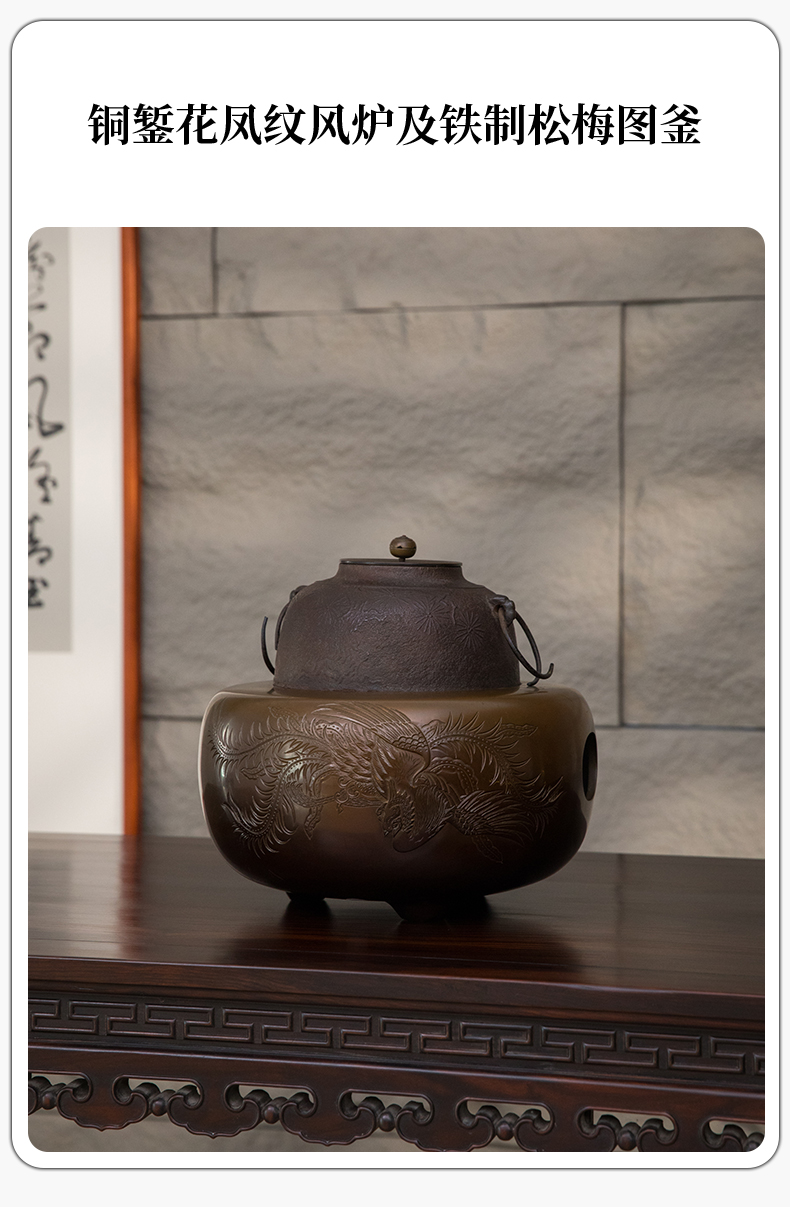 铜錾花凤纹风炉及铁制松梅图釜