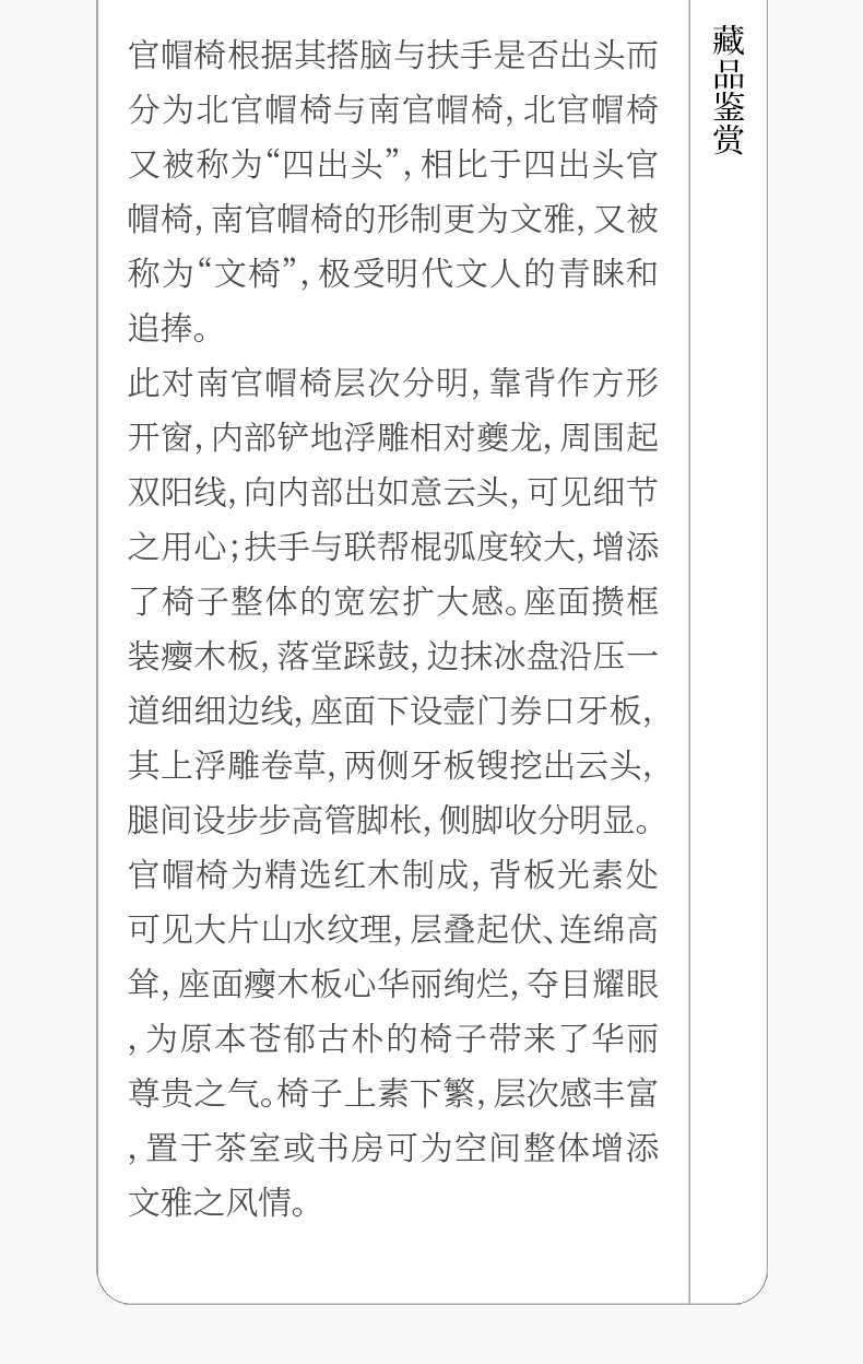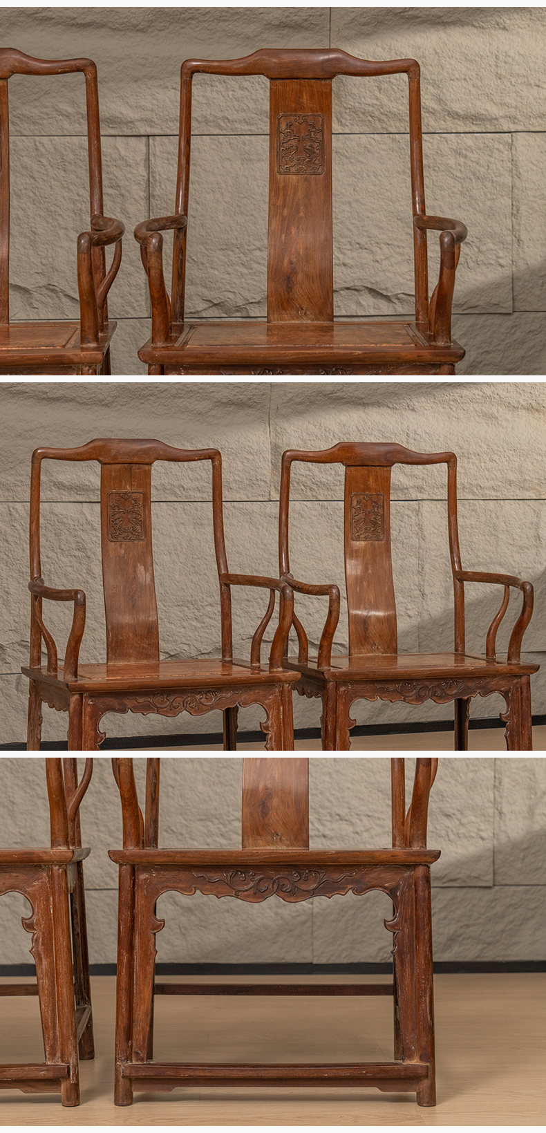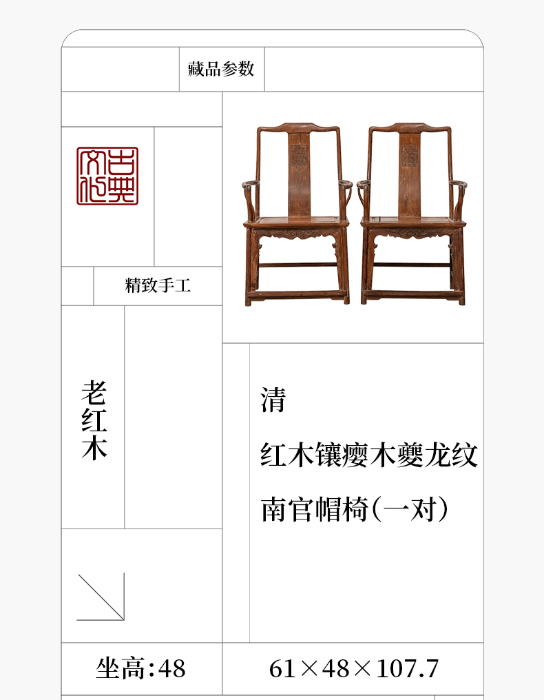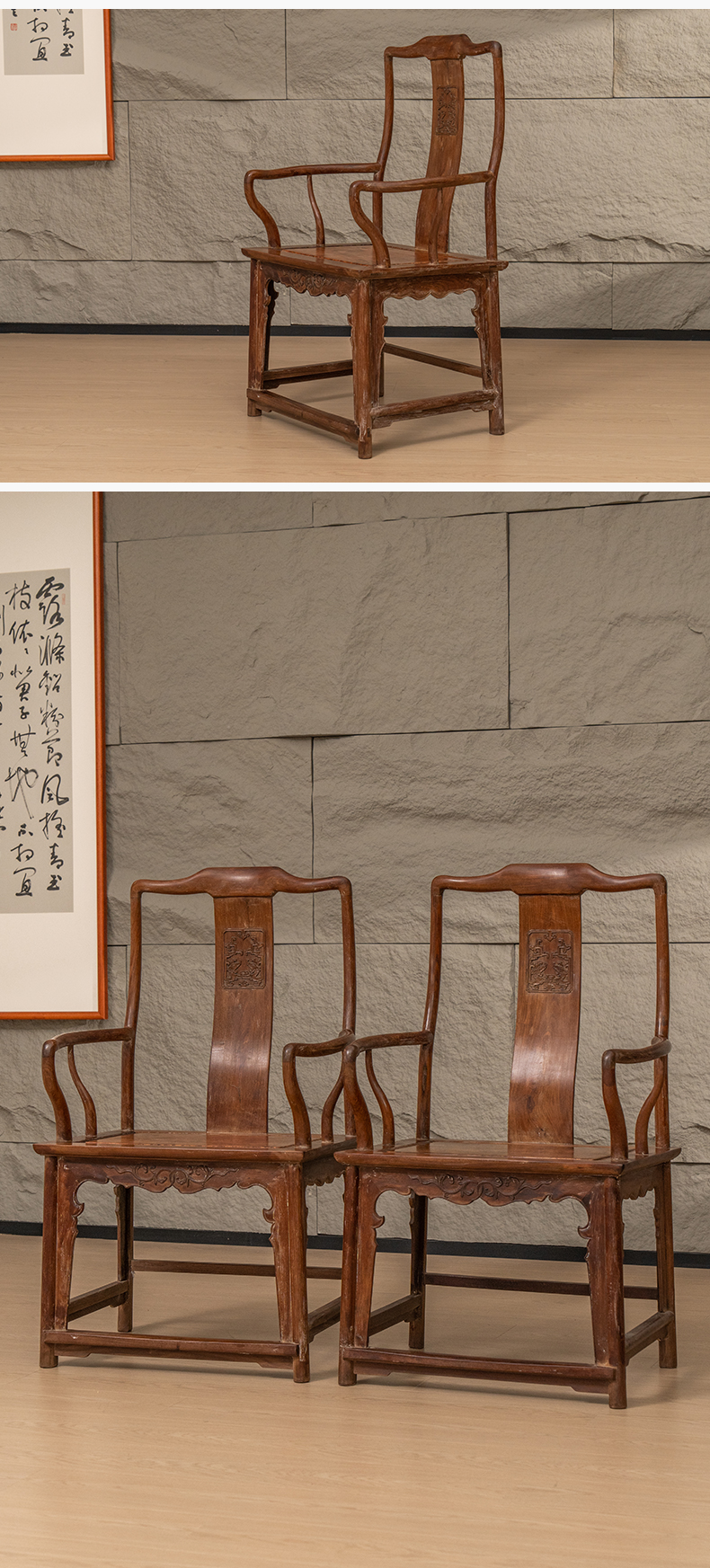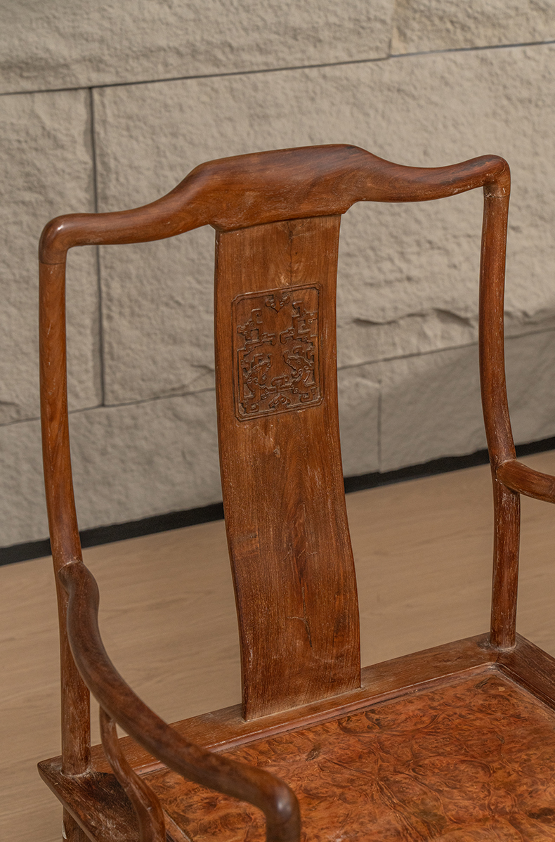清 红木镶瘿木夔龙纹南官帽椅(一对)