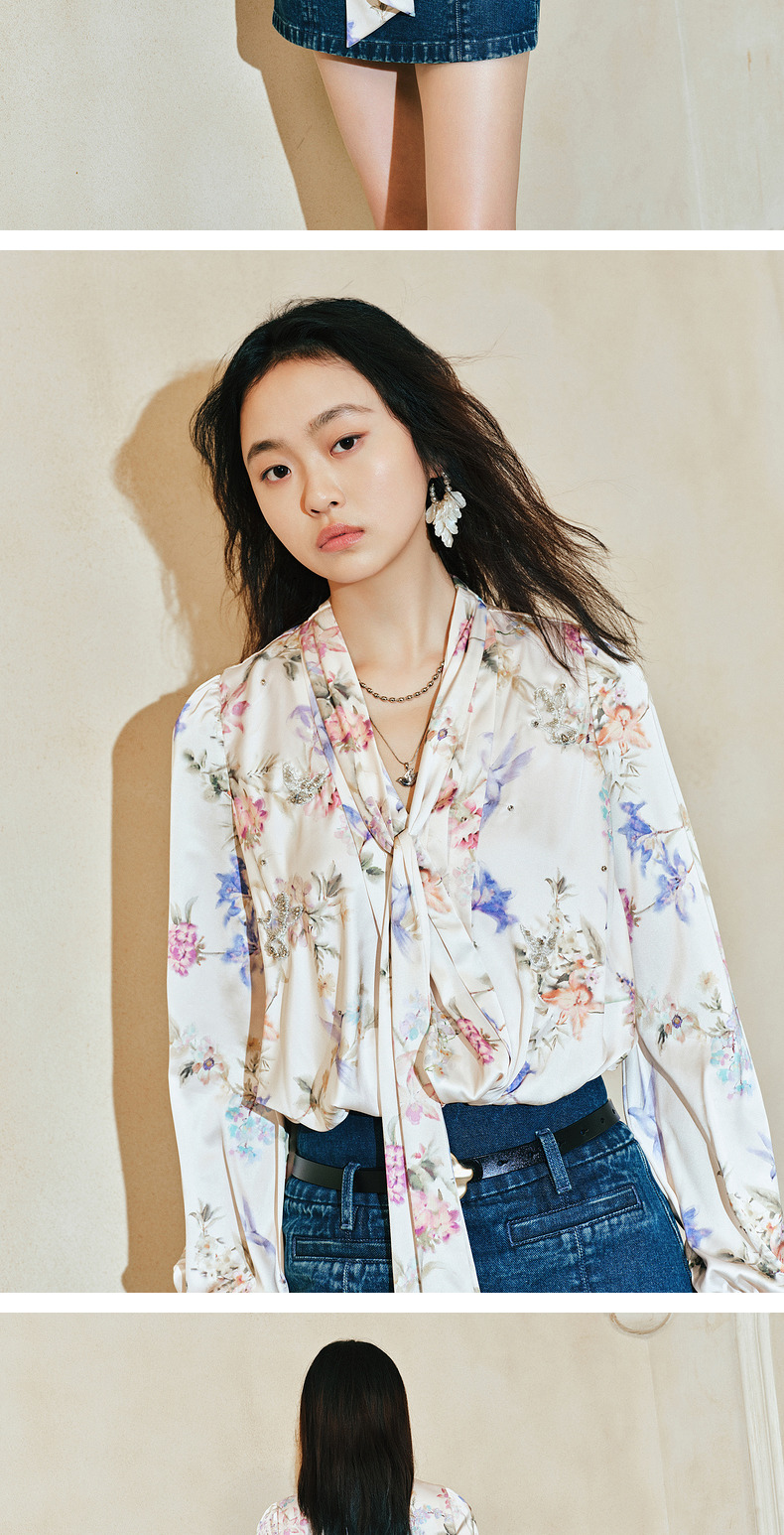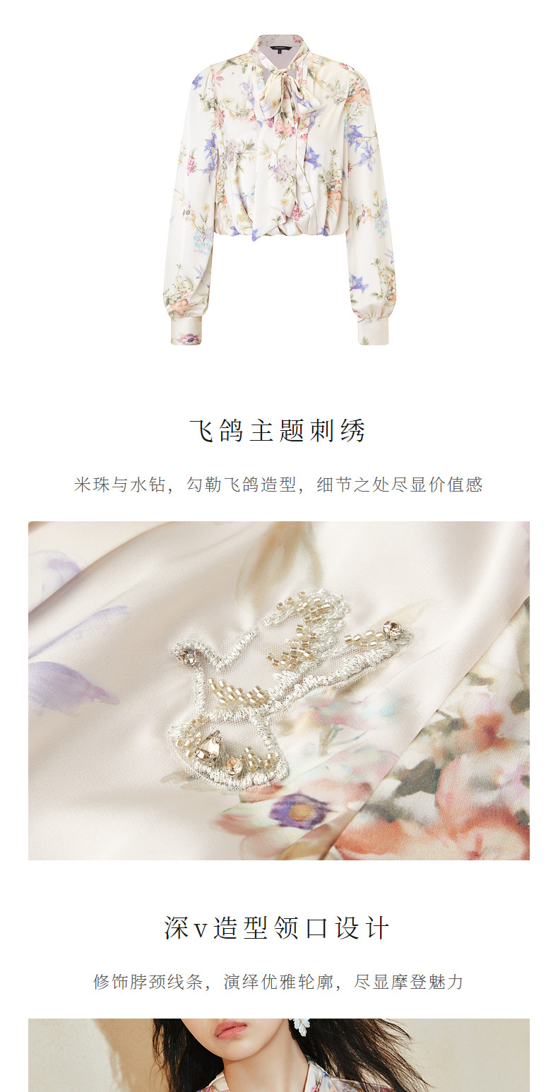 【商场同款-宫廷飞鸽】MAXRIENY复古浪漫系带云朵上衣衬衫2024春(货号:MC85TP028)