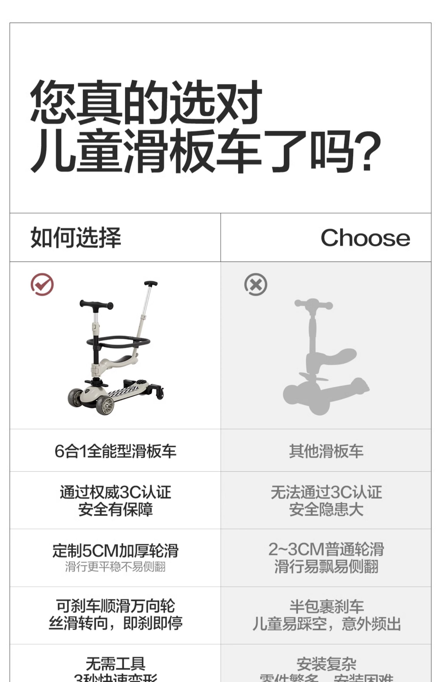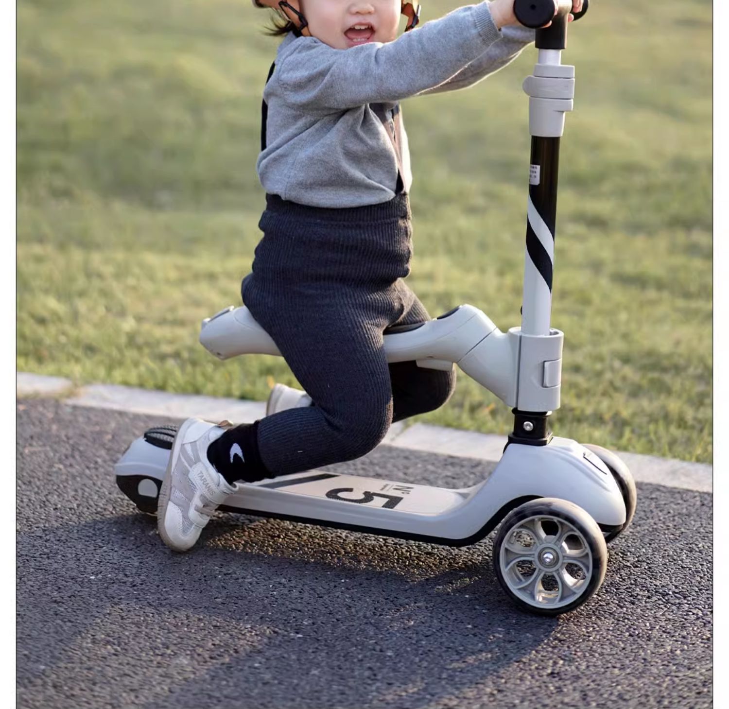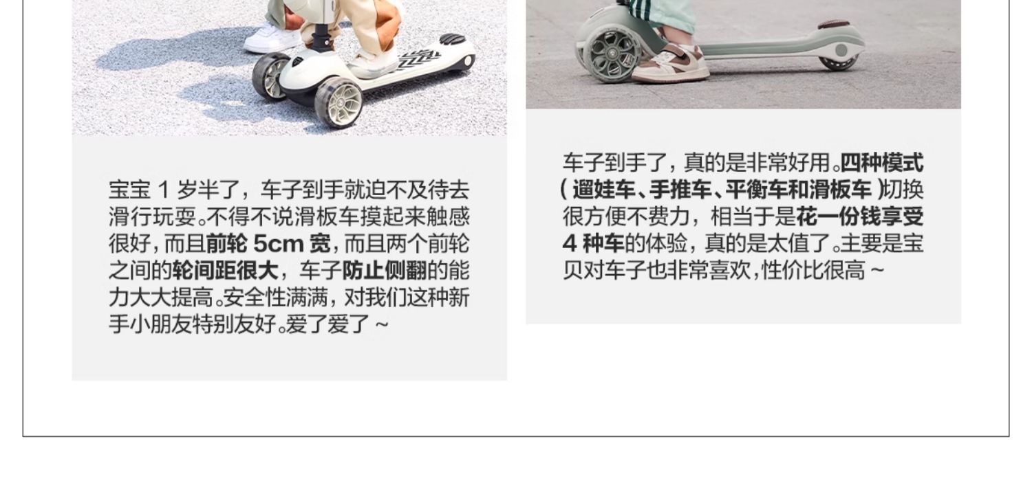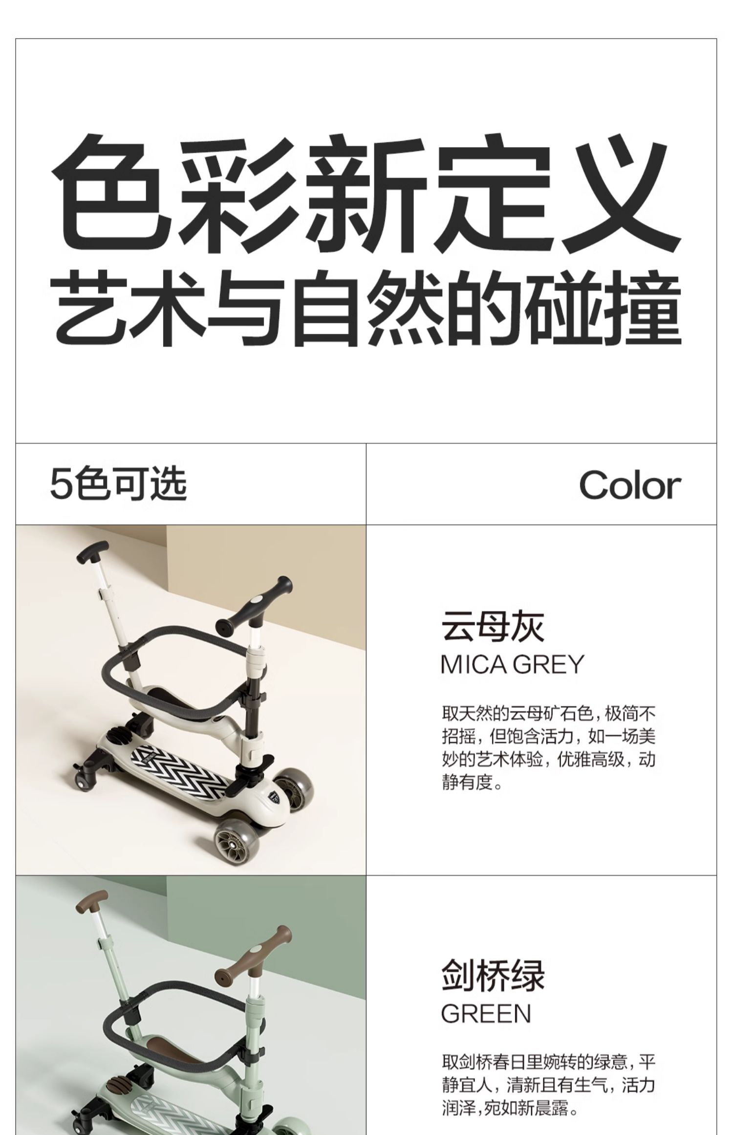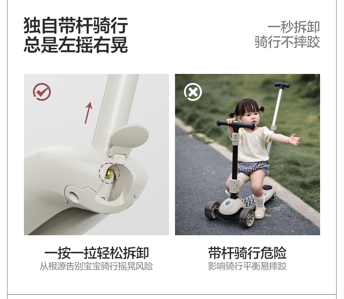 测评优品-贝易儿童滑板车1一3一6岁可坐可骑宝宝四合一溜溜车学步滑滑车平衡