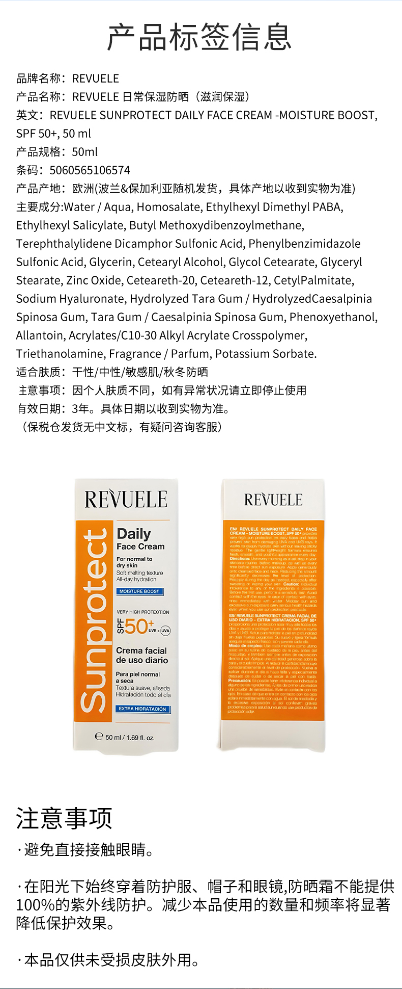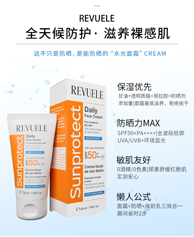 平价大牌惊喜保加利亚REVUELE日常控油保湿防晒面霜二合一妆前隔离 SPF50+