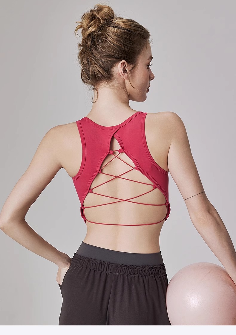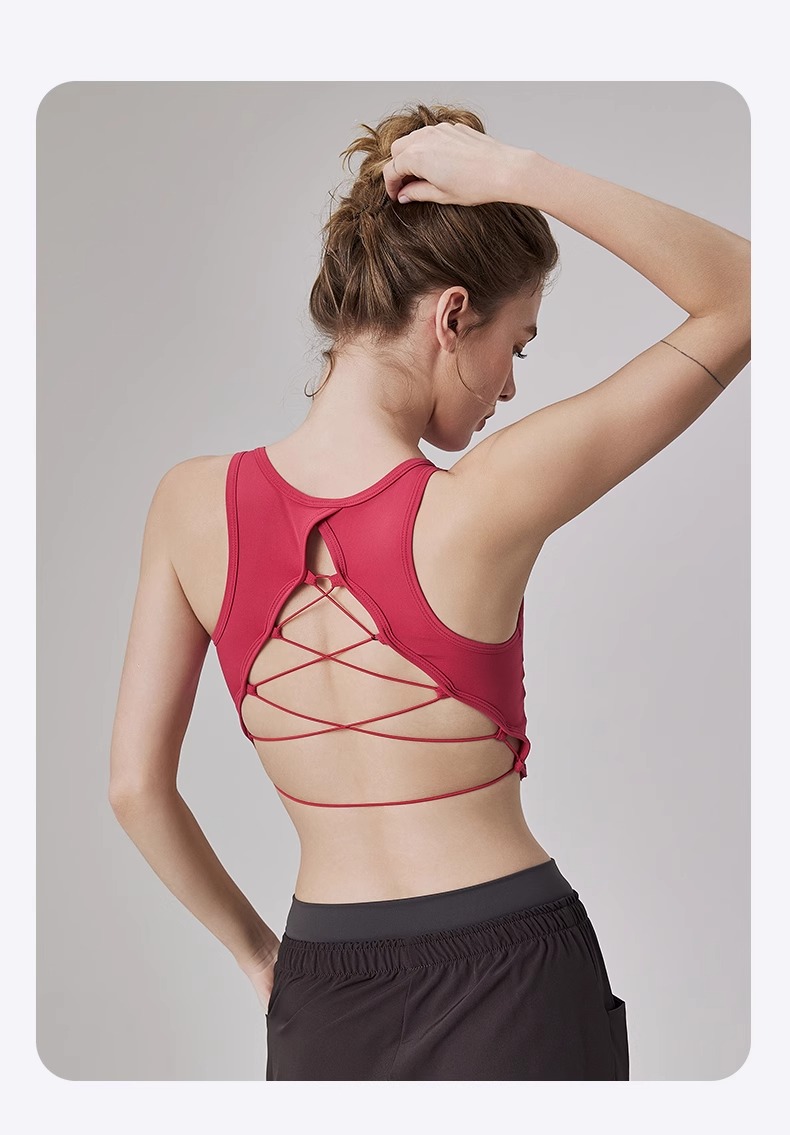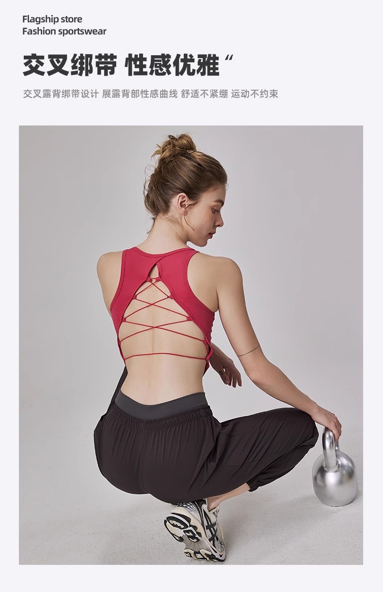 【限时秒】YOGACODE【火树银花系列】2024 瑜伽背心性感交叉露背固定杯健身上衣DSG722