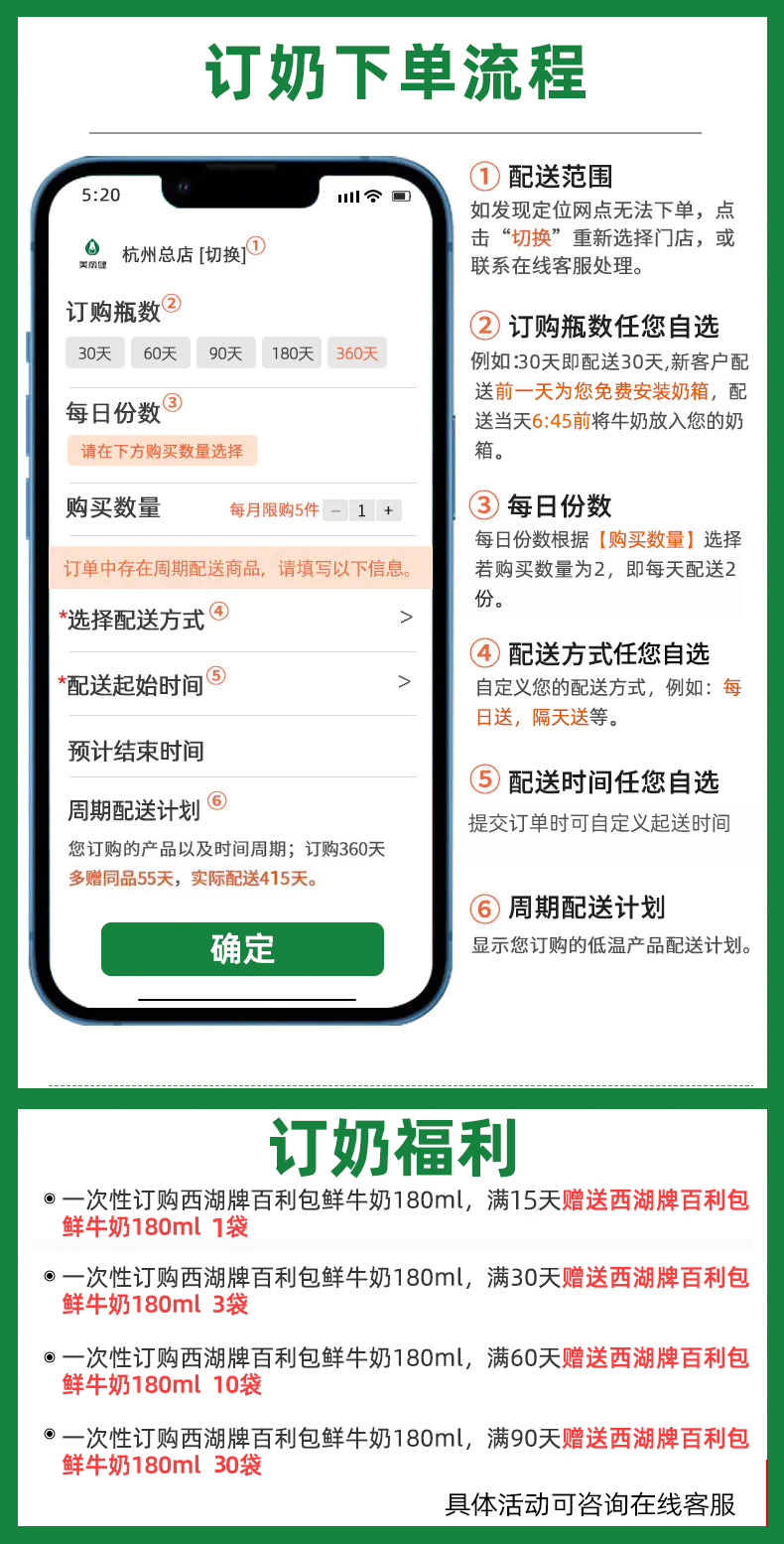 【周期购】西湖牌百利包鲜牛奶180ml(低温鲜奶,月套餐,每日配送)