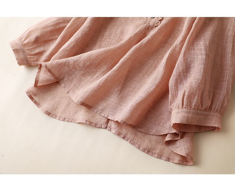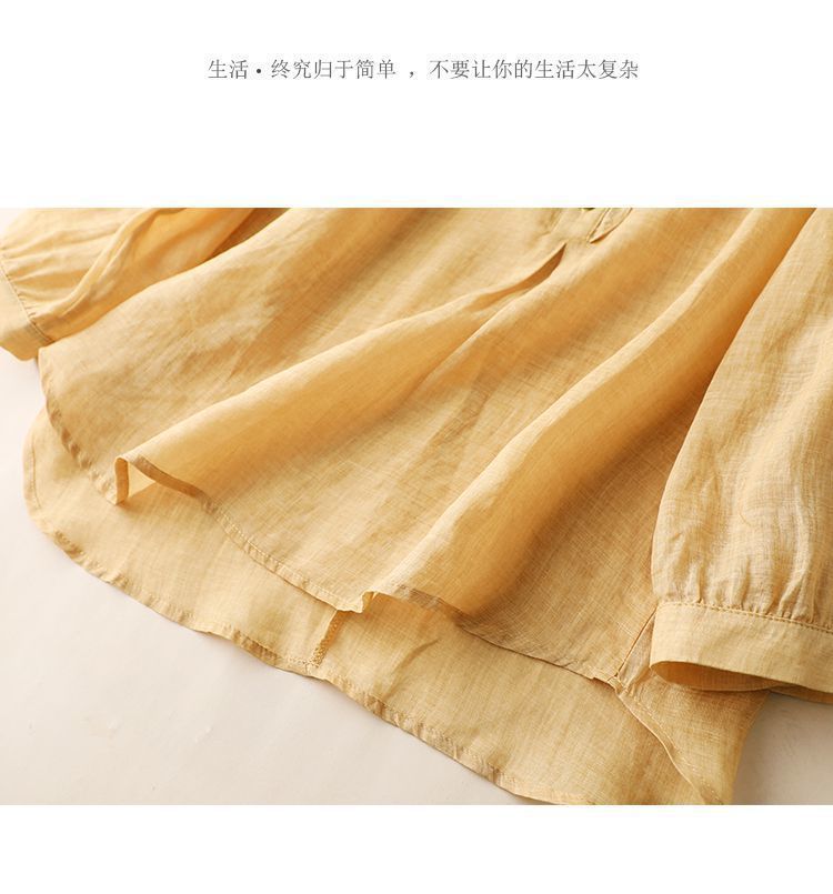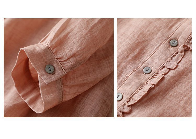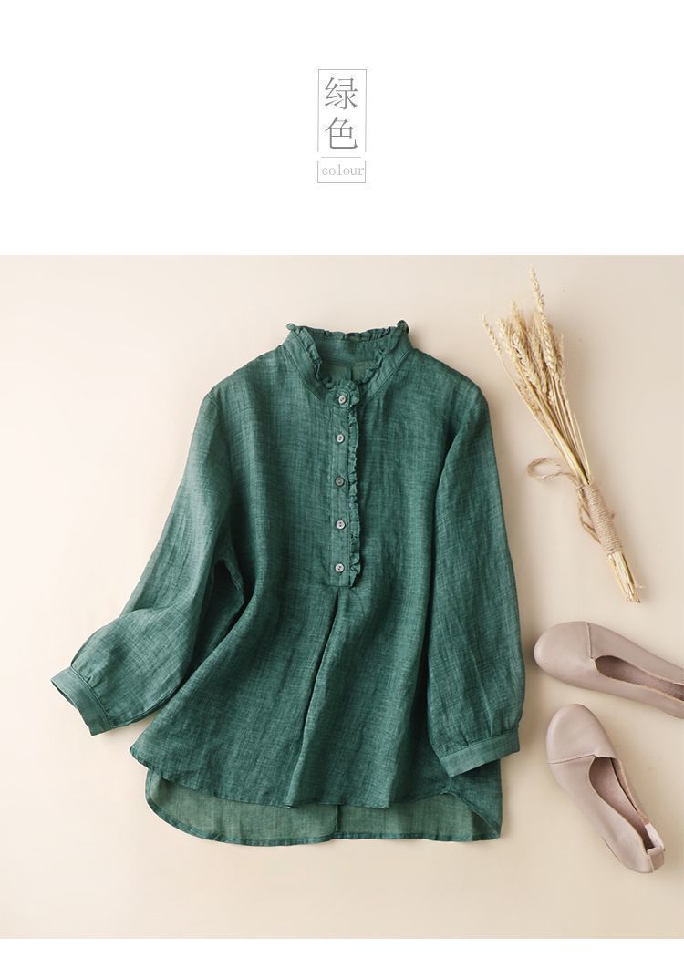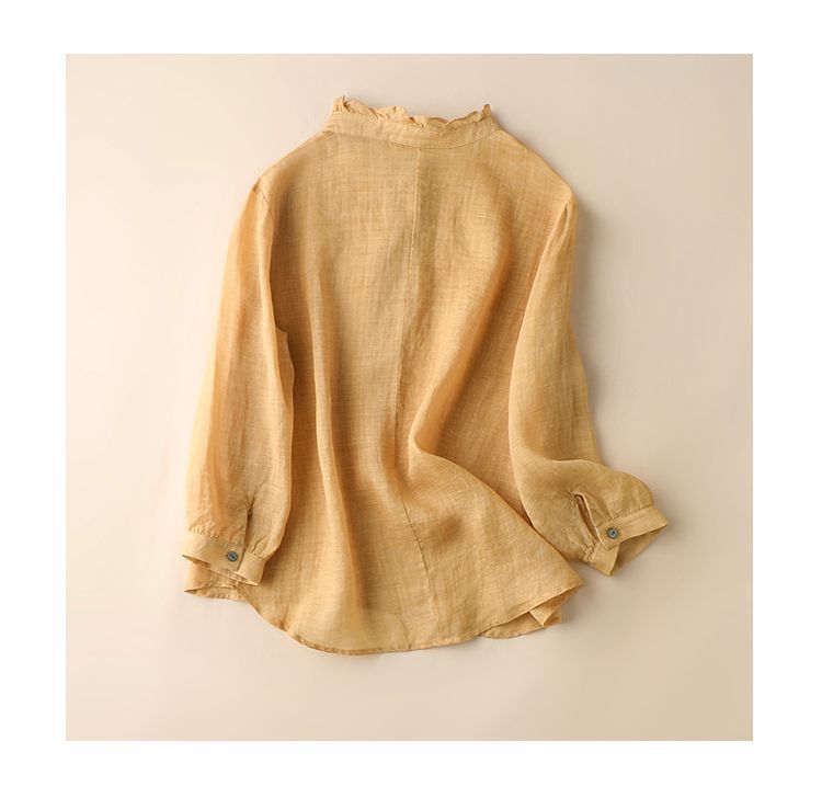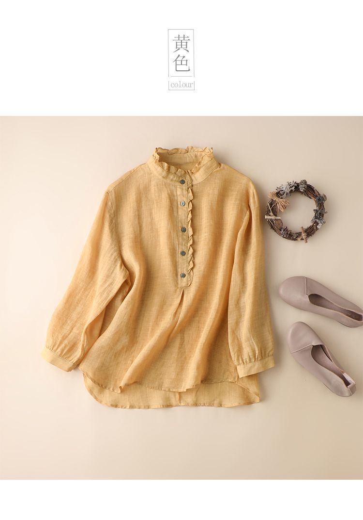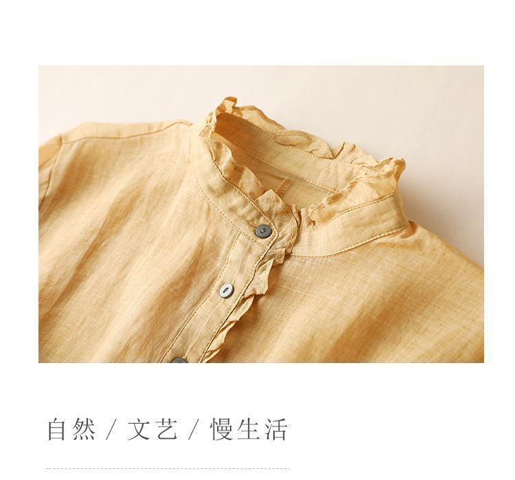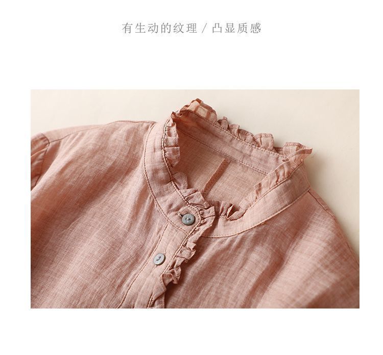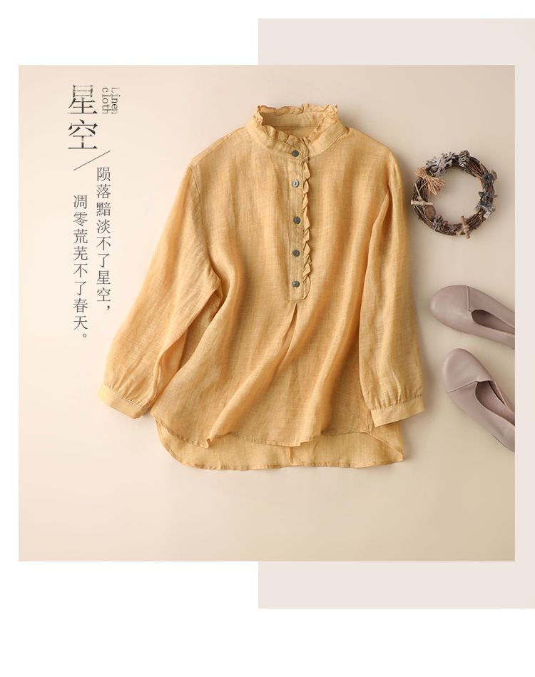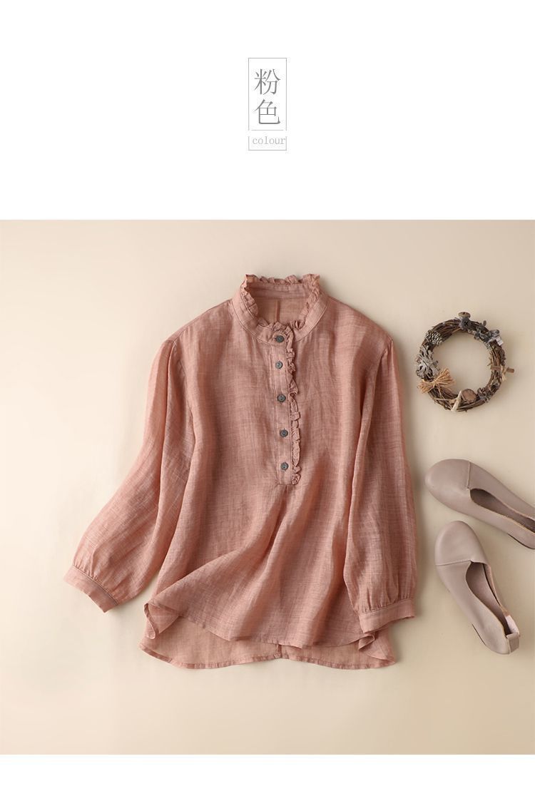 雀说【断码清仓】春季木耳边文艺半开胸长袖衬衣女小清新纯色衬衫长袖宽松上衣L8389A-WX011