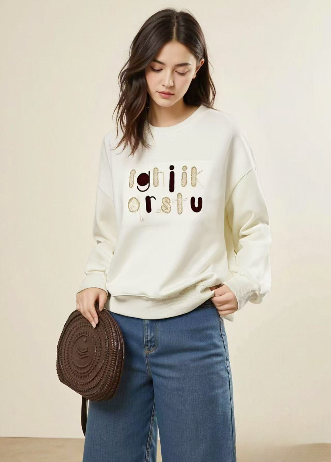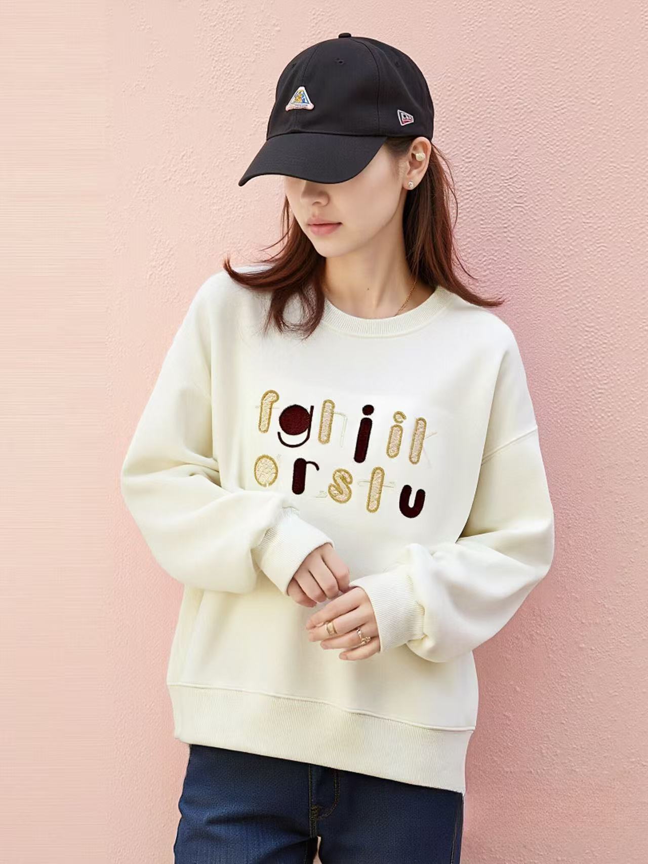 【卫衣系列】工艺系列-字母钉珠重工刺绣圆领卫衣-喜出