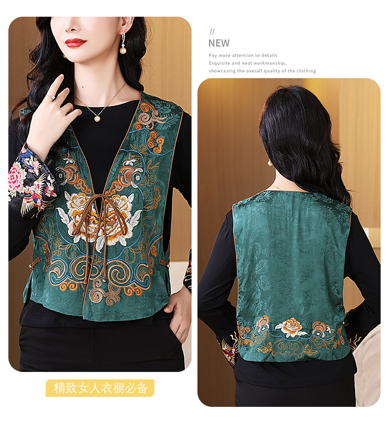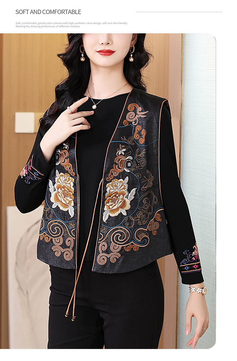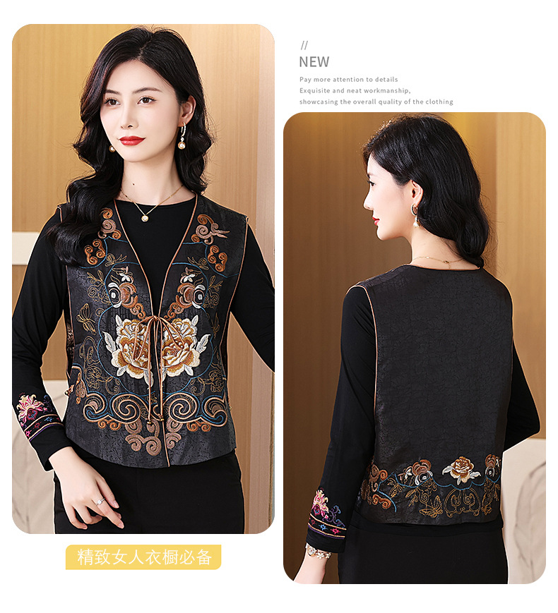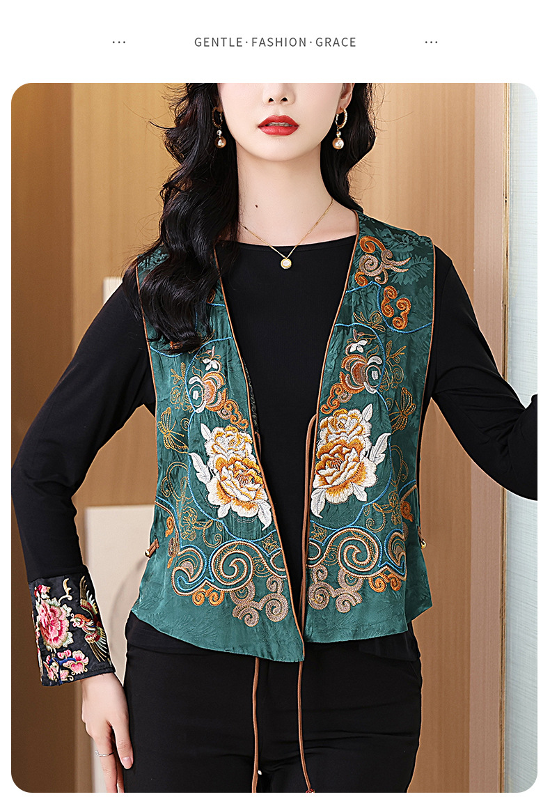 KQL 422H2863复古刺绣盘扣短外套新中式国风上衣