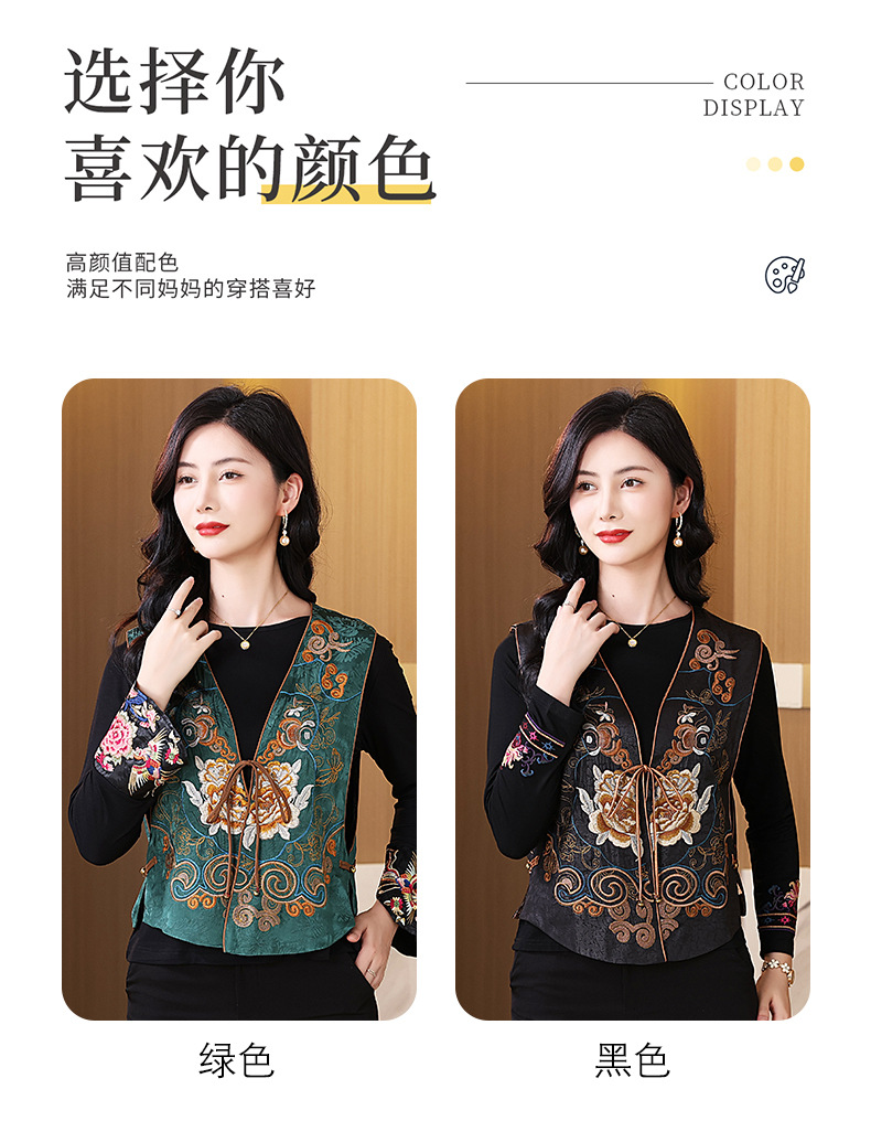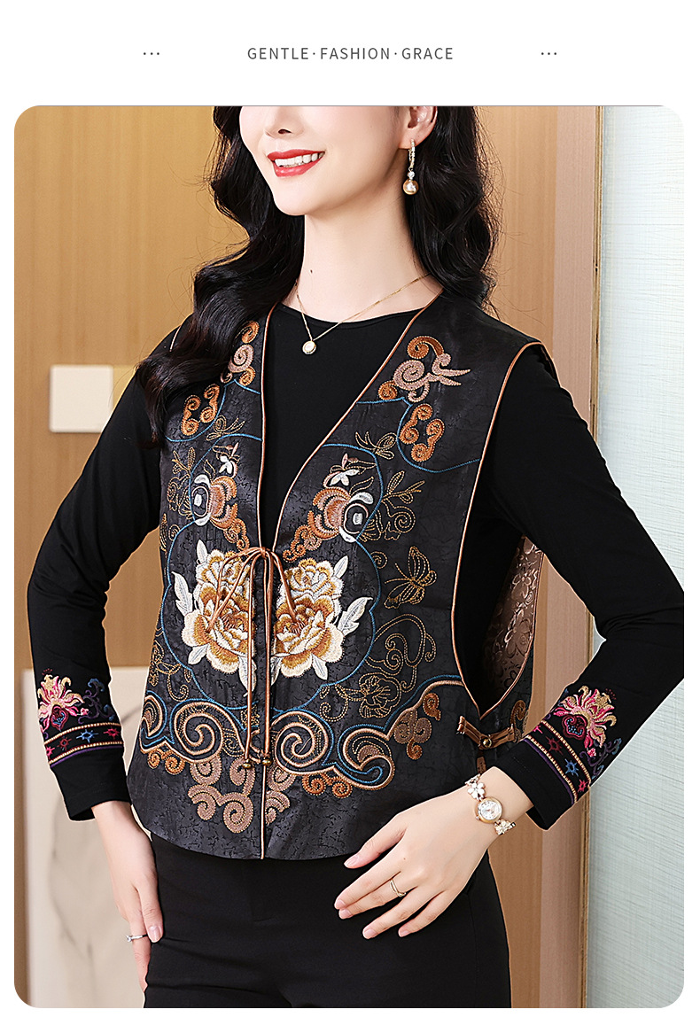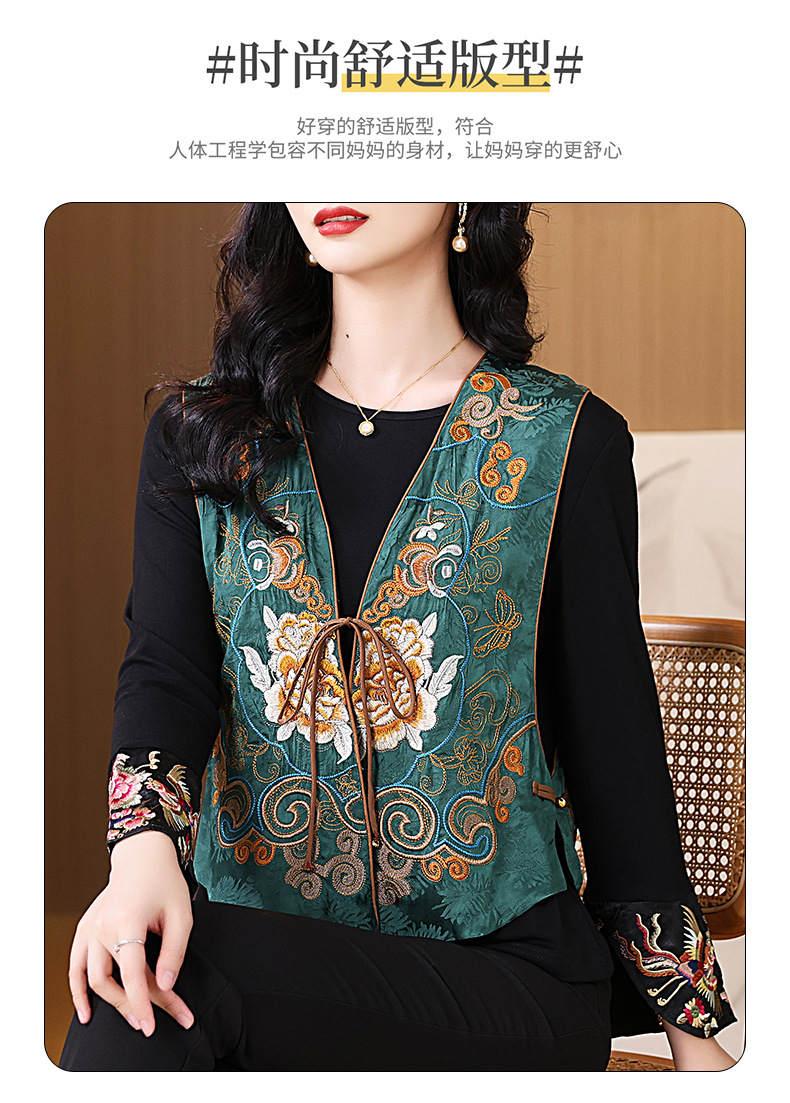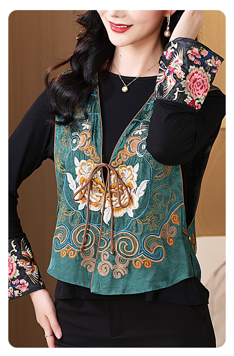 KQL 422H2863复古刺绣盘扣短外套新中式国风上衣