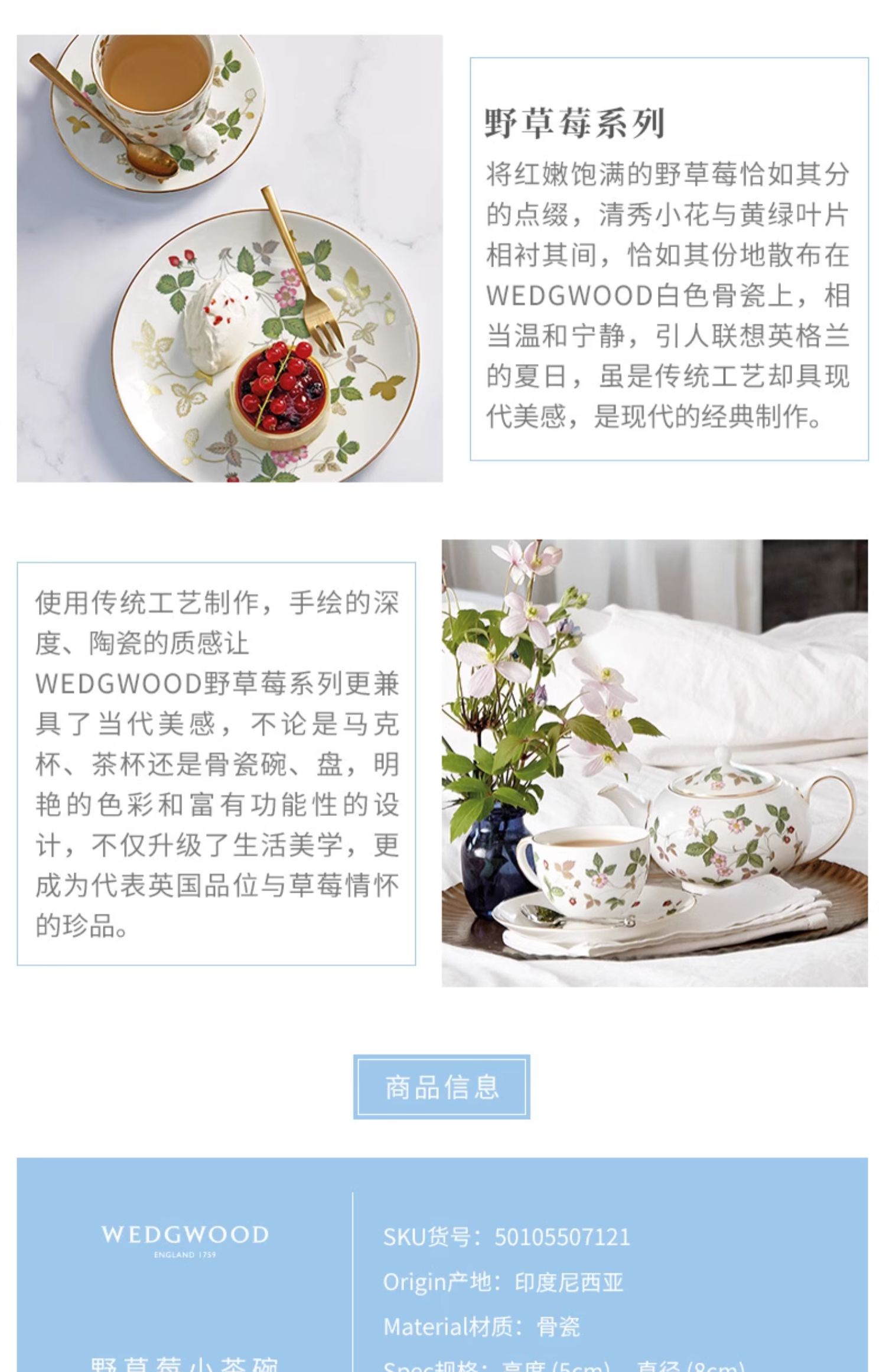 【WEDGWOOD】威基伍德 野草莓骨瓷小茶碗 饭碗汤碗碗单个欧式家用礼盒装