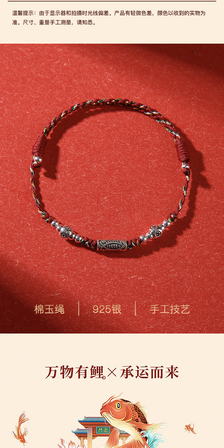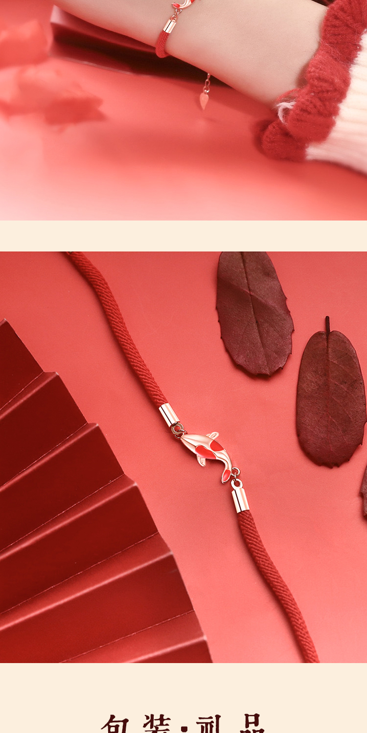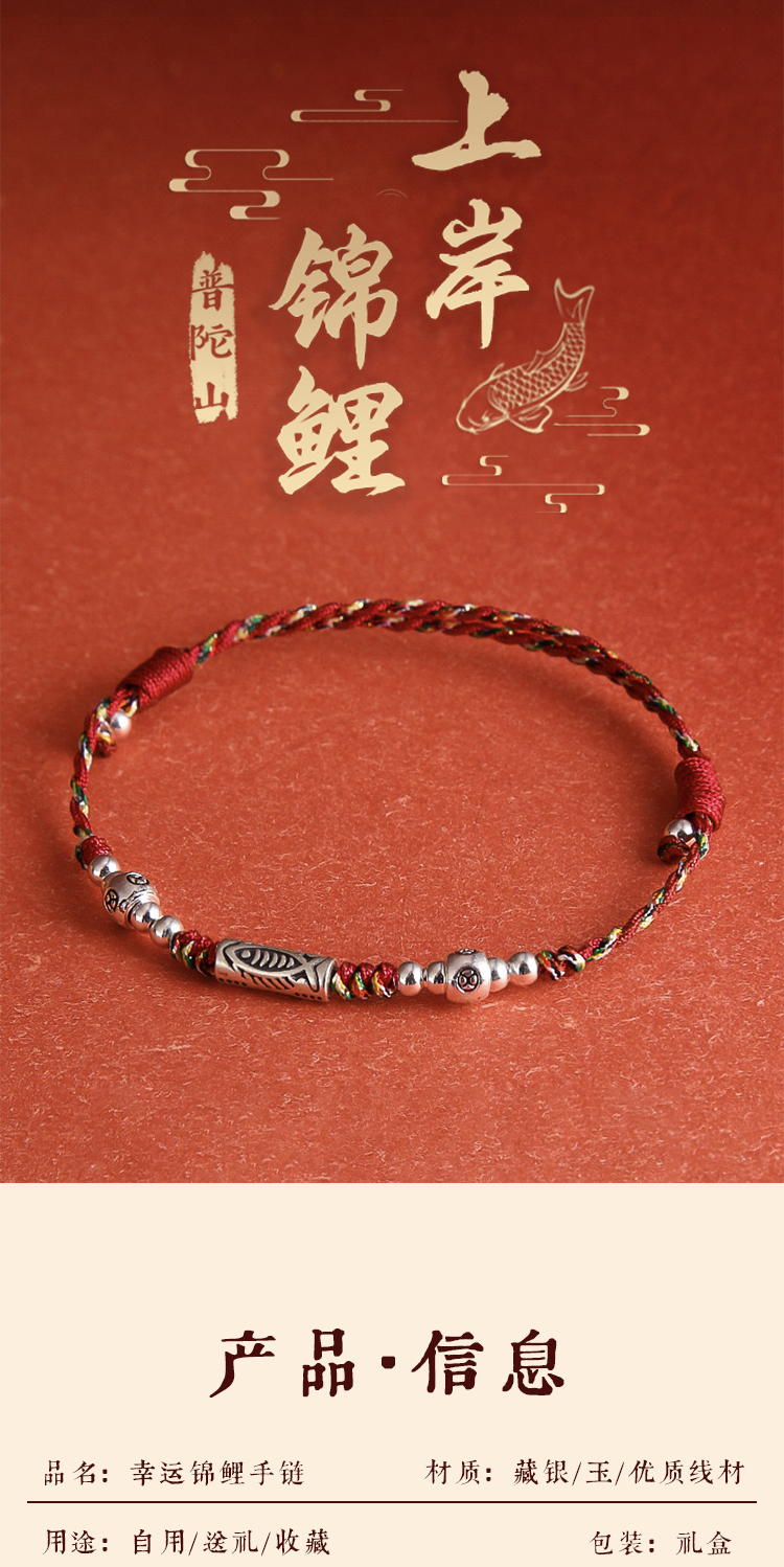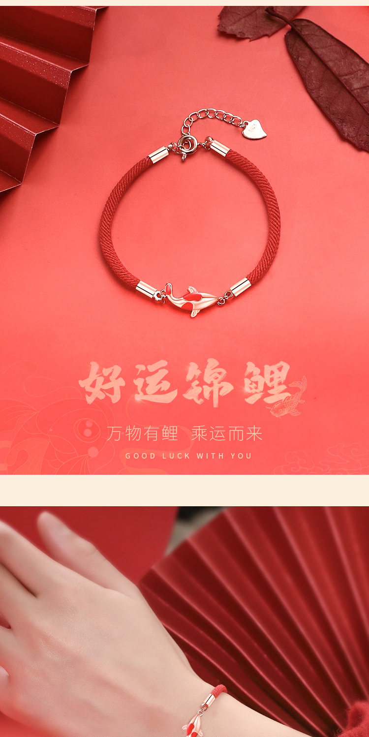 普陀山幸运锦鲤编织红绳手链手绳银制吉祥礼物