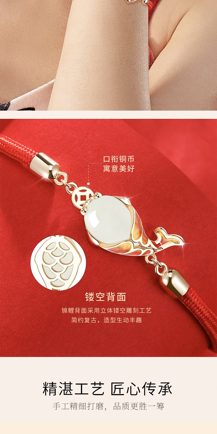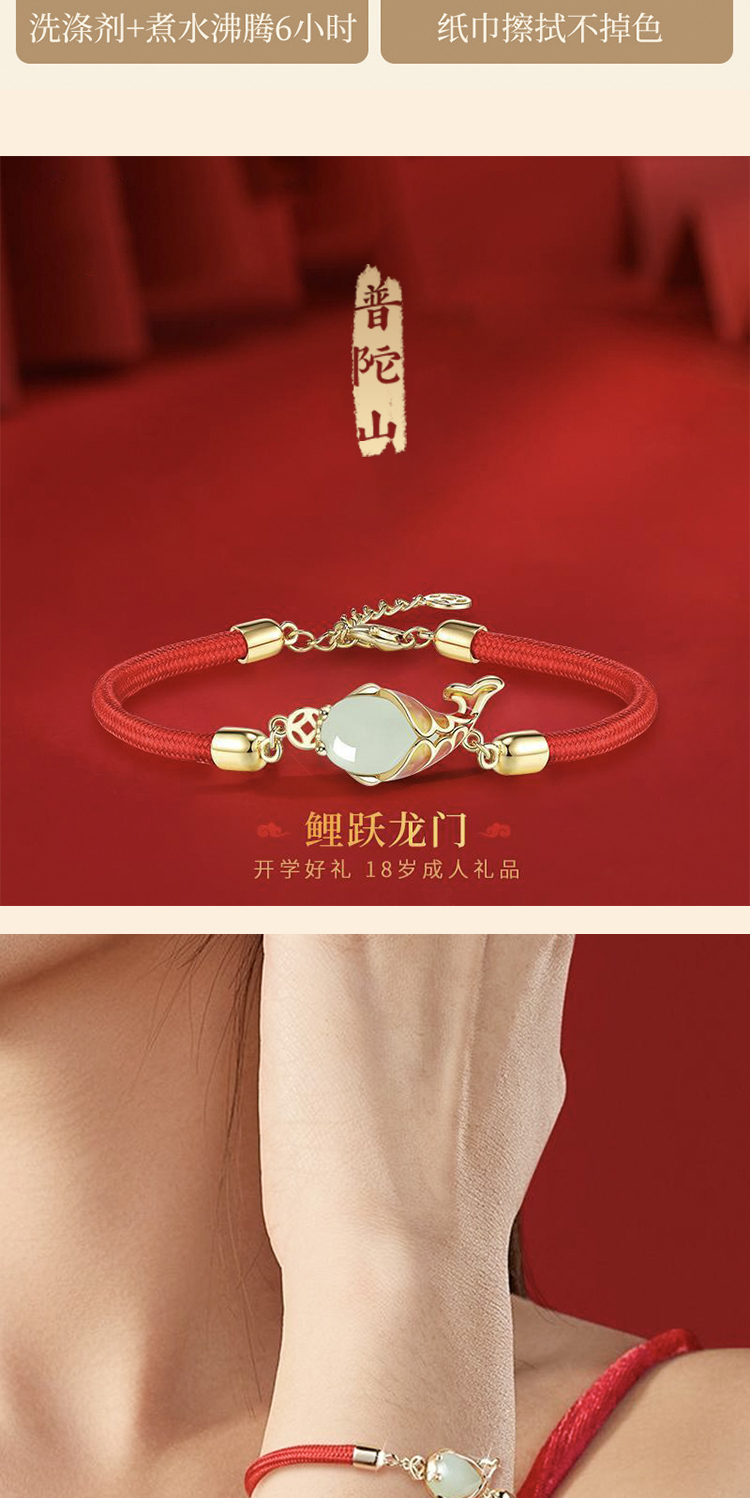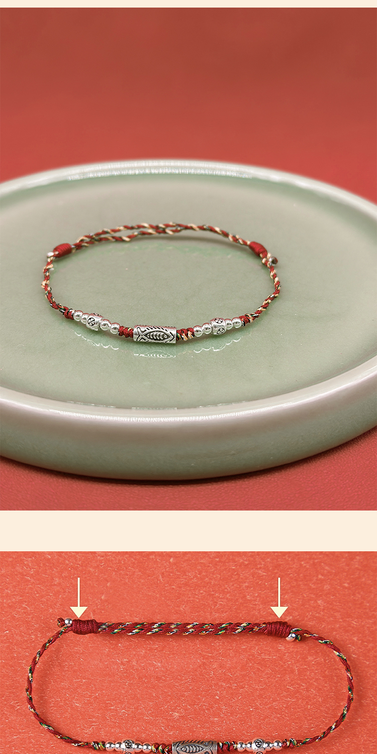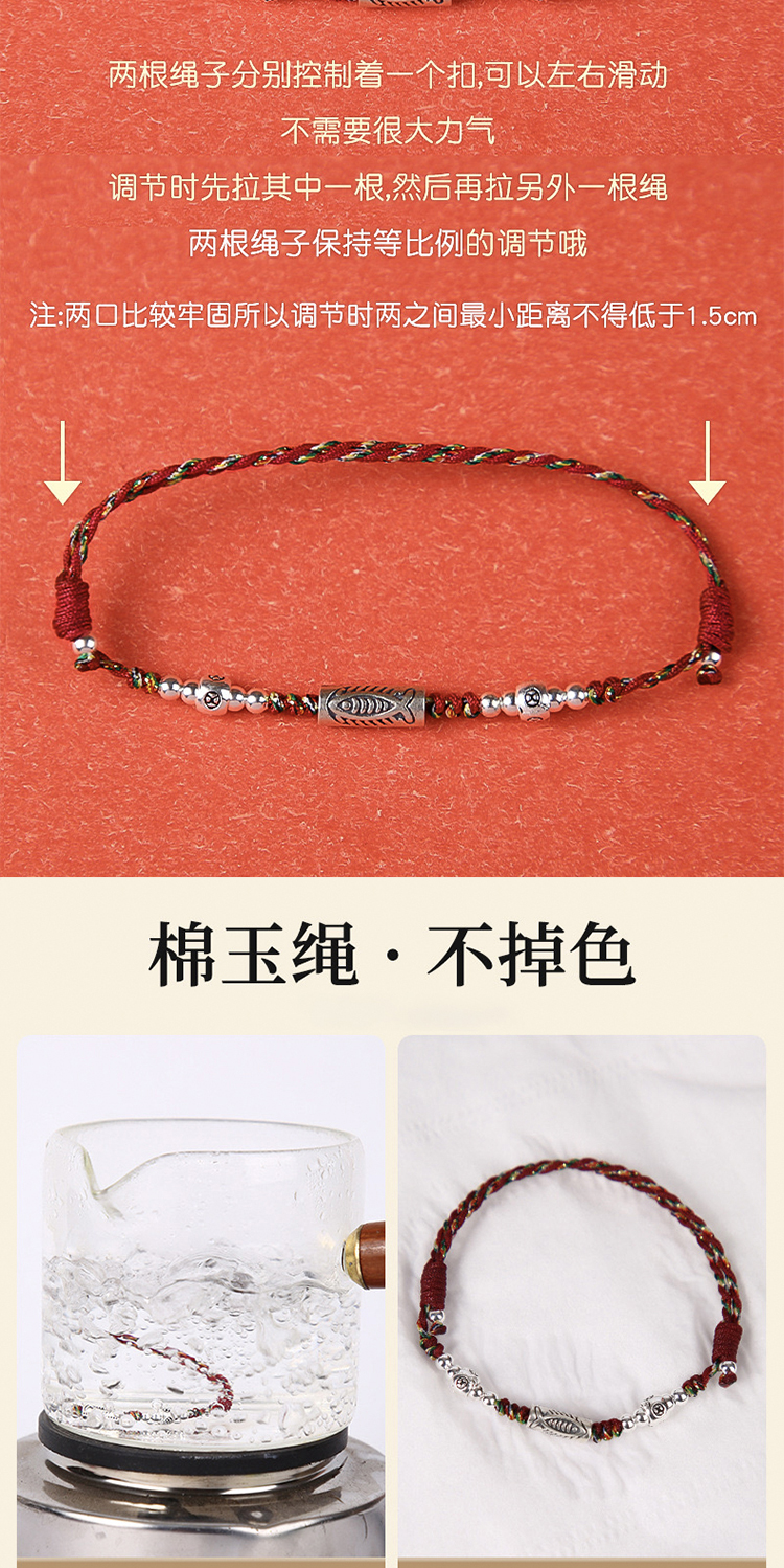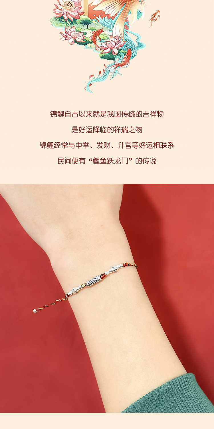 普陀山幸运锦鲤编织红绳手链手绳银制吉祥礼物