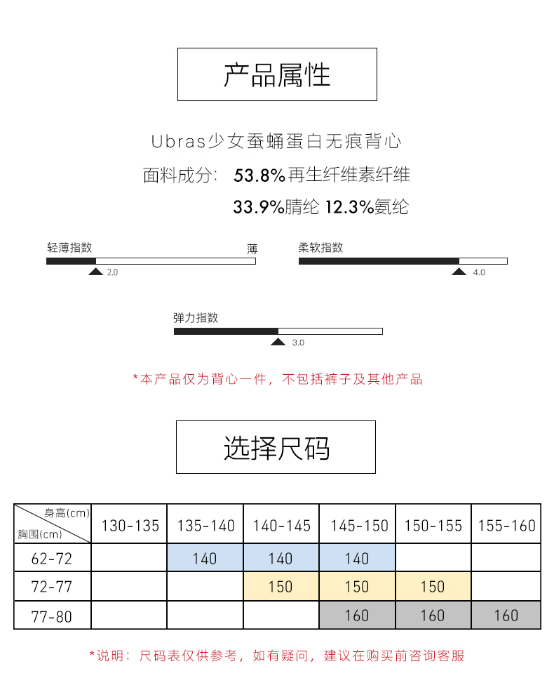 Ubras少女蚕蛹蛋白无痕背心学生内衣恒久锁温秋衣打底衫