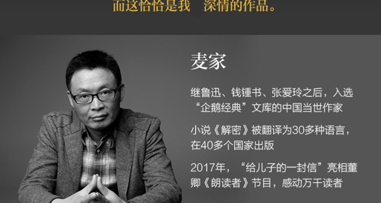 麦家颠覆了我们对中国作家的传统印象,他写作的题材和价值是世界性的。——英国·企鹅经典·书系总监Alexis