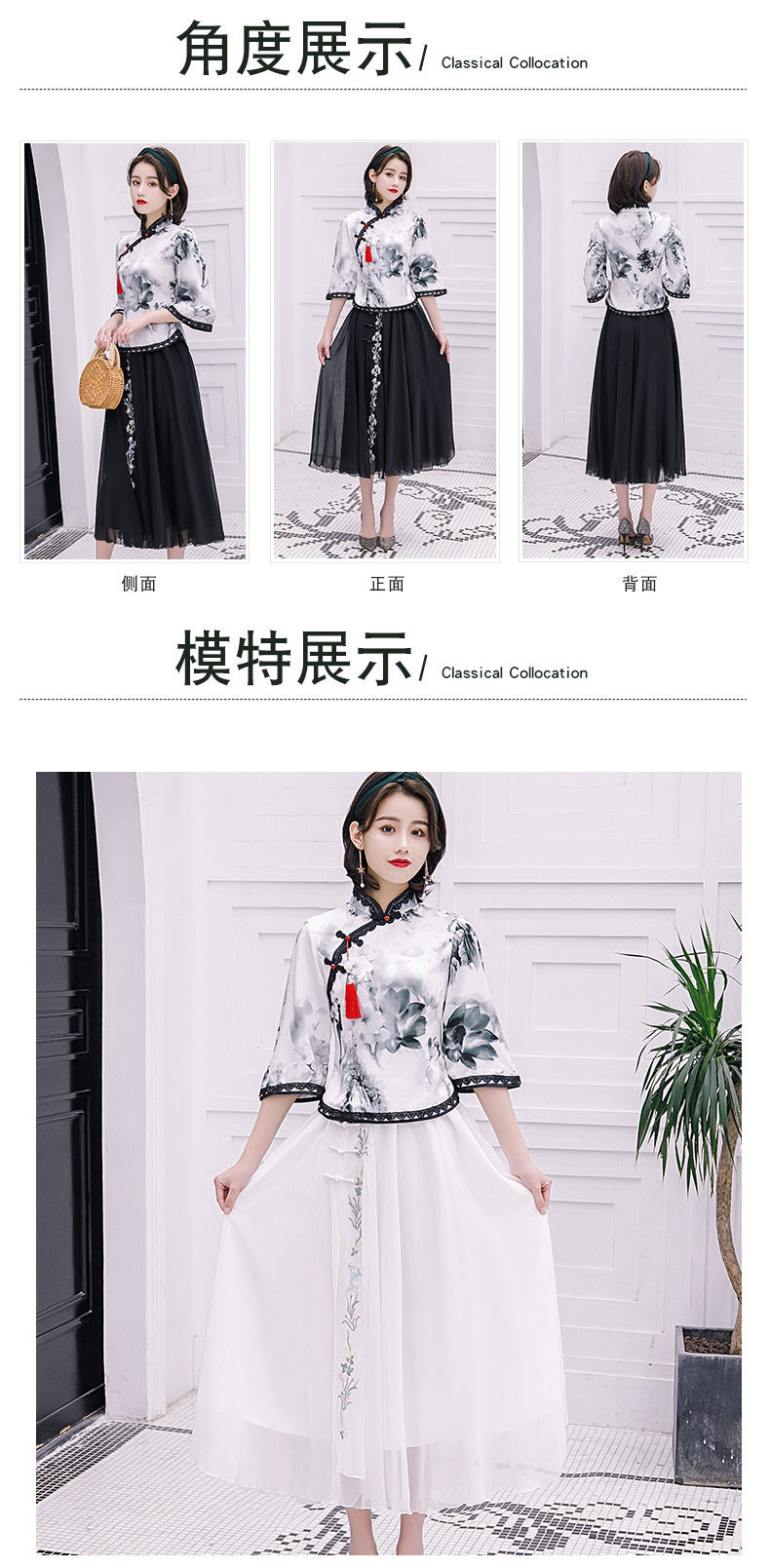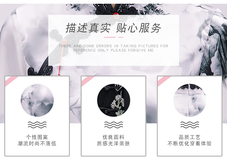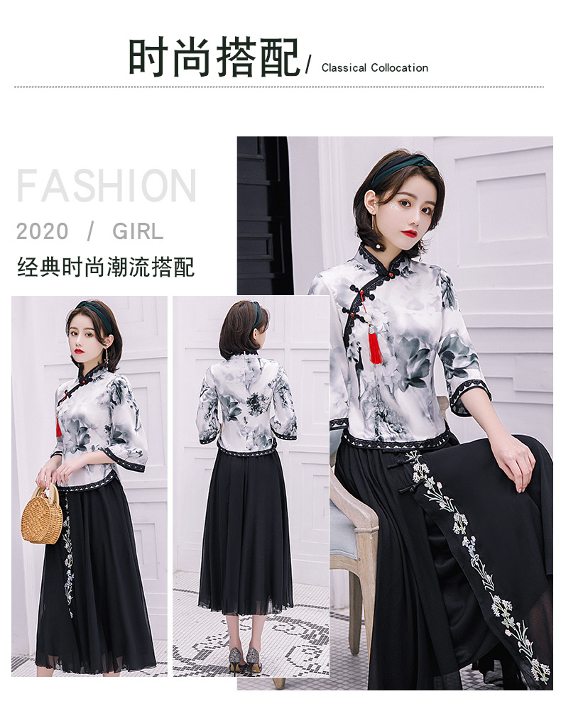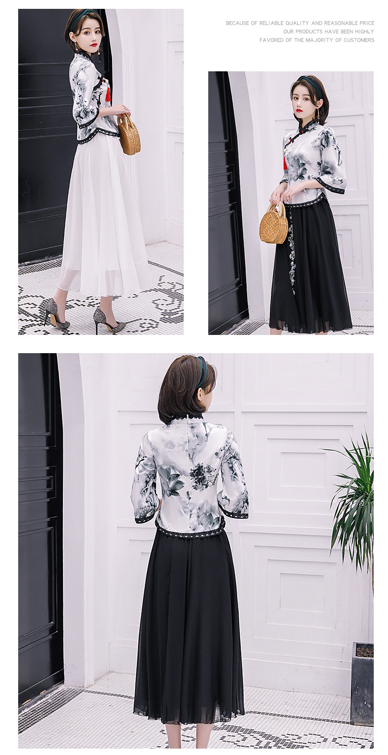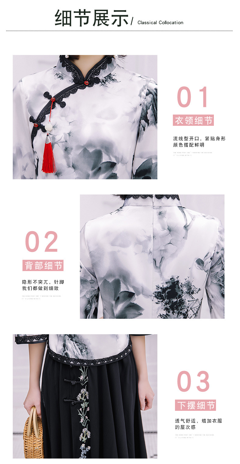 上海旗袍厂BJ-225春夏季新款纺丝长款套装旗袍 日常复古水墨纹改良旗袍连衣裙