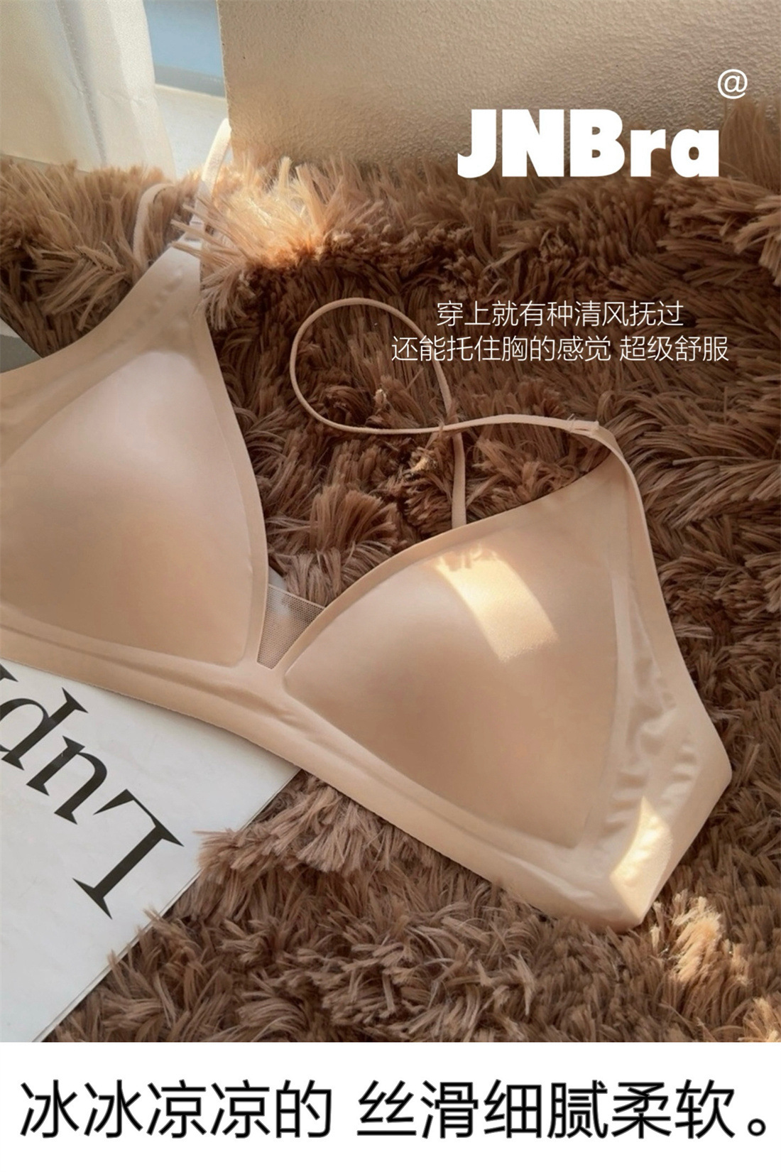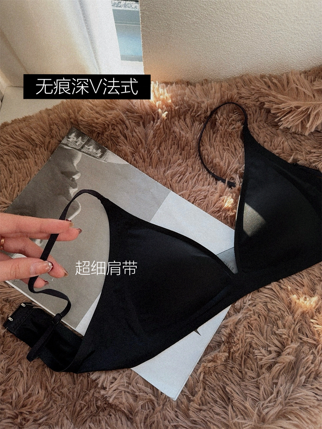 雀说法式油光绸缎无痕小胸内衣女深V领细肩带薄款无钢圈文胸罩AL 商品图0
