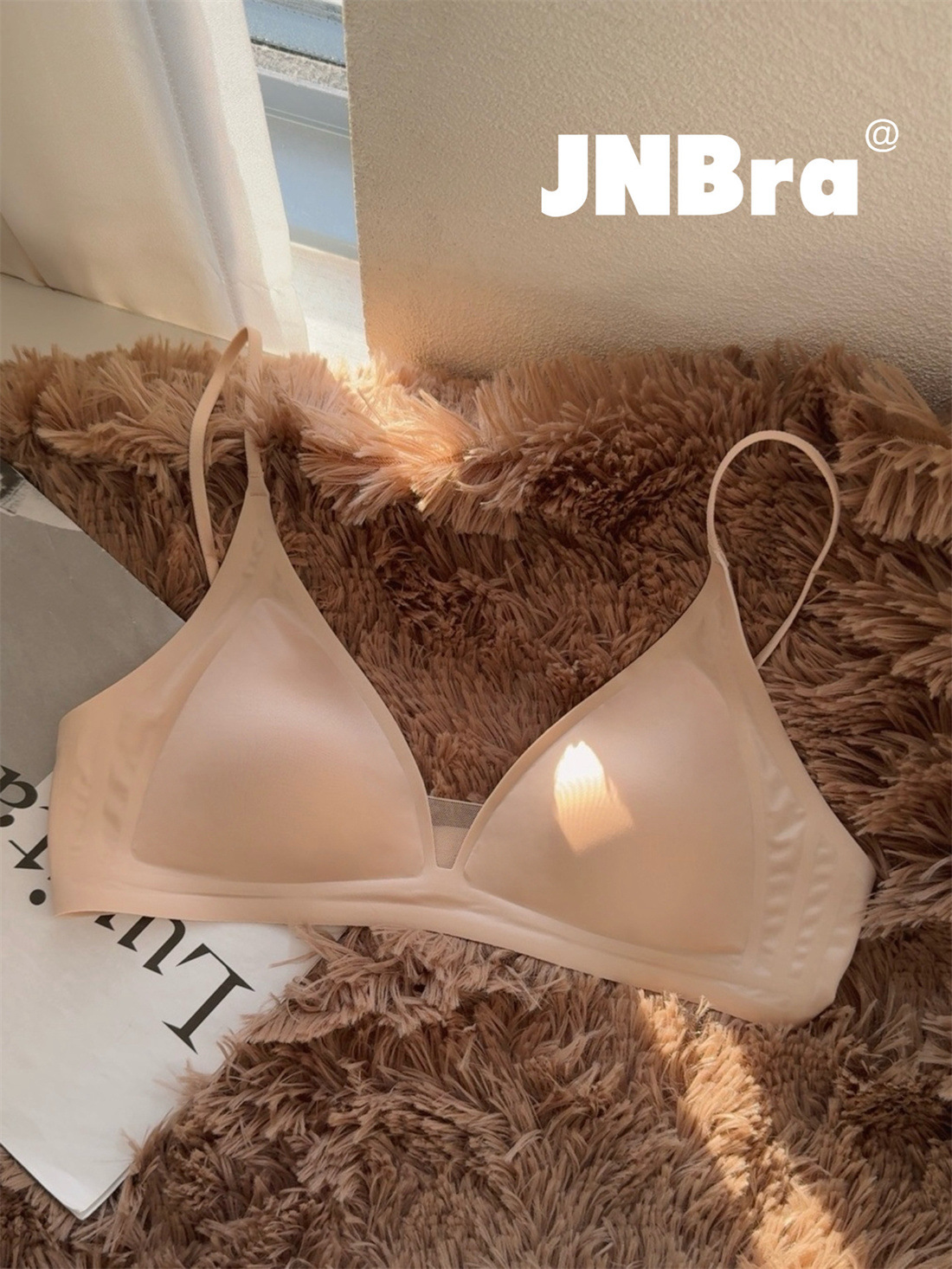 雀说法式油光绸缎无痕小胸内衣女深V领细肩带薄款无钢圈文胸罩AL