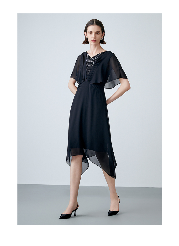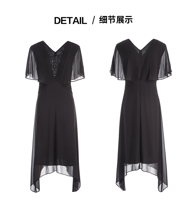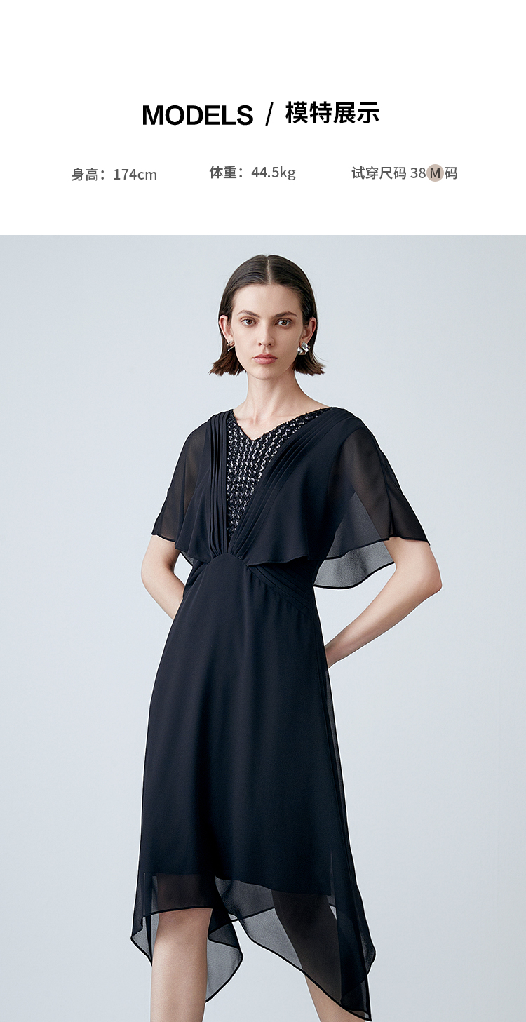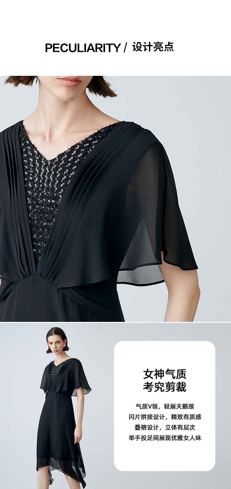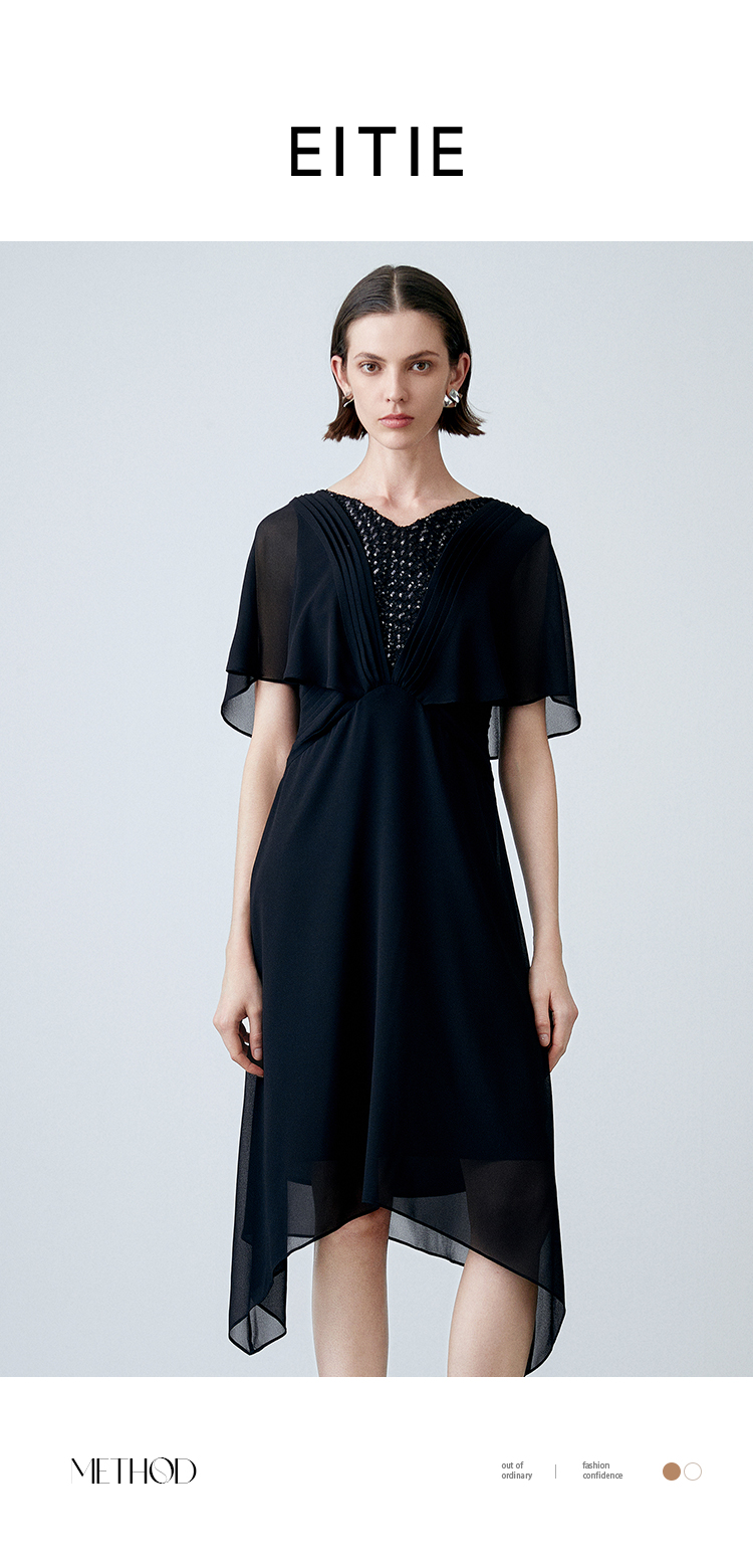 EITIE爱特爱夏新款时尚优雅飘逸高腰显瘦不规则连衣裙7807573