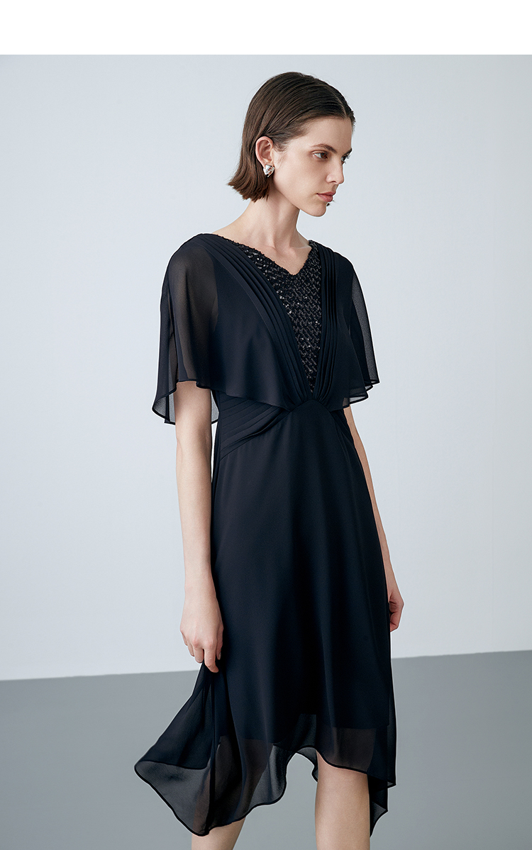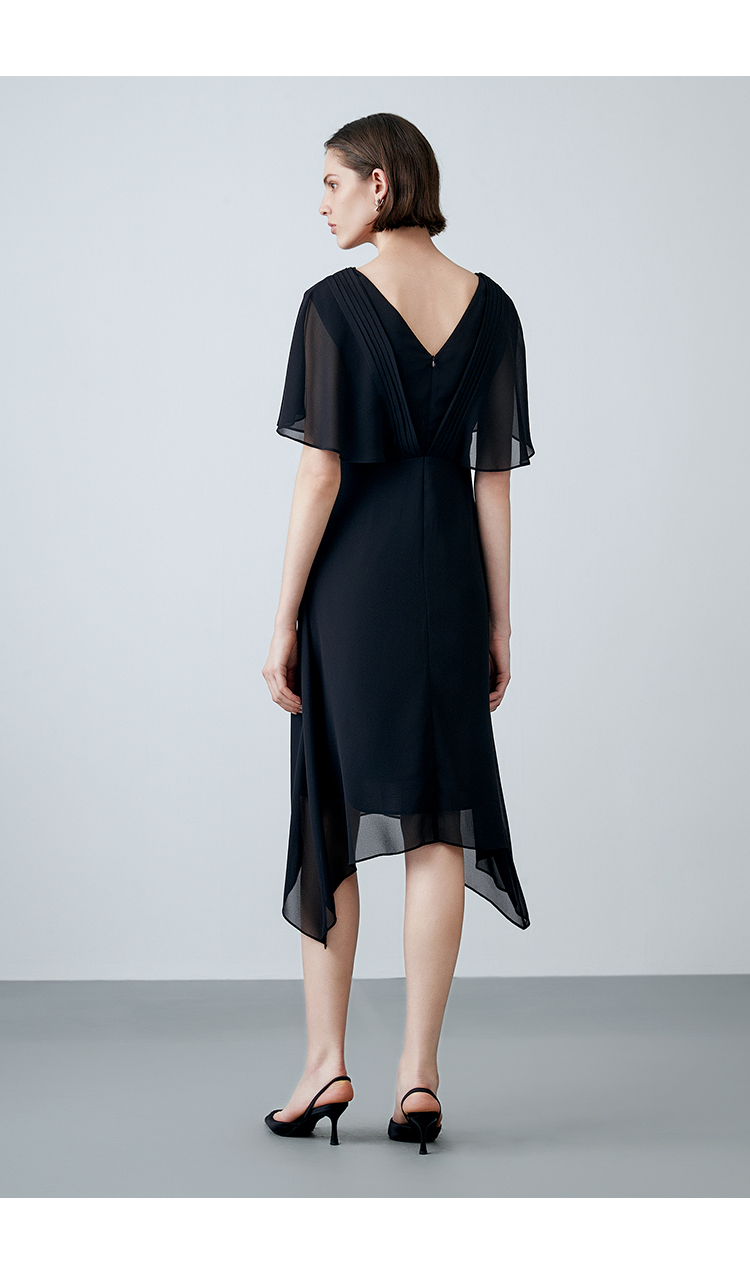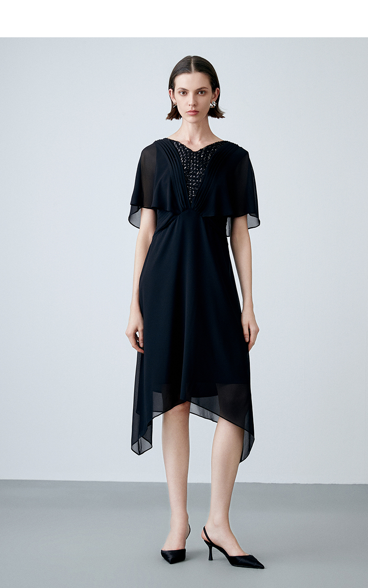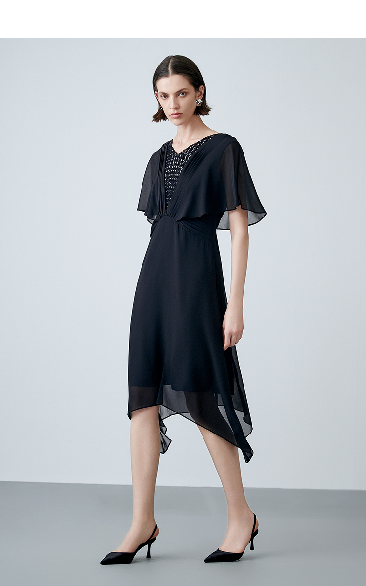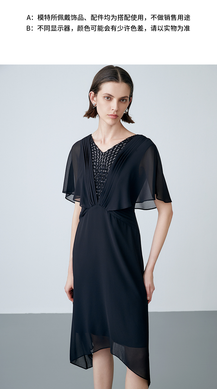 EITIE爱特爱夏新款时尚优雅飘逸高腰显瘦不规则连衣裙7807573