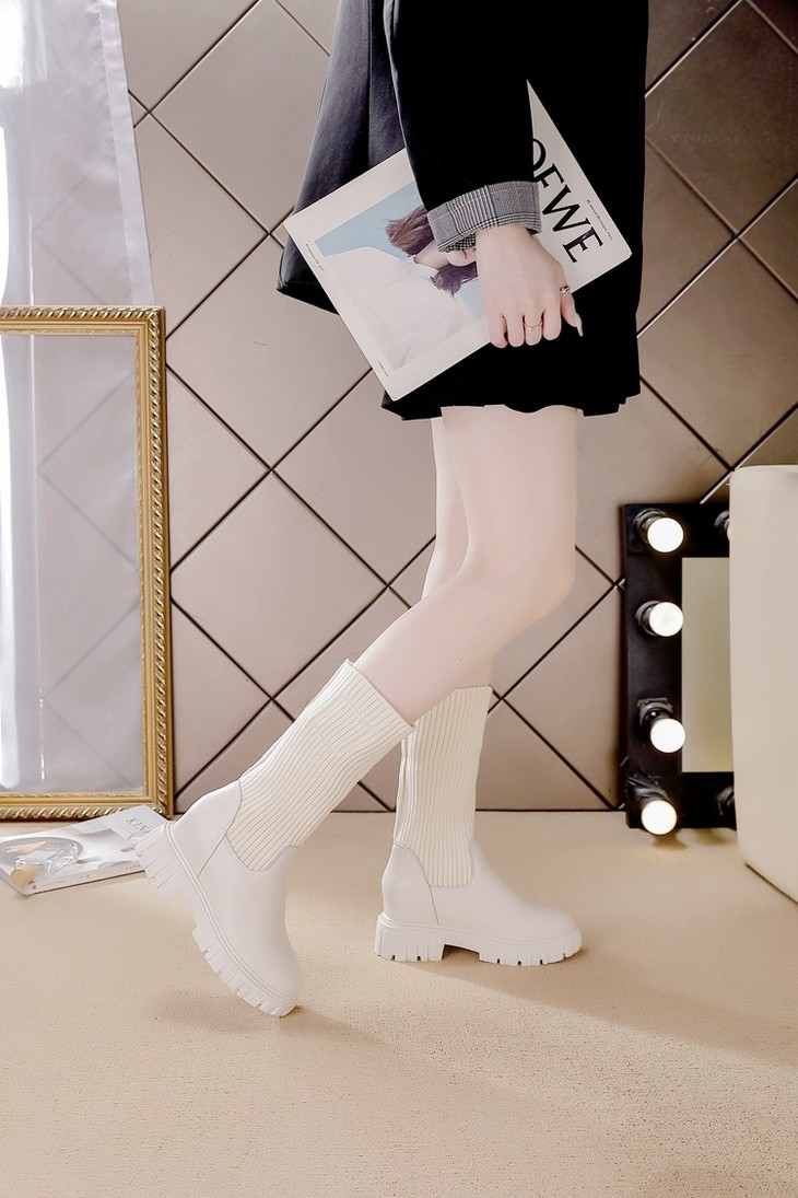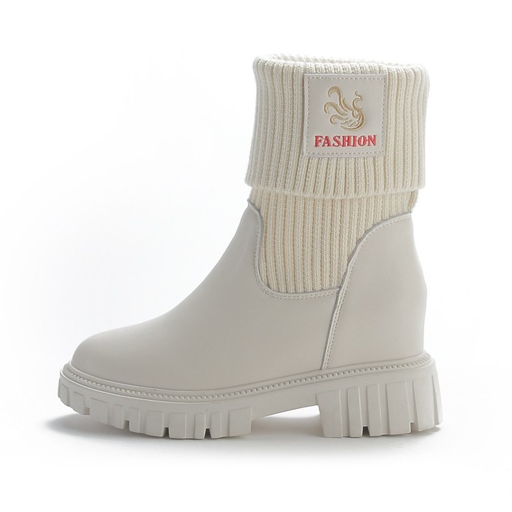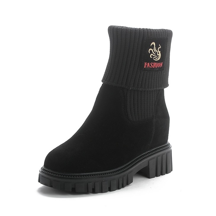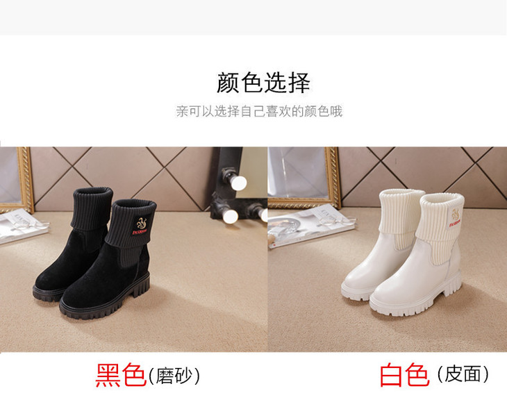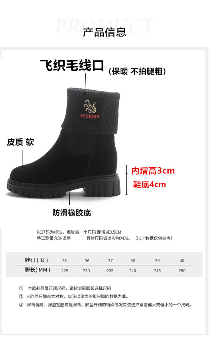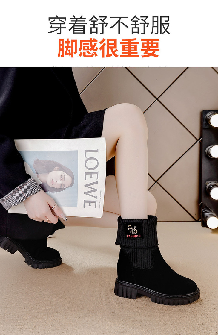 新款真皮内增高中筒靴,厚底坡跟雪地靴一脚蹬袜子靴LM23088
