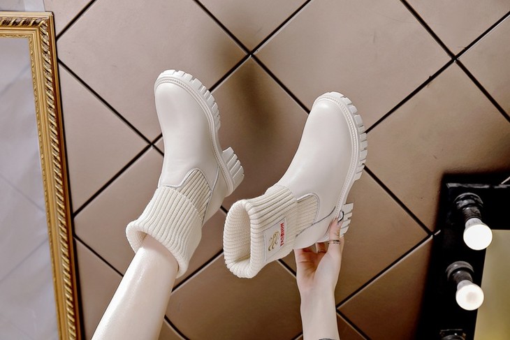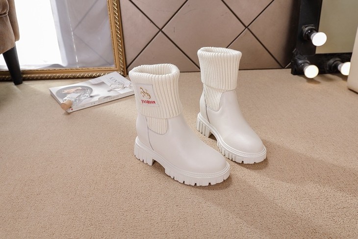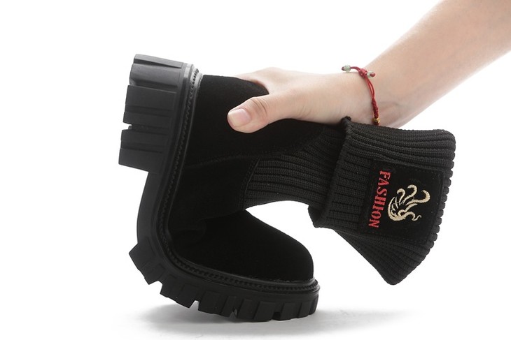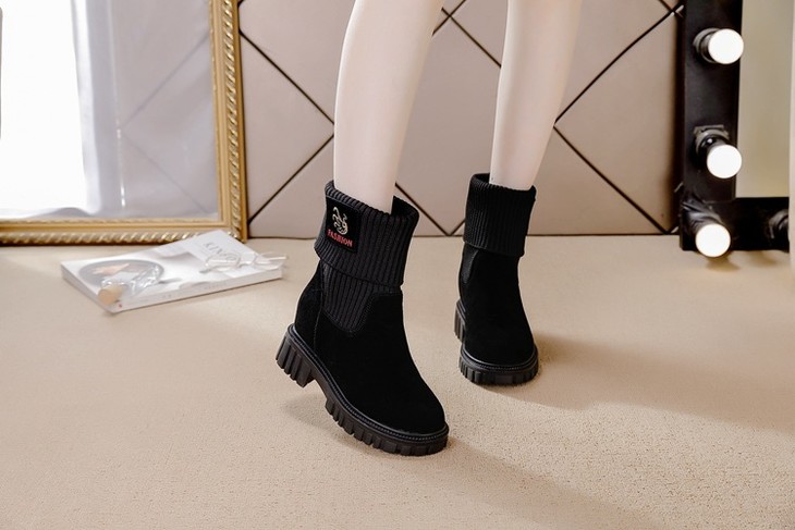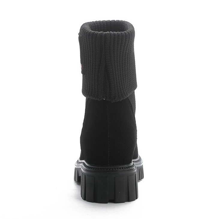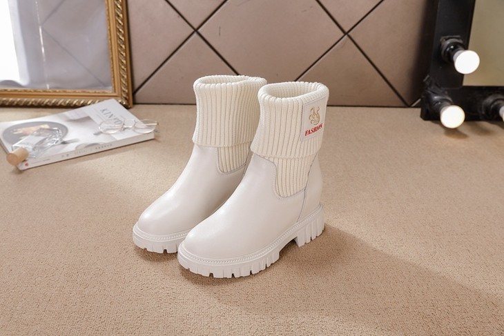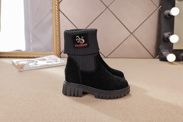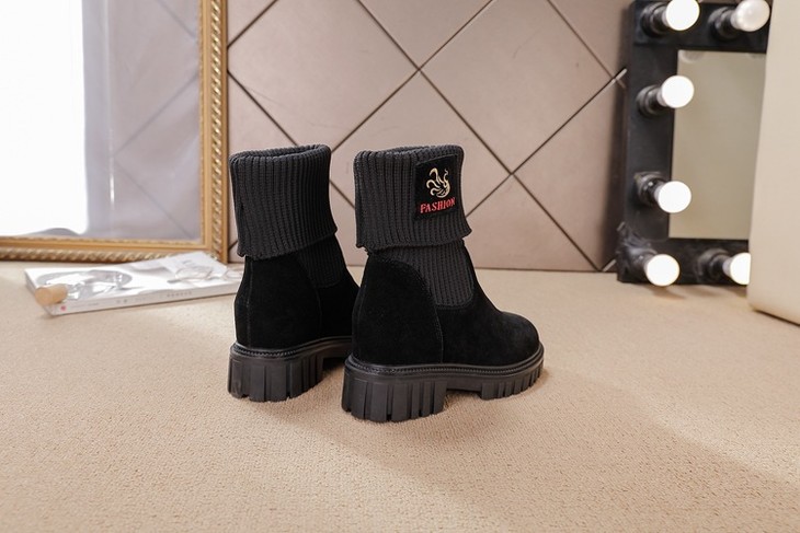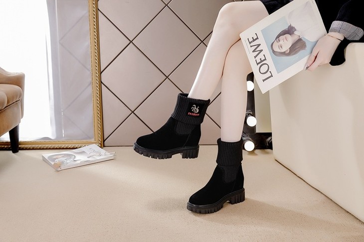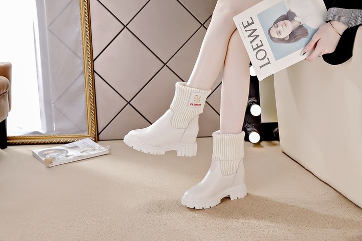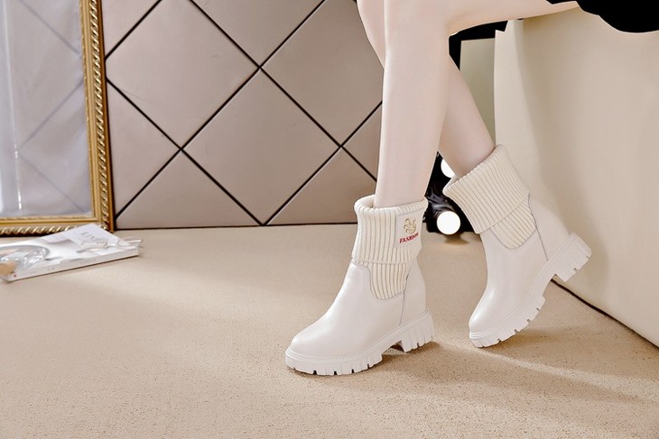 新款真皮内增高中筒靴,厚底坡跟雪地靴一脚蹬袜子靴LM23088