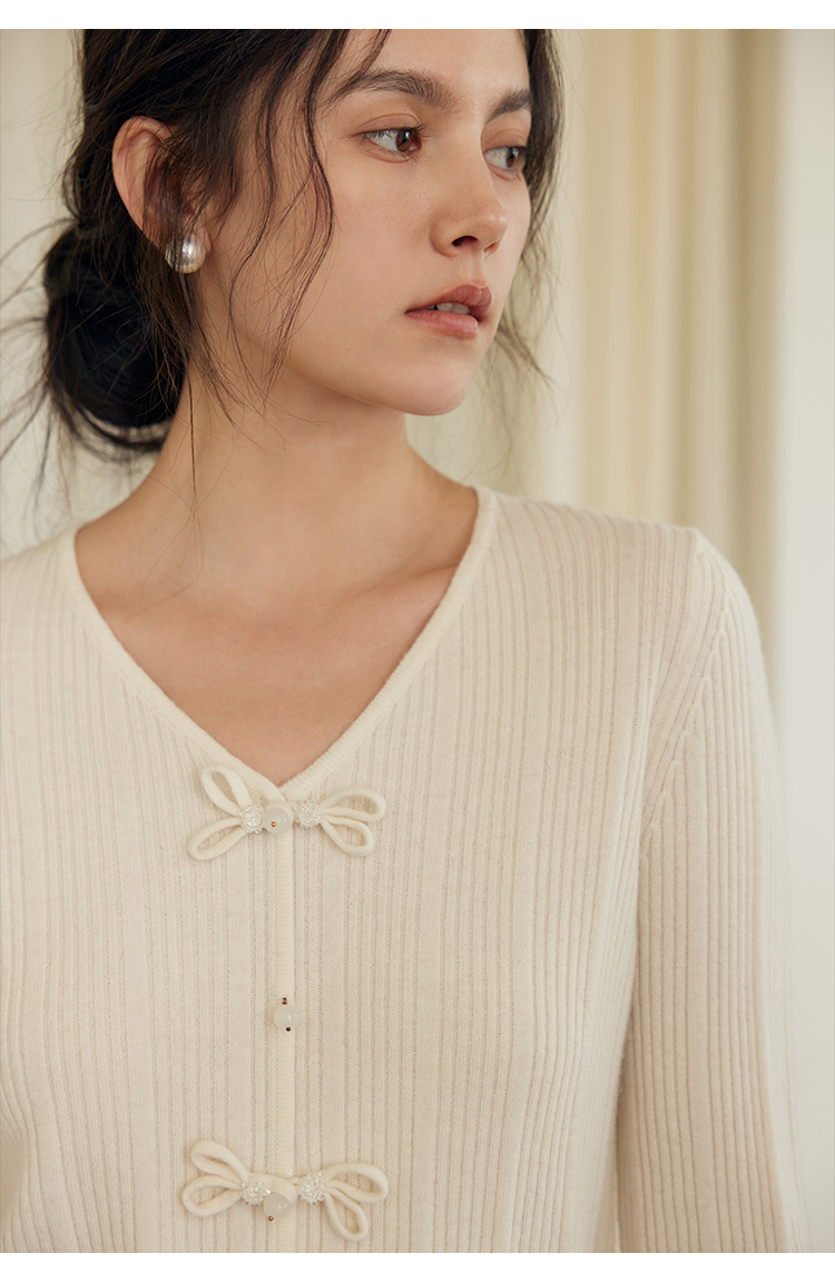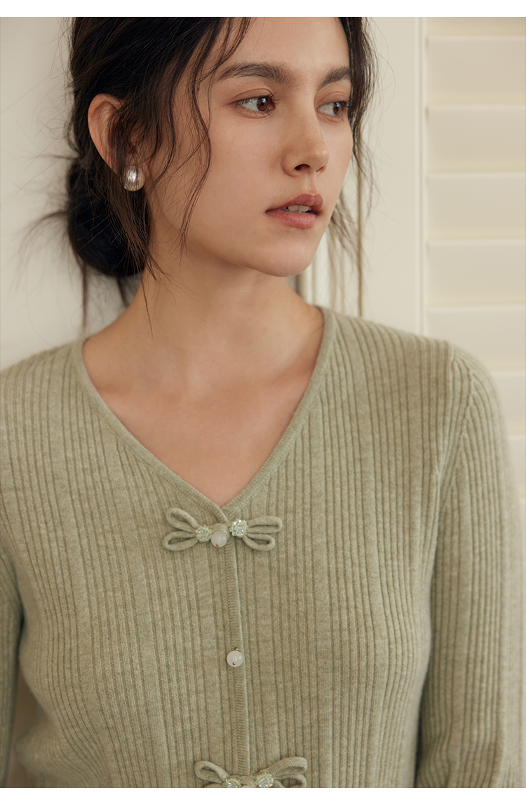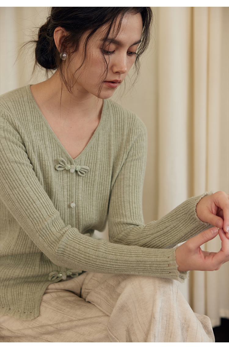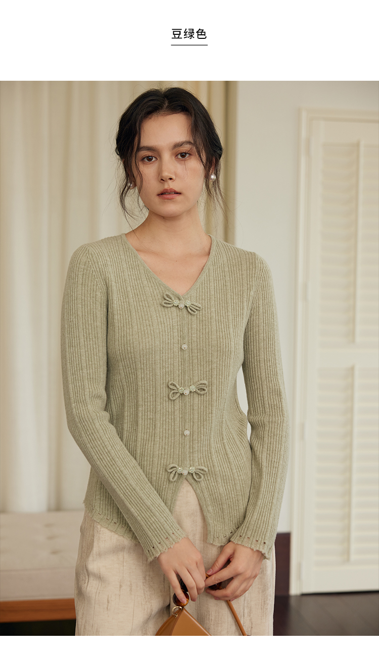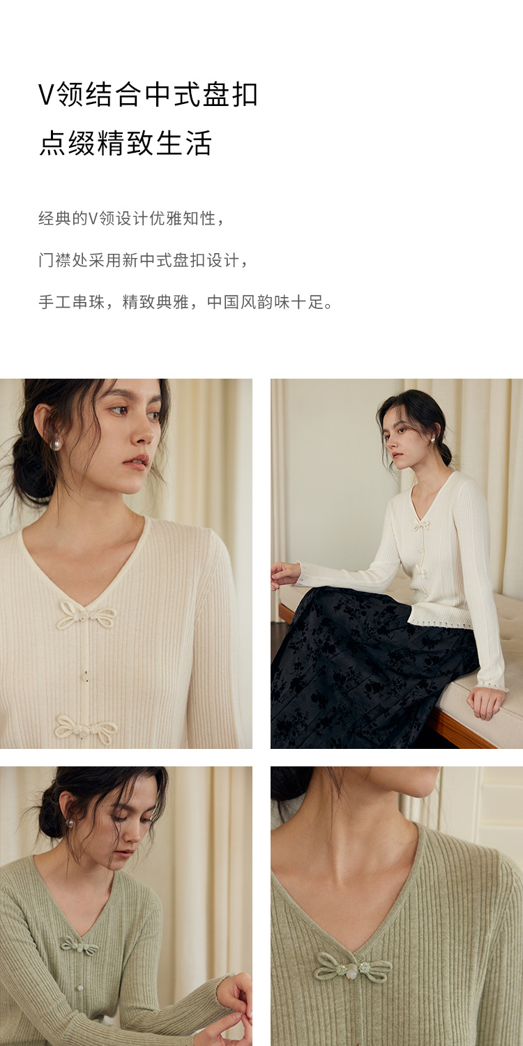 (小眠专属)HeyDress新中式盘扣针织衫女冬季V领设计感修身显瘦优雅羊毛上衣