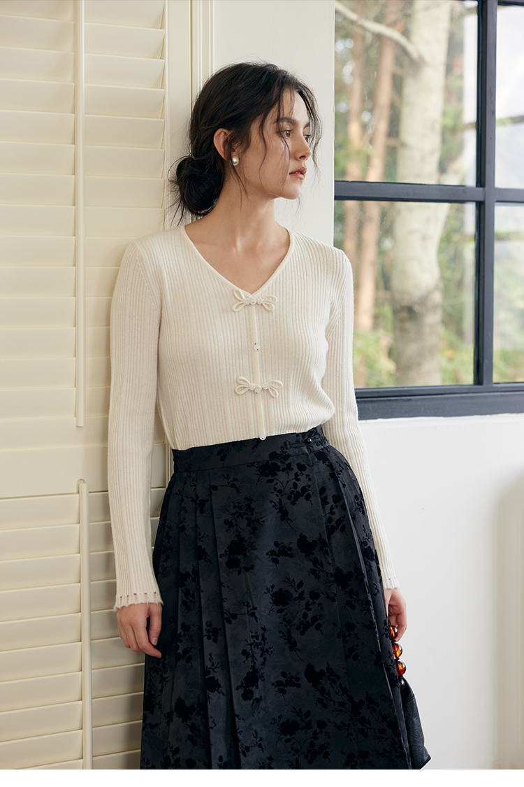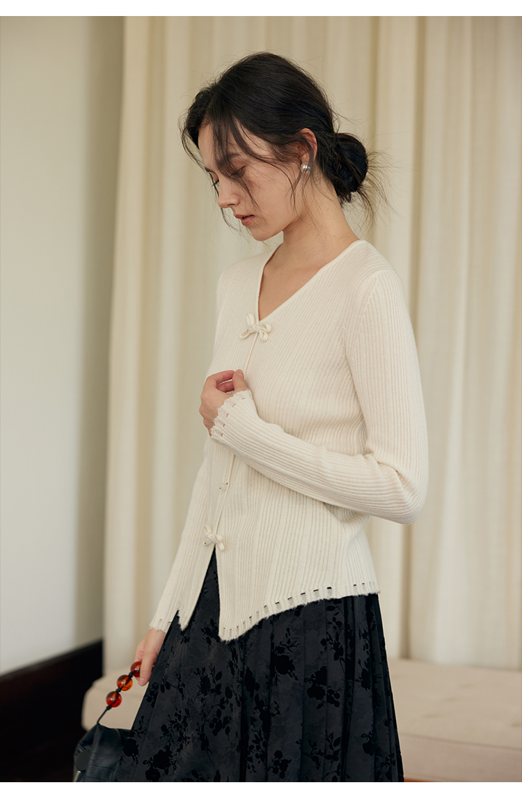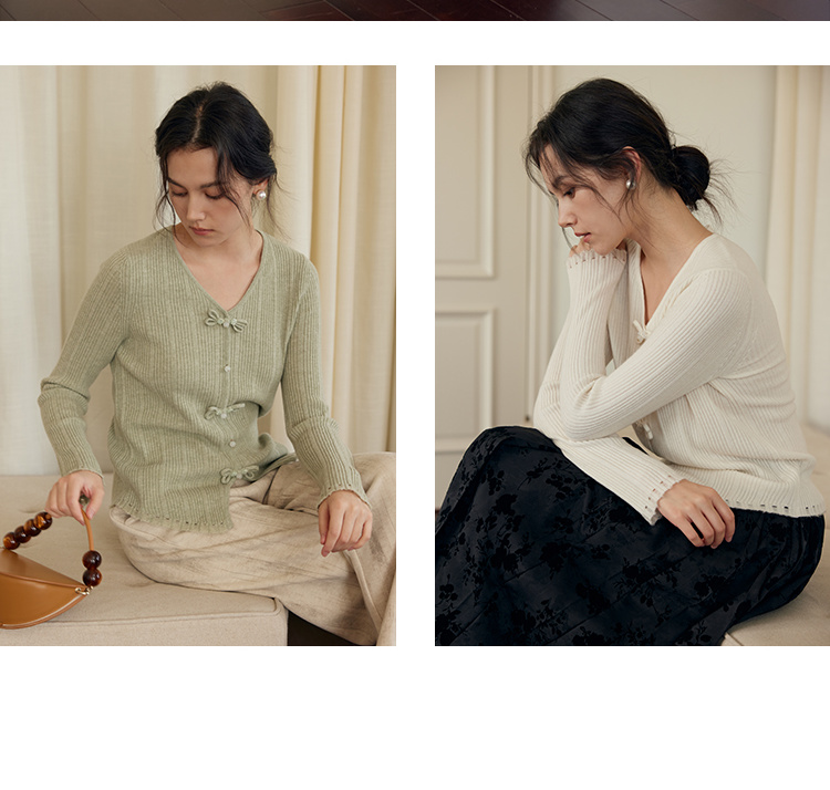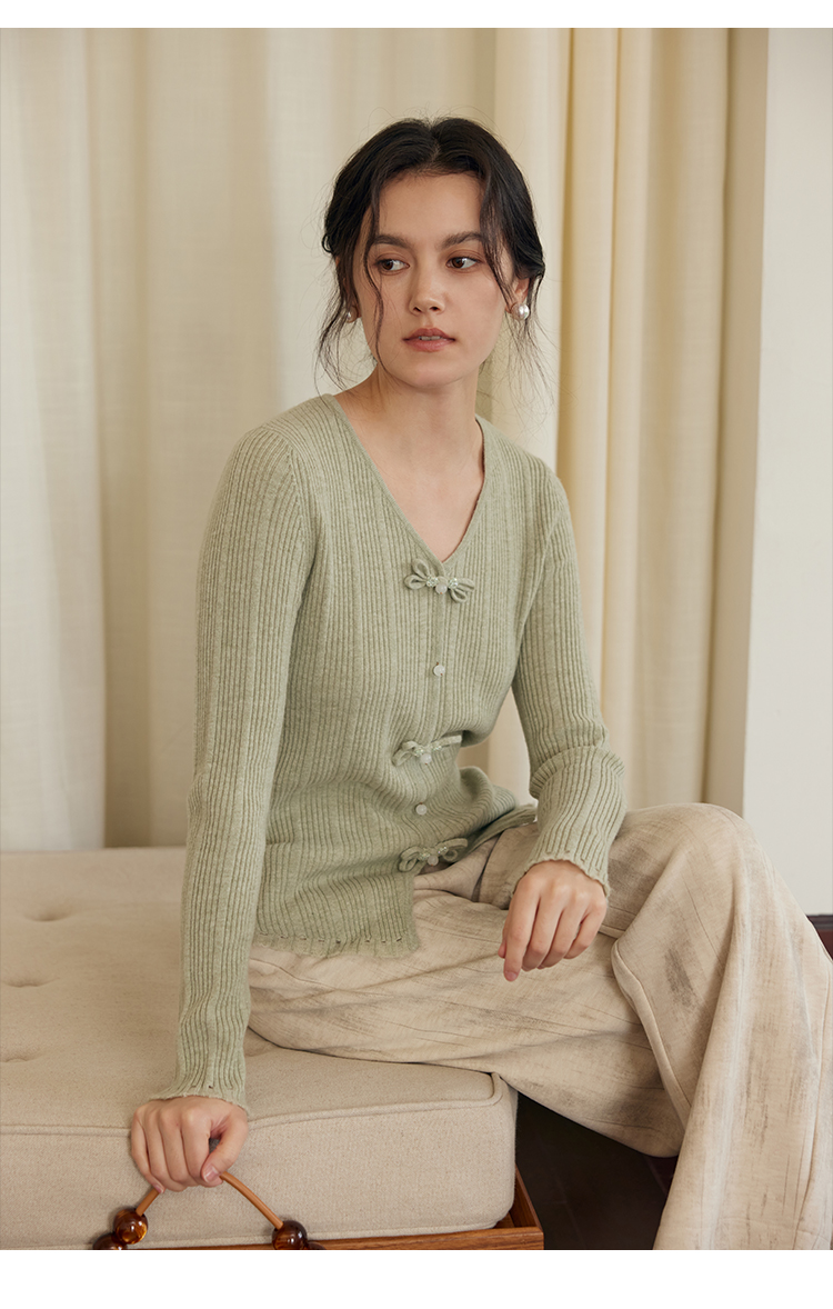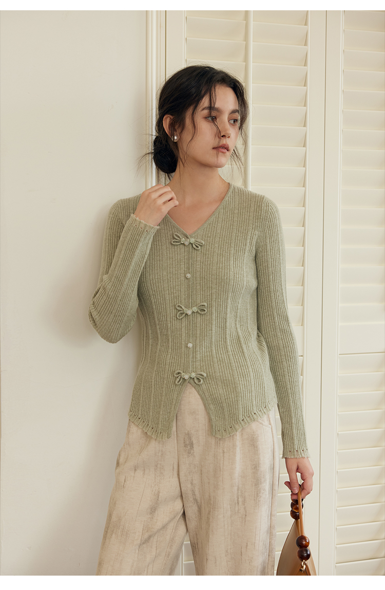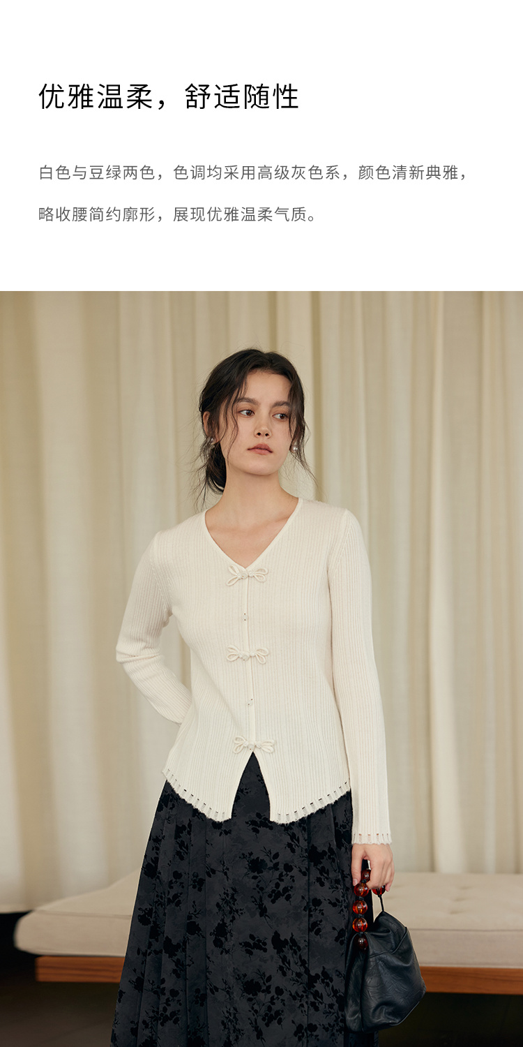 (小眠专属)HeyDress新中式盘扣针织衫女冬季V领设计感修身显瘦优雅羊毛上衣