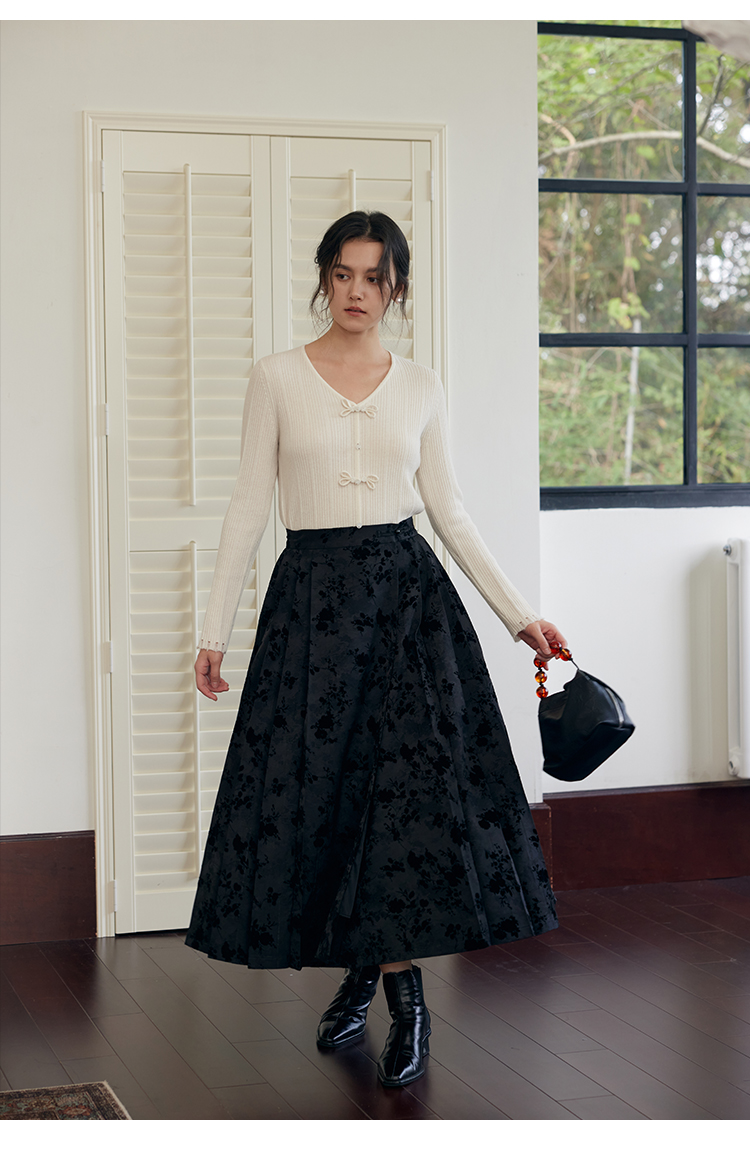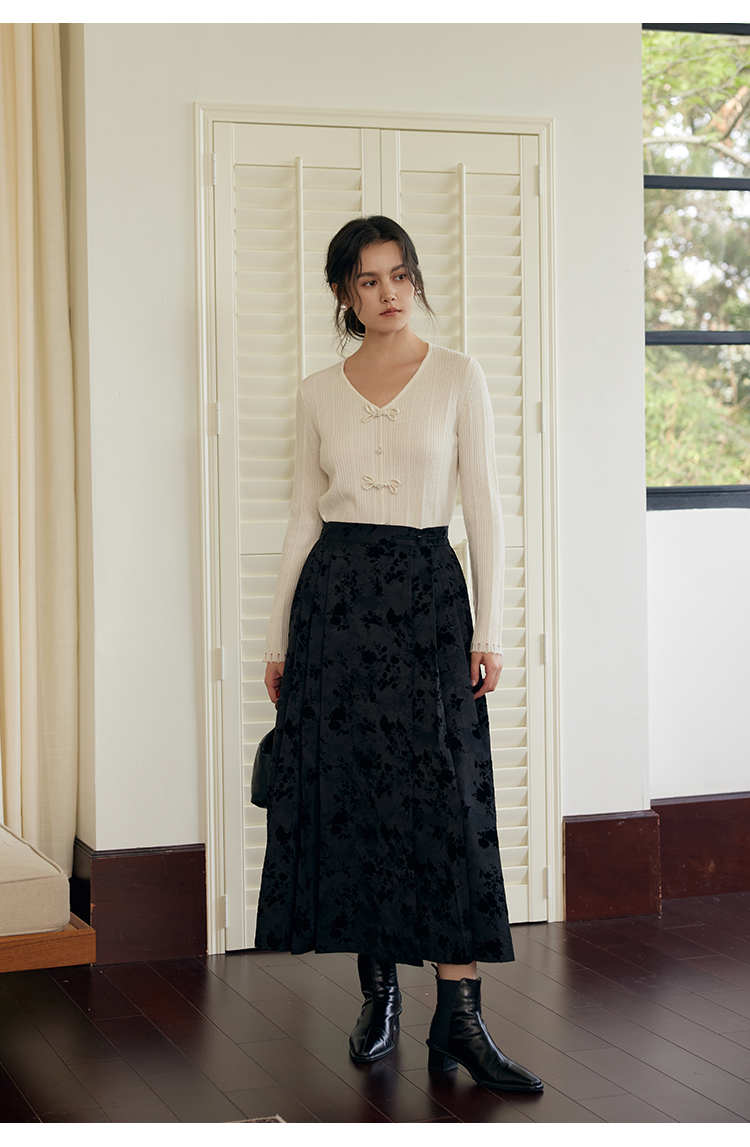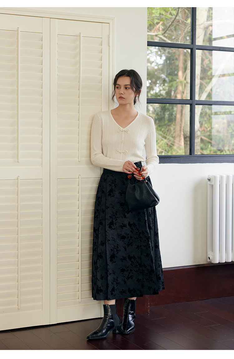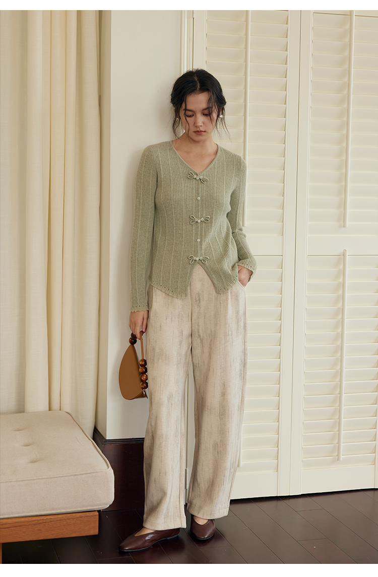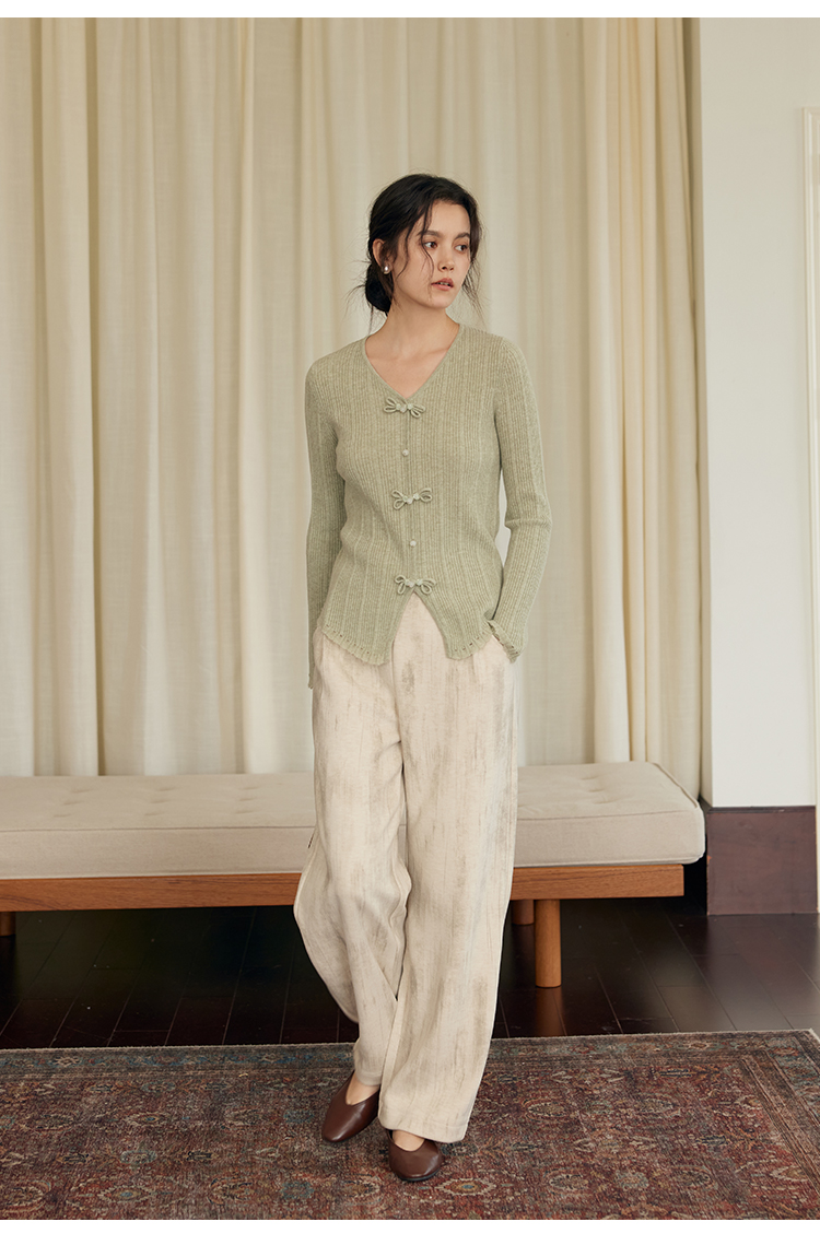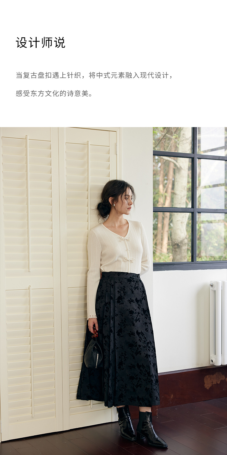 (小眠专属)HeyDress新中式盘扣针织衫女冬季V领设计感修身显瘦优雅羊毛上衣