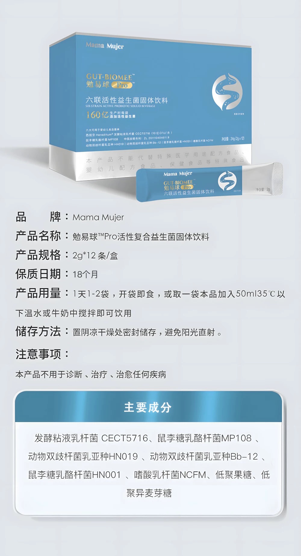 【无盒】【免疫球】Mama Mujer 勉易球Pro 加固肠道屏障 六联活性肠道益生菌 鼻塞/流涕/喷嚏 过敏性鼻炎 反复过敏肿大 腺样体 腹泻腹痛羊屎蛋 肠易激 12支/盒 MMMJ 国内发货